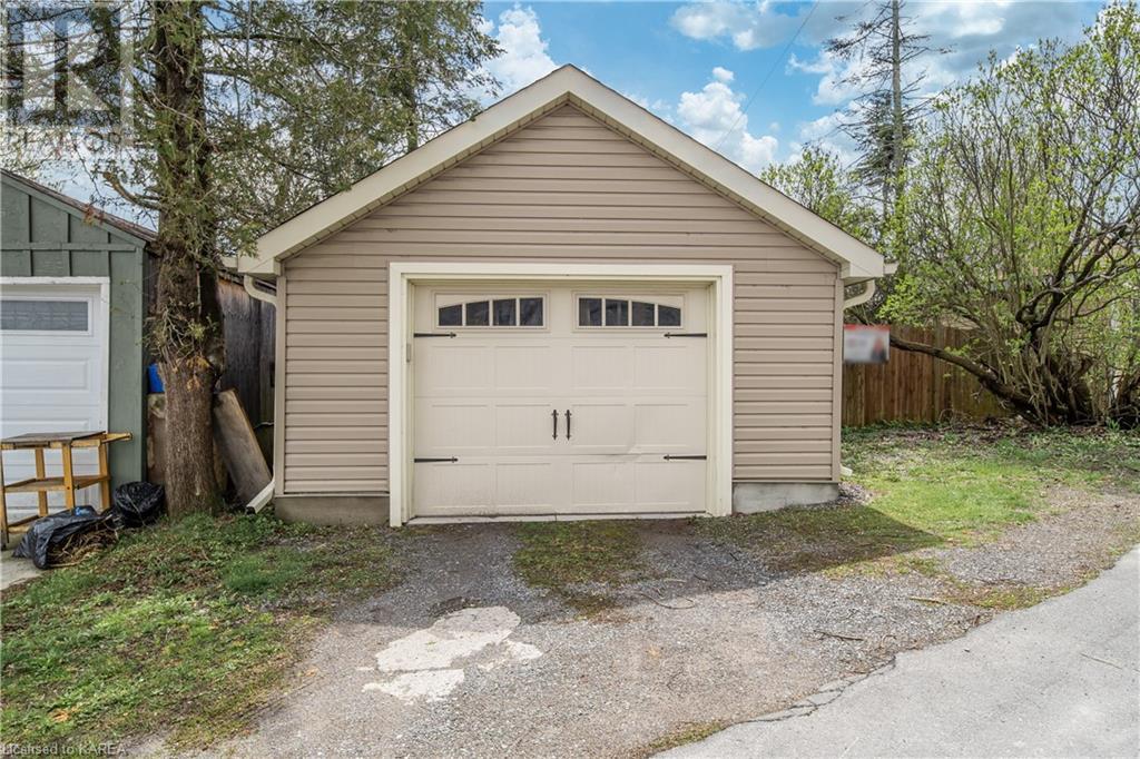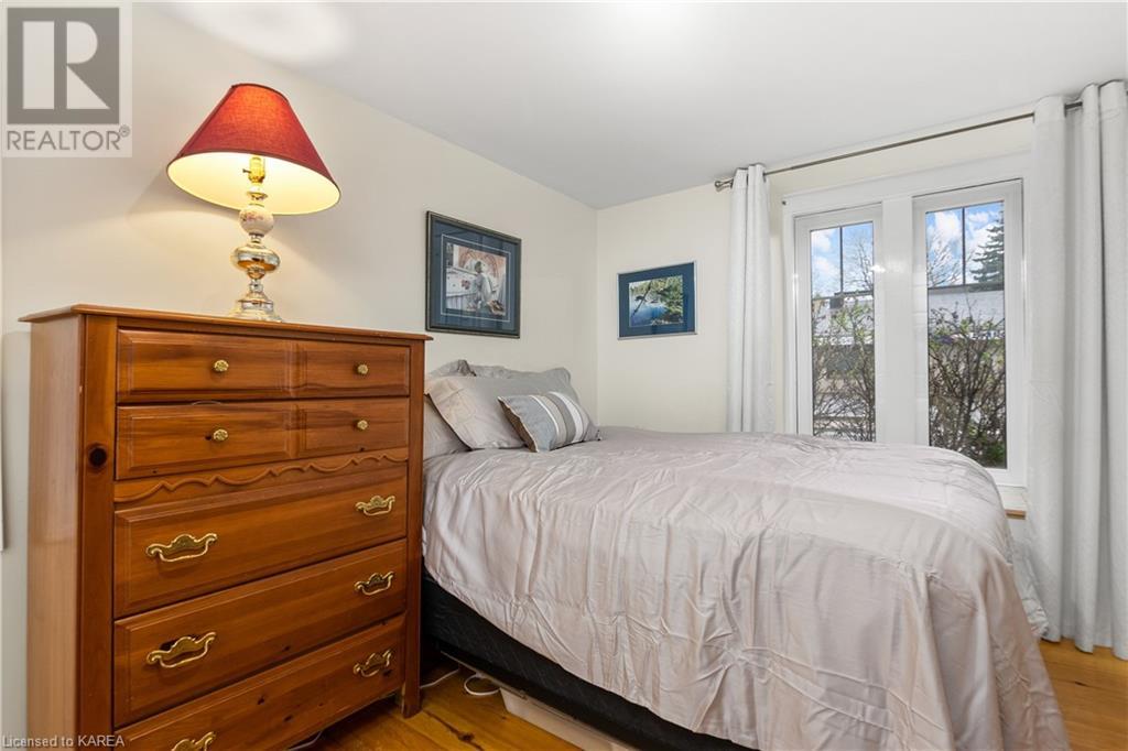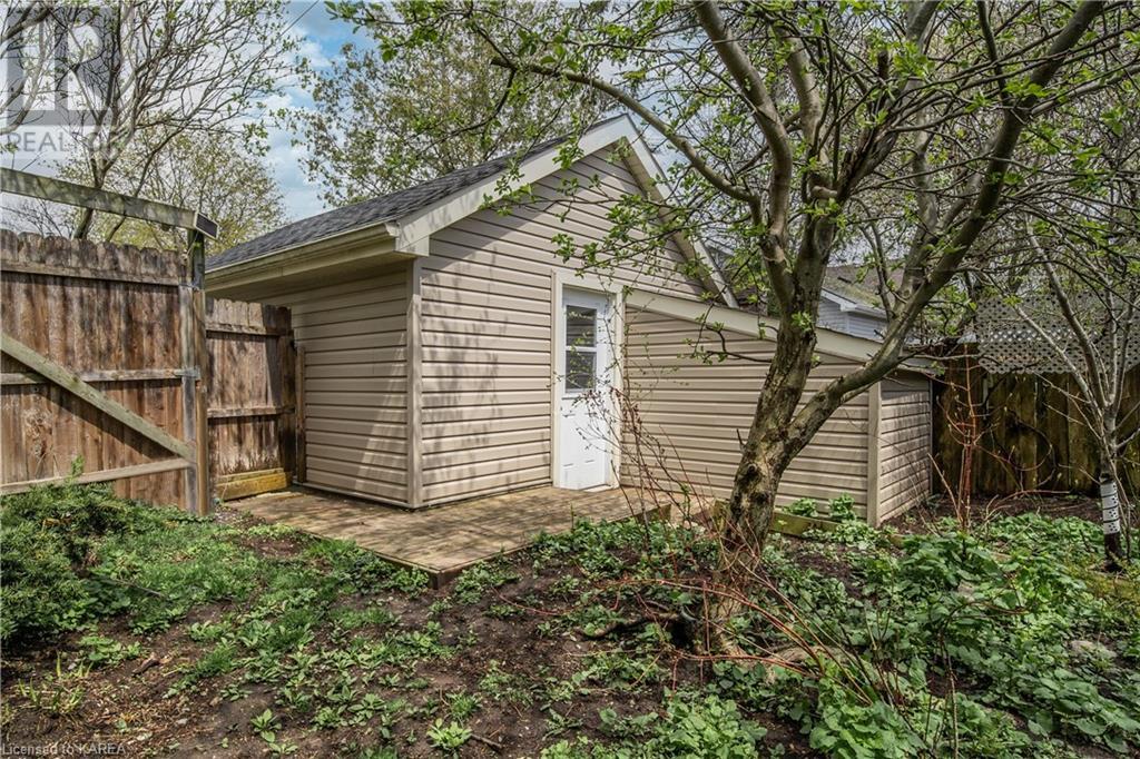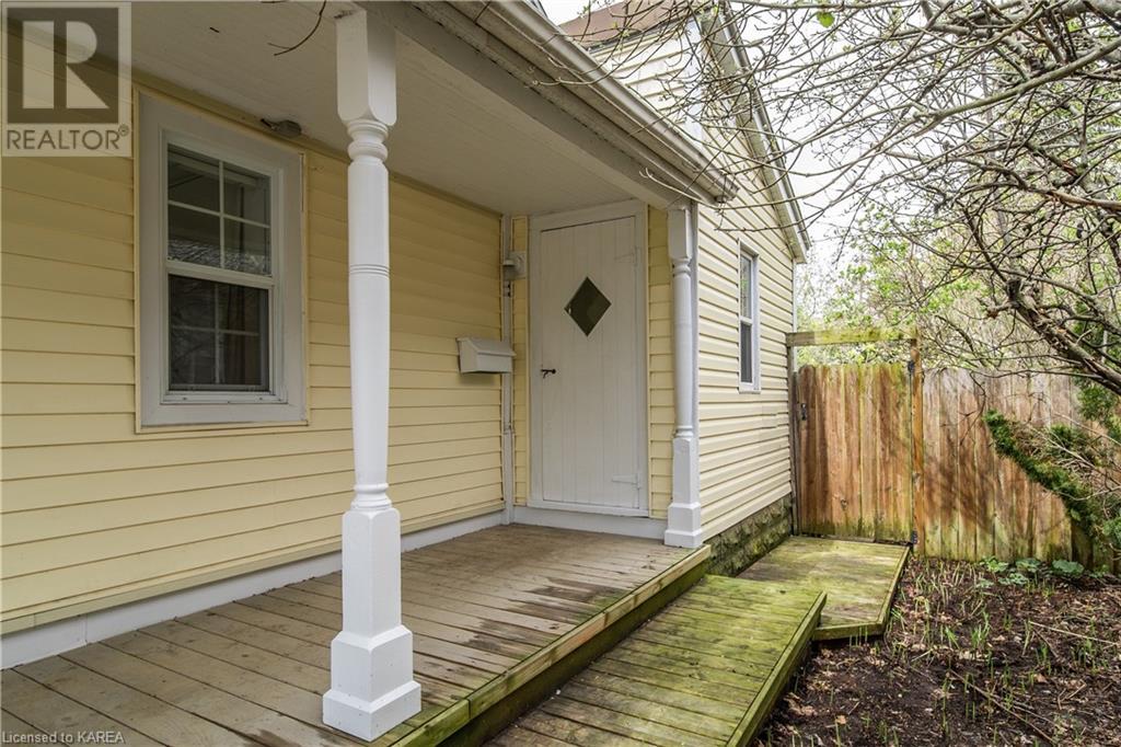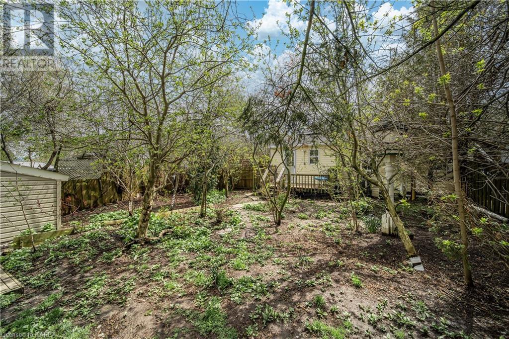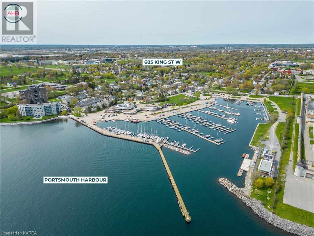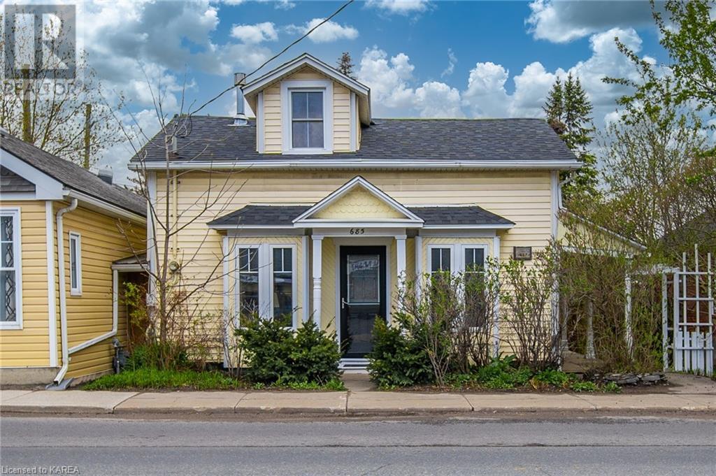 Welcome to 685 King St West - Kingston's Sunshine Cottage - 1078 sq ft of bright and spacious living with many updates throughout! This stunning 2 bedroom plus den, 1 bathroom detached home was built in 1871 and is located in the highly desirable Historic Portsmouth Village, just a short walk to Lake Ontario, Portsmouth Harbour and Queens West Campus. This is your chance to own a piece of history today. Enjoy the convenience of main floor laundry and a main floor bedroom with double wide closet complete with organizer. The living room features a freestanding gas fireplace and solid pine flooring runs throughout the entire home (Refinished 2023). The updated bathroom offers a walk in shower with glass sliding doors and laundry closet. An updated eat in kitchen boasts modern appliances and plenty of storage plus access to the side covered porch as well as back yard. The backyard can only be described as an oasis - fully fenced with a wooden swing, pear and apple trees, and beautifully landscaped gardens everywhere. A detached 1.5 car garage fronts on Union street, providing granny flat potential and there is parking for 2 additional cars outside of the garage. With many updates found here - refinished floors (2023), storm doors (2021), shingles (2020), furnace (2018), central air (2018), appliances (2018), hot water on demand (2018 - owned) - this property is sure to check all the boxes! Book your private viewing today! (id:22211)
