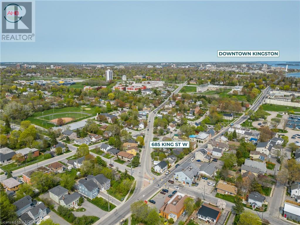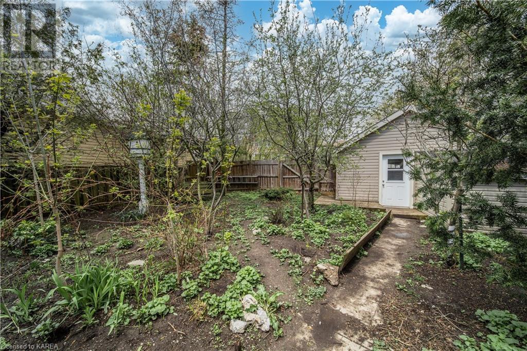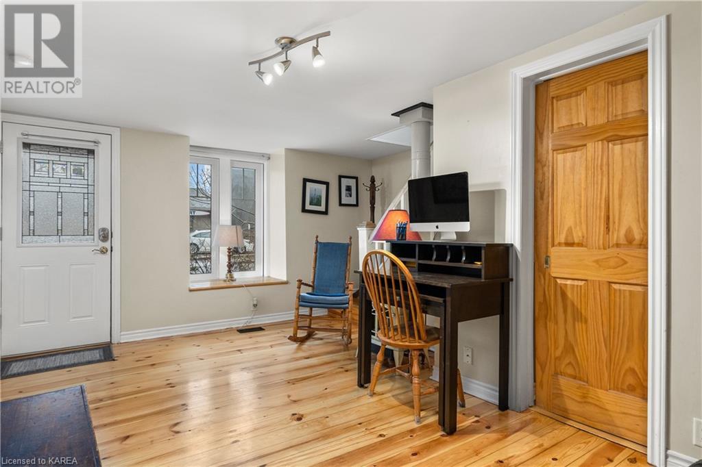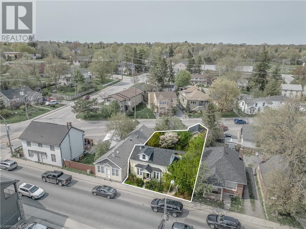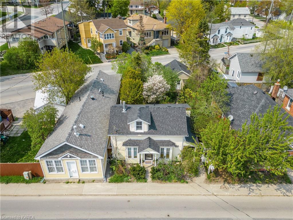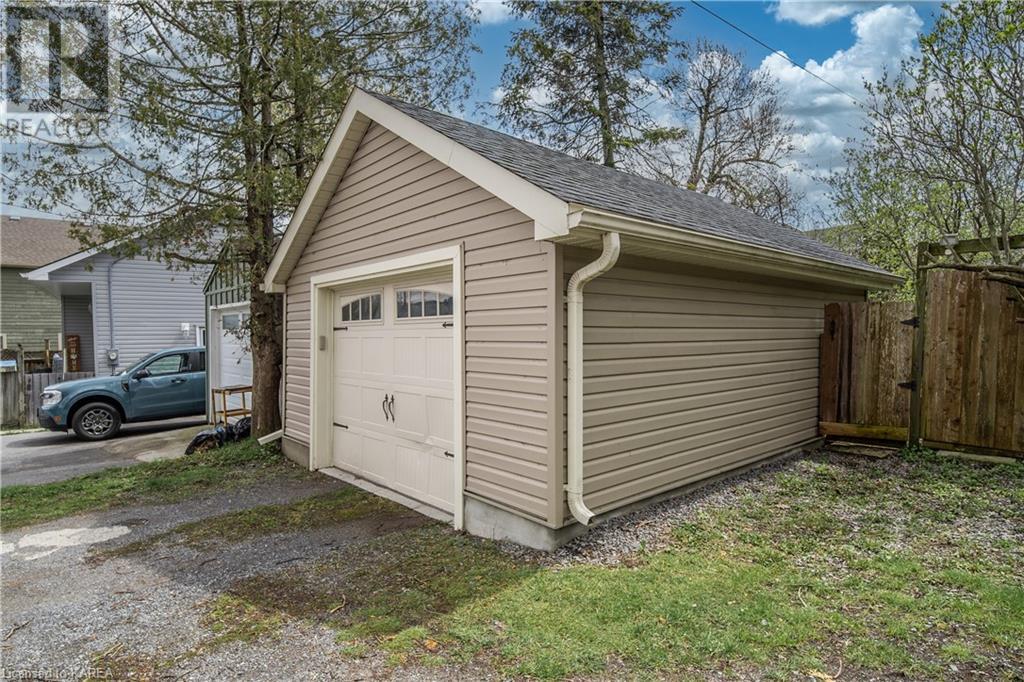 Welcome to 685 King St West - Kingston's Sunshine Cottage - 1078 sq ft of bright and spacious living with many updates throughout! This stunning 2 bedroom plus den, 1 bathroom detached home was built in 1871 and is located in the highly desirable Historic Portsmouth Village, just a short walk to Lake Ontario, Portsmouth Harbour and Queens West Campus. This is your chance to own a piece of history today. Enjoy the convenience of main floor laundry and a main floor bedroom with double wide closet complete with organizer. The living room features a freestanding gas fireplace and solid pine flooring runs throughout the entire home (Refinished 2023). The updated bathroom offers a walk in shower with glass sliding doors and laundry closet. An updated eat in kitchen boasts modern appliances and plenty of storage plus access to the side covered porch as well as back yard. The backyard can only be described as an oasis - fully fenced with a wooden swing, pear and apple trees, and beautifully landscaped gardens everywhere. A detached 1.5 car garage fronts on Union street, providing granny flat potential and there is parking for 2 additional cars outside of the garage. With many updates found here - refinished floors (2023), storm doors (2021), shingles (2020), furnace (2018), central air (2018), appliances (2018), hot water on demand (2018 - owned) - this property is sure to check all the boxes! Book your private viewing today! (id:22211)