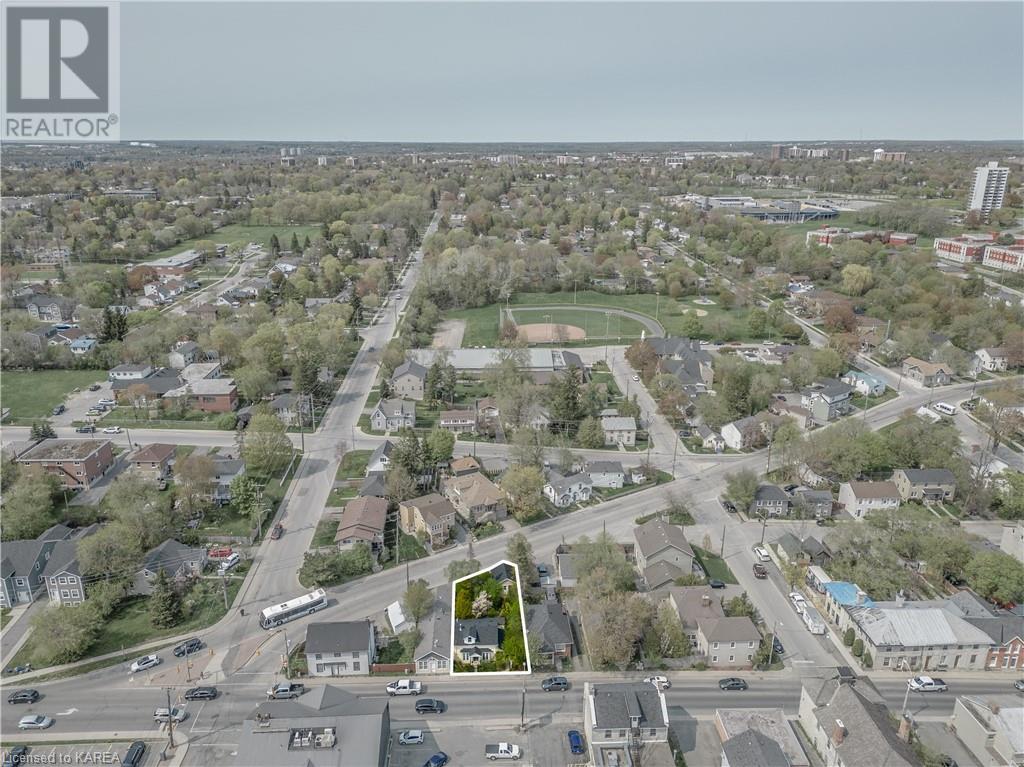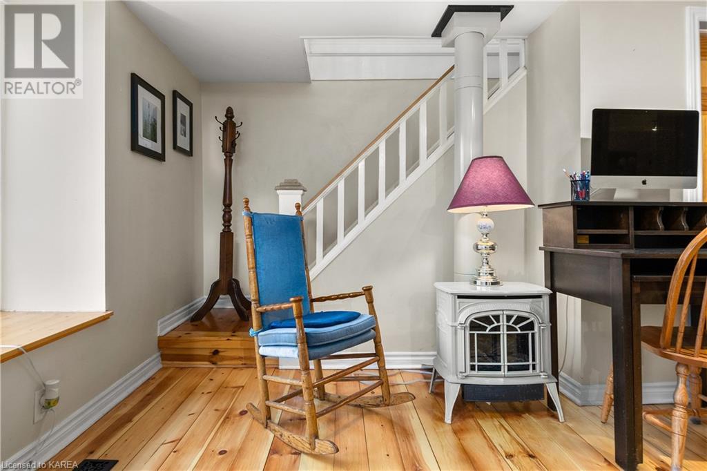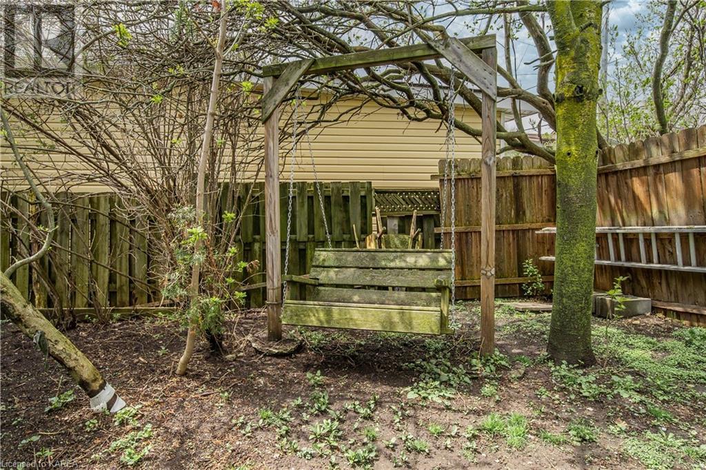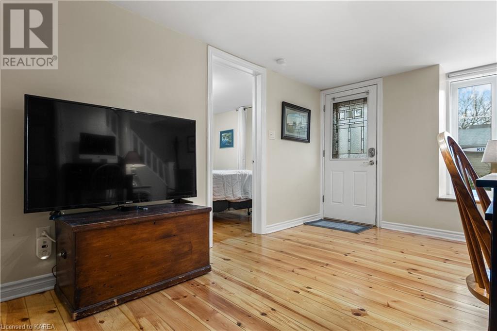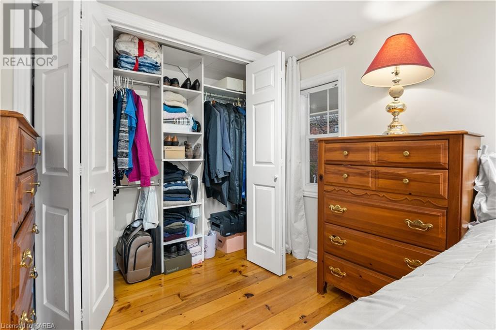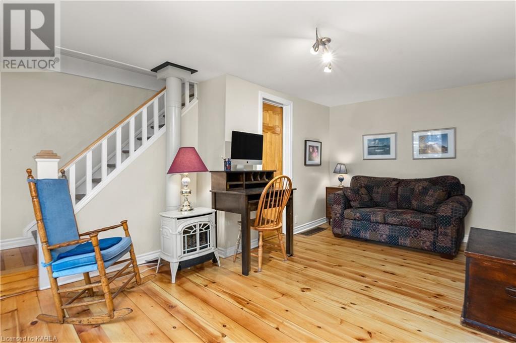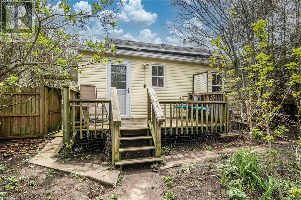 Welcome to 685 King St West - Kingston's Sunshine Cottage - 1078 sq ft of bright and spacious living with many updates throughout! This stunning 2 bedroom plus den, 1 bathroom detached home was built in 1871 and is located in the highly desirable Historic Portsmouth Village, just a short walk to Lake Ontario, Portsmouth Harbour and Queens West Campus. This is your chance to own a piece of history today. Enjoy the convenience of main floor laundry and a main floor bedroom with double wide closet complete with organizer. The living room features a freestanding gas fireplace and solid pine flooring runs throughout the entire home (Refinished 2023). The updated bathroom offers a walk in shower with glass sliding doors and laundry closet. An updated eat in kitchen boasts modern appliances and plenty of storage plus access to the side covered porch as well as back yard. The backyard can only be described as an oasis - fully fenced with a wooden swing, pear and apple trees, and beautifully landscaped gardens everywhere. A detached 1.5 car garage fronts on Union street, providing granny flat potential and there is parking for 2 additional cars outside of the garage. With many updates found here - refinished floors (2023), storm doors (2021), shingles (2020), furnace (2018), central air (2018), appliances (2018), hot water on demand (2018 - owned) - this property is sure to check all the boxes! Book your private viewing today! (id:22211)
