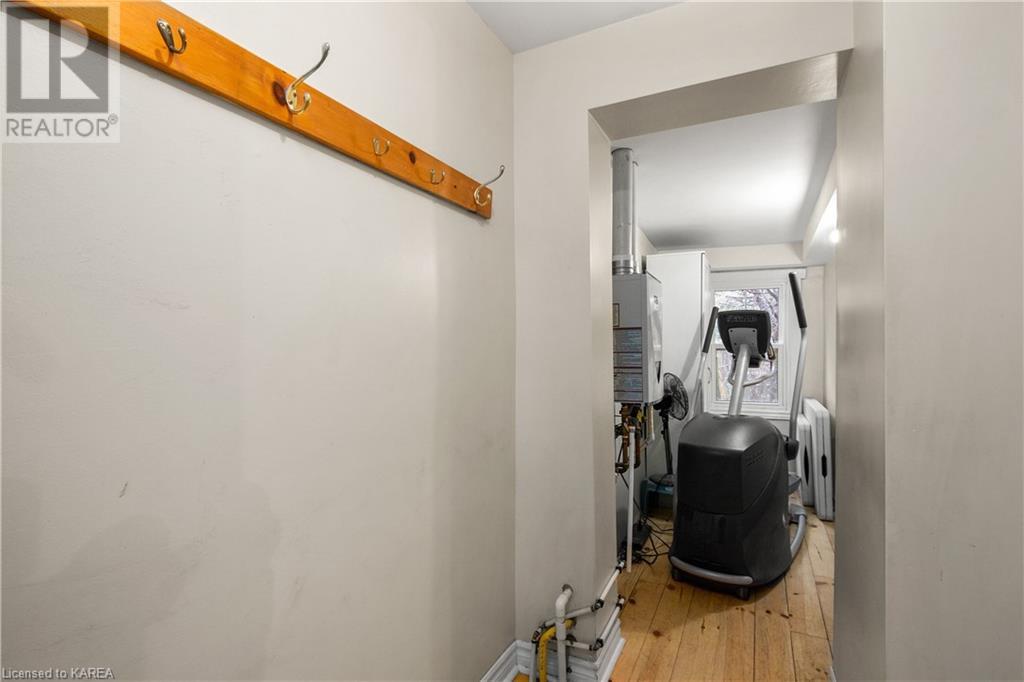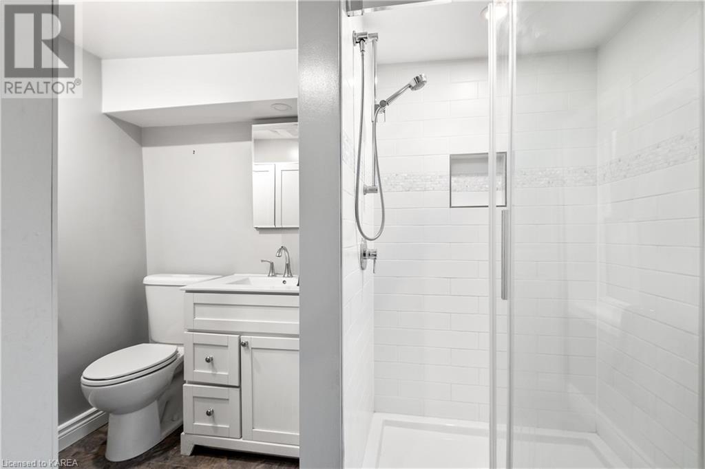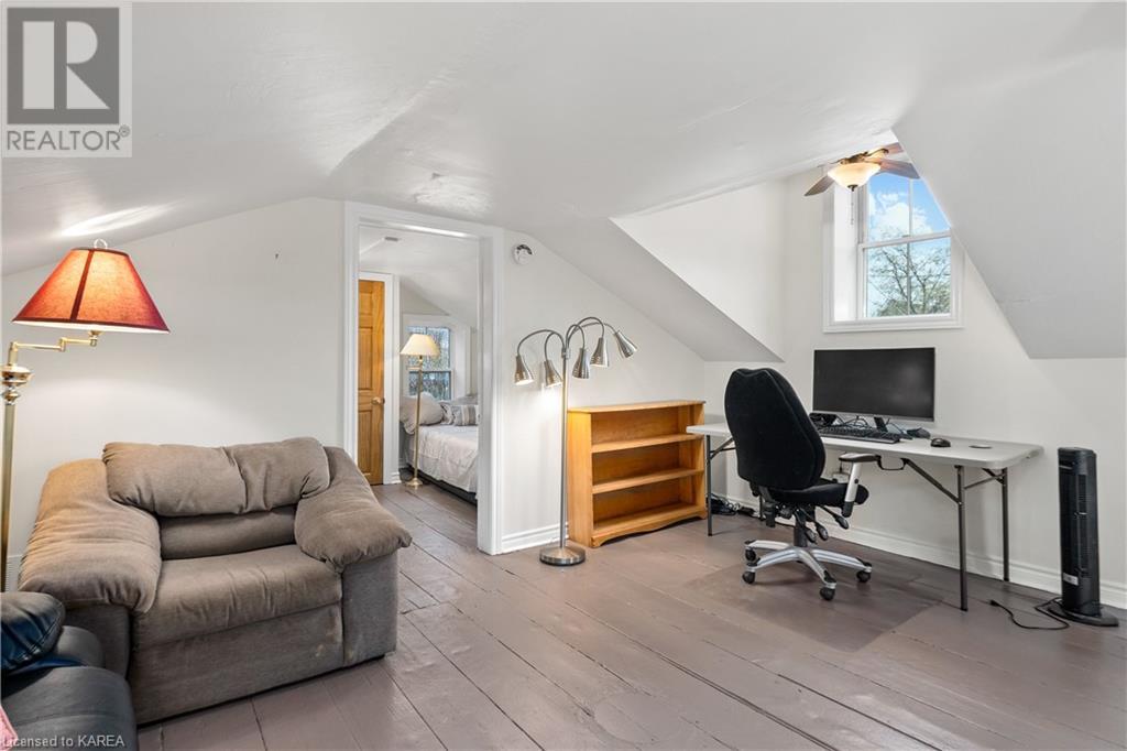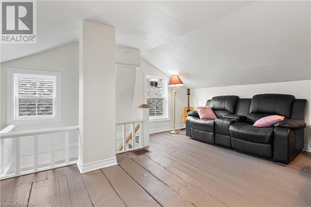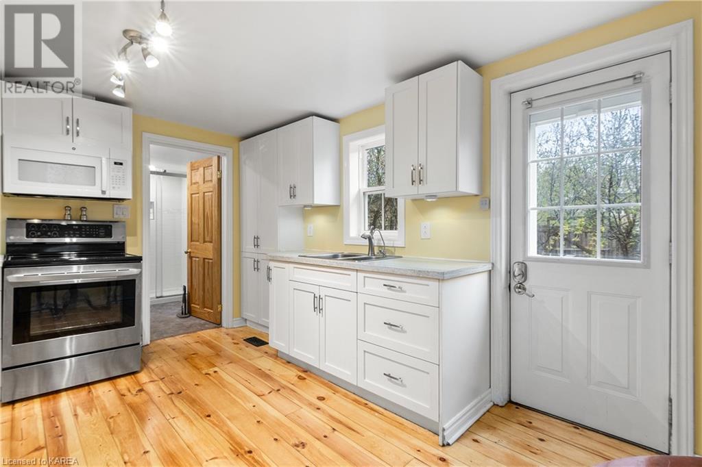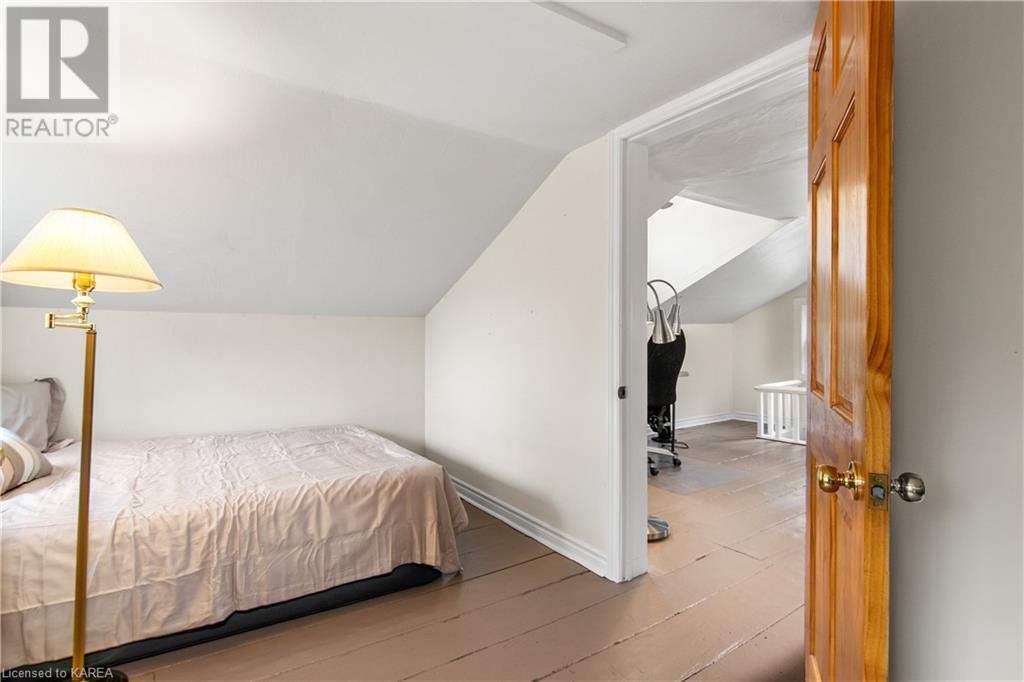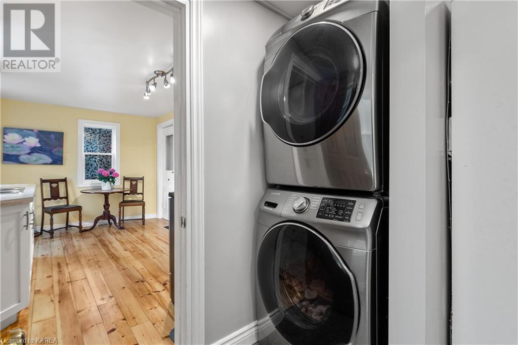 Welcome to 685 King St West - Kingston's Sunshine Cottage - 1078 sq ft of bright and spacious living with many updates throughout! This stunning 2 bedroom plus den, 1 bathroom detached home was built in 1871 and is located in the highly desirable Historic Portsmouth Village, just a short walk to Lake Ontario, Portsmouth Harbour and Queens West Campus. This is your chance to own a piece of history today. Enjoy the convenience of main floor laundry and a main floor bedroom with double wide closet complete with organizer. The living room features a freestanding gas fireplace and solid pine flooring runs throughout the entire home (Refinished 2023). The updated bathroom offers a walk in shower with glass sliding doors and laundry closet. An updated eat in kitchen boasts modern appliances and plenty of storage plus access to the side covered porch as well as back yard. The backyard can only be described as an oasis - fully fenced with a wooden swing, pear and apple trees, and beautifully landscaped gardens everywhere. A detached 1.5 car garage fronts on Union street, providing granny flat potential and there is parking for 2 additional cars outside of the garage. With many updates found here - refinished floors (2023), storm doors (2021), shingles (2020), furnace (2018), central air (2018), appliances (2018), hot water on demand (2018 - owned) - this property is sure to check all the boxes! Book your private viewing today! (id:22211)