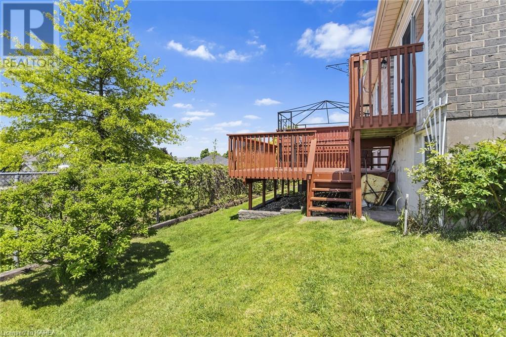 Introducing this pride of ownership original owner's home. Situated in the Pine Hill Estates community, a serene neighborhood with a premium lot backing onto green space. This lovely home offers 2+1 Bedrooms and 3 full baths. Step inside and be greeted by the spacious foyer with vaulted ceiling over the kitchen, dinning and living rooms. The soaring ceiling adds an element of grandeur and a sense of airiness to the living space, providing an ideal setting for relaxation and entertaining. Beautiful eat in custom Hawthorne kitchen is a true standout, combining style and functionality. With its modern design, ample storage space, and high-quality finishes, it is a dream for any home chef. The bright and open dining and living room creates a relaxing and entertaining atmosphere with hardwood floors, cozy gas fireplace and sliding doors to the two tired deck. Two bedrooms and two bathrooms on the main floor with a spacious 12'x18' primary bedroom featuring 4pc ensuite and walk in closet. Main floor laundry room has been turned into a pantry but could easily be converted back to a laundry room. The lower level of the home features a cozy rec room with electric fireplace, bedroom and a convenient bathroom, providing a separate living space or an ideal guest suite. This versatile area can be used as a home office or a comfortable space for visiting family or friends. Recent upgrades include shingles, furnace, and central AC , ensuring comfort, energy efficiency, and peace of mind. With its desirable location, this home is conveniently situated near local amenities, schools, shopping and transportation routes, providing easy access to everything you need. Don't miss the opportunity to make this delightful property in Pine Hill Estates your own. Schedule a showing today and experience the comfort and beauty of this well-maintained home. (id:22211)