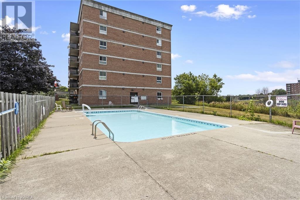 Immaculate! Great opportunity to get into this centrally located condo in a very well-maintained secure building, with elevator and outdoor pool. Newly renovated bathroom, freshly painted, newer counter tops and windows. This unit features 2 bedrooms, 1 bathroom, open concept dining and living room with balcony. In-suite storage room; close to all west end amenities and shopping, grocery, parks and on Kingston Transit Bus Route. Immediate possession available. (id:22211)
