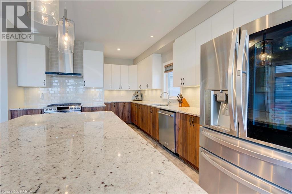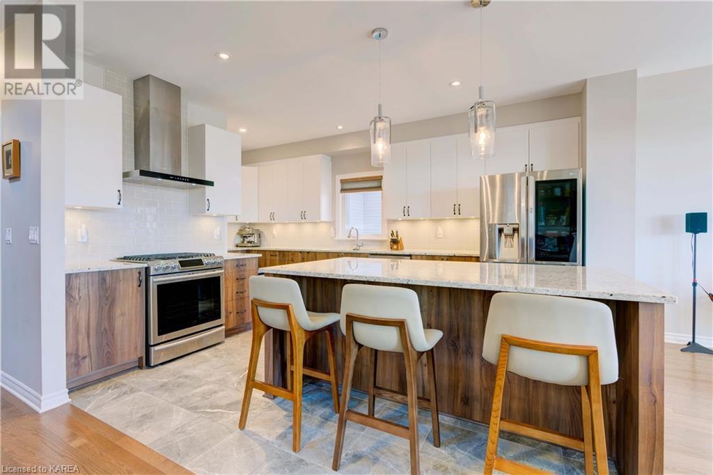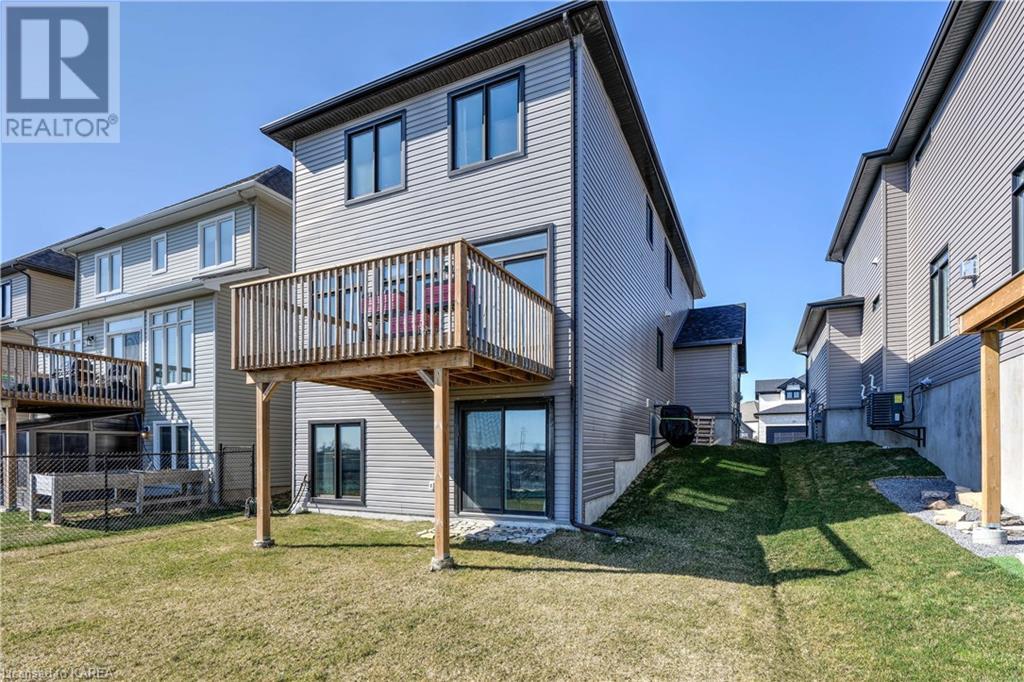 Come see this lovely Tamarac home in one of Kingston's nicest new developments. This house was built in 2020 and is fresh as a daisy and waiting for a new owner. The airy main floor has a lovely kitchen with top of the line appliances that is part of an open concept living/cooking/dining area complete with gas fireplace. This whole light filled space flows onto the nice sized deck with lovely views of the Cataraqui River. Upstairs you'll find 4 bedrooms and 2 full baths which include an ensuite off the primary bedroom of course! Moving down to the finished basement with a walkout, you'll find a space that the current owner used as a fully licensed Airbnb which was a great income helper, but this large space with a full bath could be used for just about anything. The generous utility room gives you lots of easy access storage space. Home has a 200amp service and a rented on-demand hot water system. Located conveniently close to the new crossing, this home is sure to please! (id:22211)