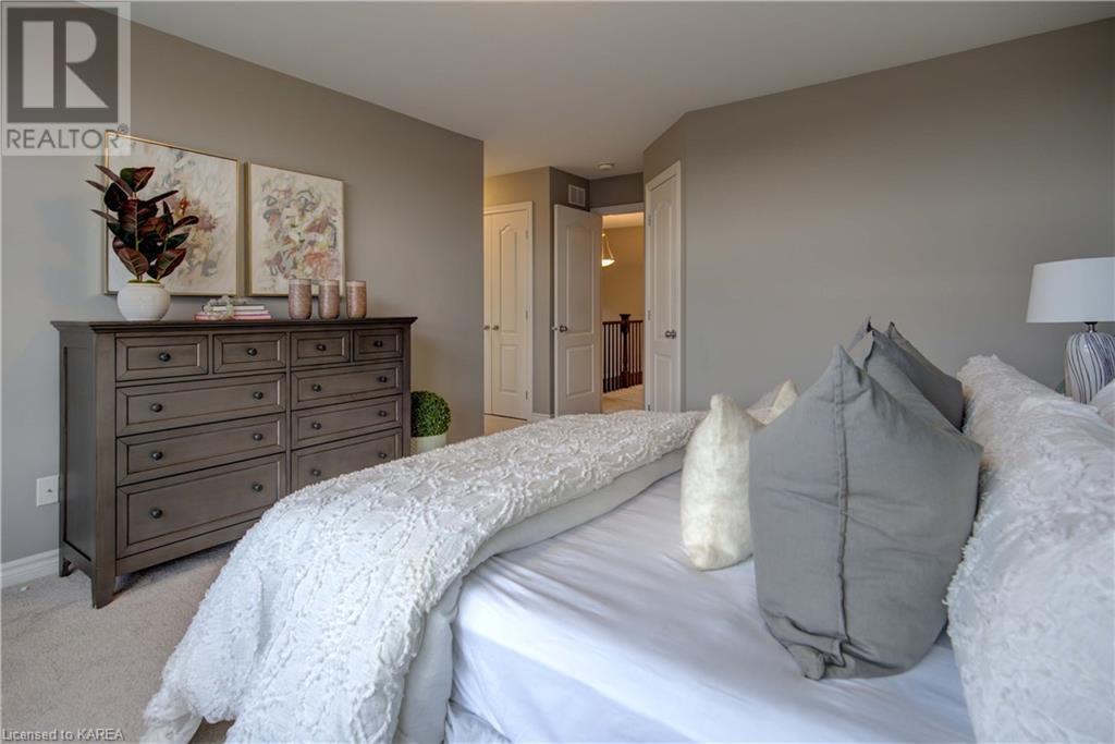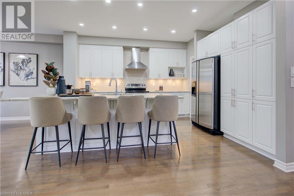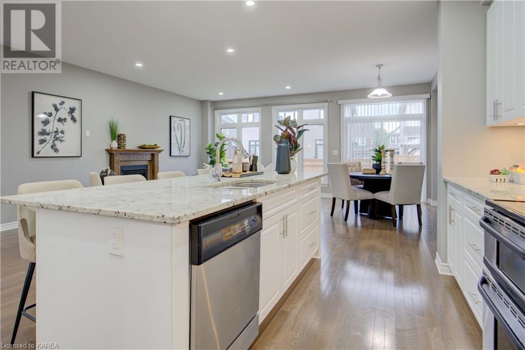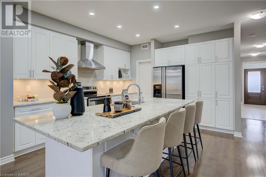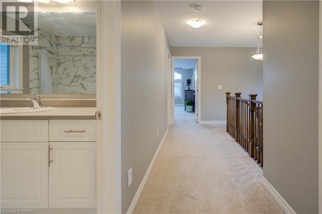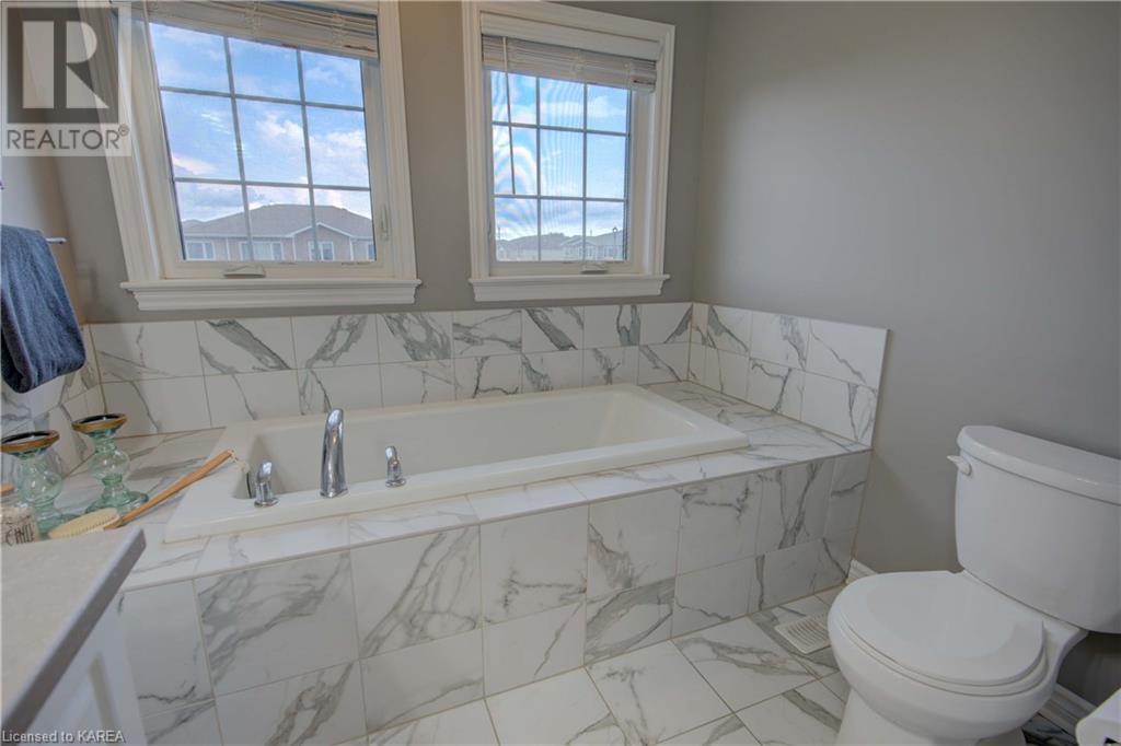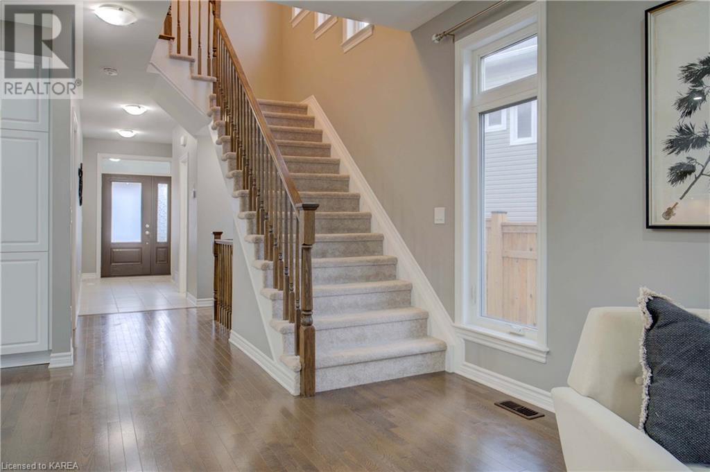 This beautiful Tamarac home features a 4 bedroom open concept design. Step into the bright foyer and it opens up into a beautiful living room with fireplace open to the large kitchen island with seating. The main floor also features a dining area ready for holiday meals. The kitchen features stone countertops and a full walk in pantry and plenty of bright white cabinetry. The main floor also features a mud room heading into the garage perfect for the kids coming home from school. Upstairs you will find a large primary bedroom featuring three closets, including a walk in. The 5 piece ensuite will be your place to getaway in the deep soaker tub. Three generous sized bedrooms and a 4 piece family bathroom are perfect for the kids. The large upstairs laundry room features countertops and more storage. The finished basement includes a large living area, Ready for you to set up for family gatherings. The three piece bath is a nice touch! This home is conveniently located close to 401 and lots of amenities and CFB Kingston. This home shows like a new build only you don’t have to wait for it to be completed! (id:22211)