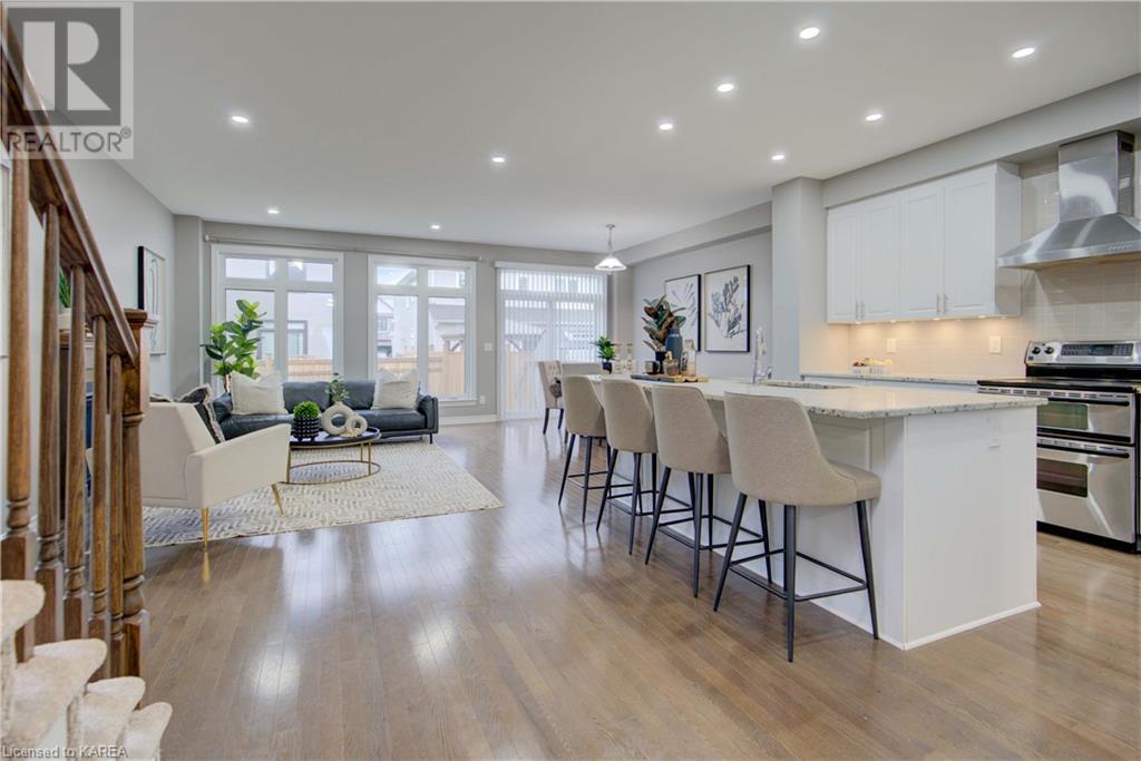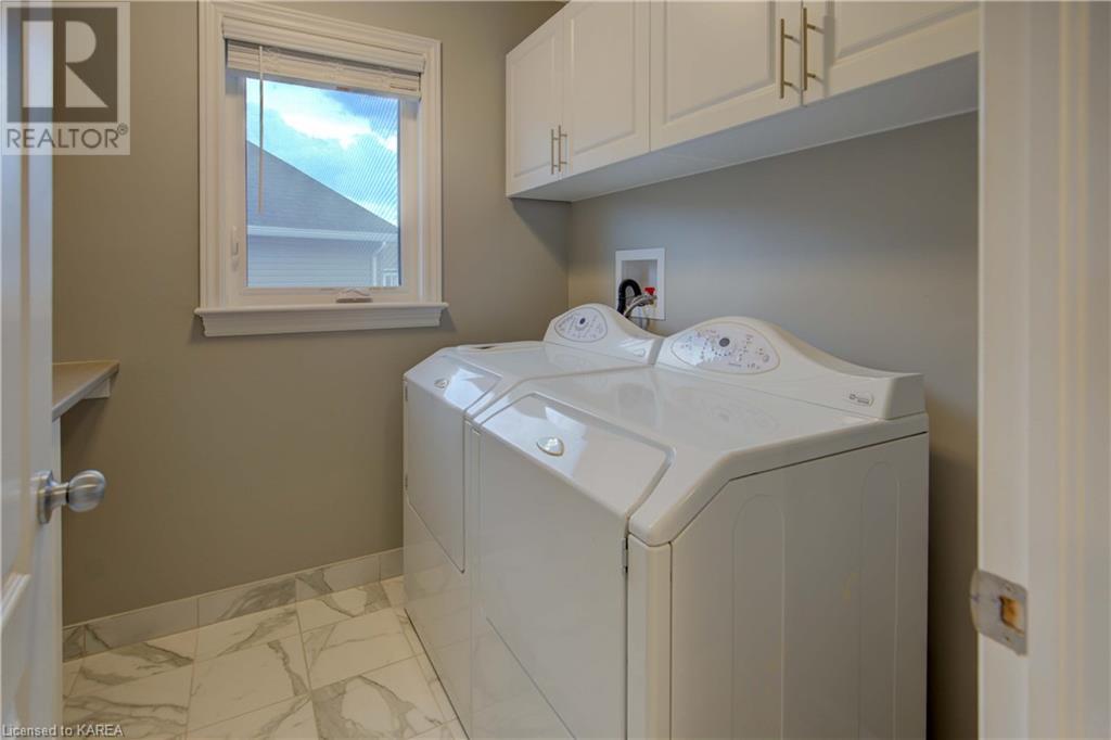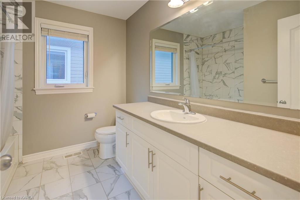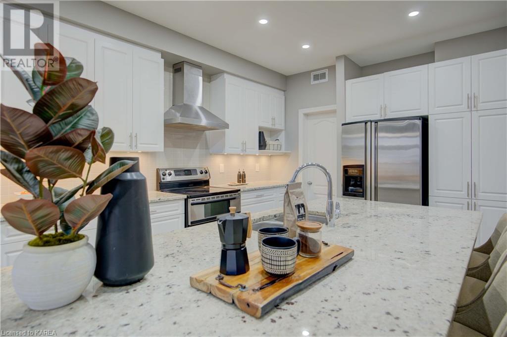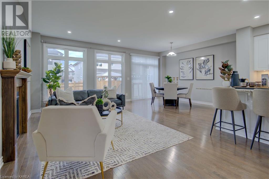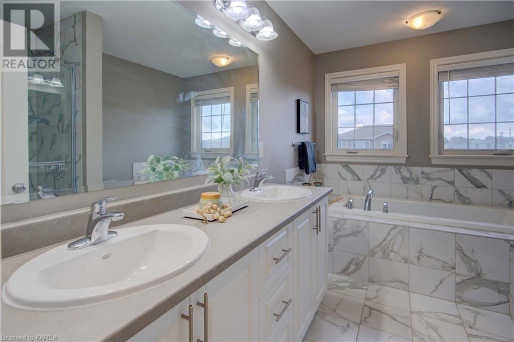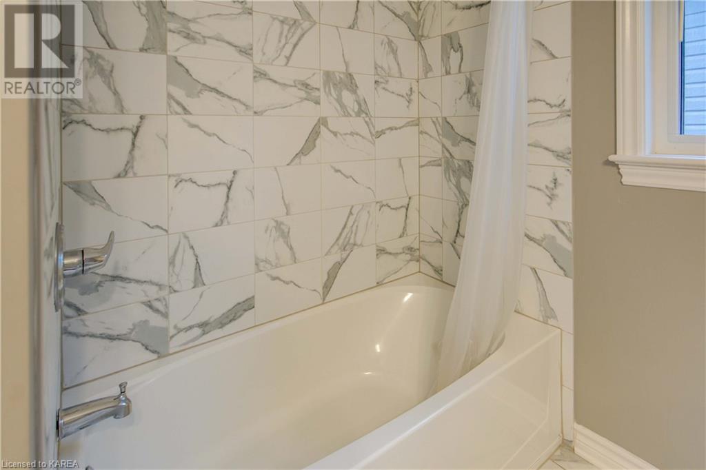 This beautiful Tamarac home features a 4 bedroom open concept design. Step into the bright foyer and it opens up into a beautiful living room with fireplace open to the large kitchen island with seating. The main floor also features a dining area ready for holiday meals. The kitchen features stone countertops and a full walk in pantry and plenty of bright white cabinetry. The main floor also features a mud room heading into the garage perfect for the kids coming home from school. Upstairs you will find a large primary bedroom featuring three closets, including a walk in. The 5 piece ensuite will be your place to getaway in the deep soaker tub. Three generous sized bedrooms and a 4 piece family bathroom are perfect for the kids. The large upstairs laundry room features countertops and more storage. The finished basement includes a large living area, Ready for you to set up for family gatherings. The three piece bath is a nice touch! This home is conveniently located close to 401 and lots of amenities and CFB Kingston. This home shows like a new build only you don’t have to wait for it to be completed! (id:22211)