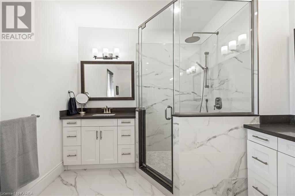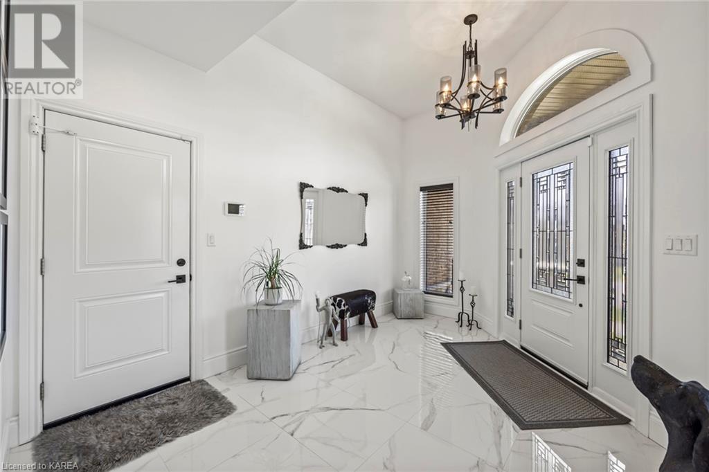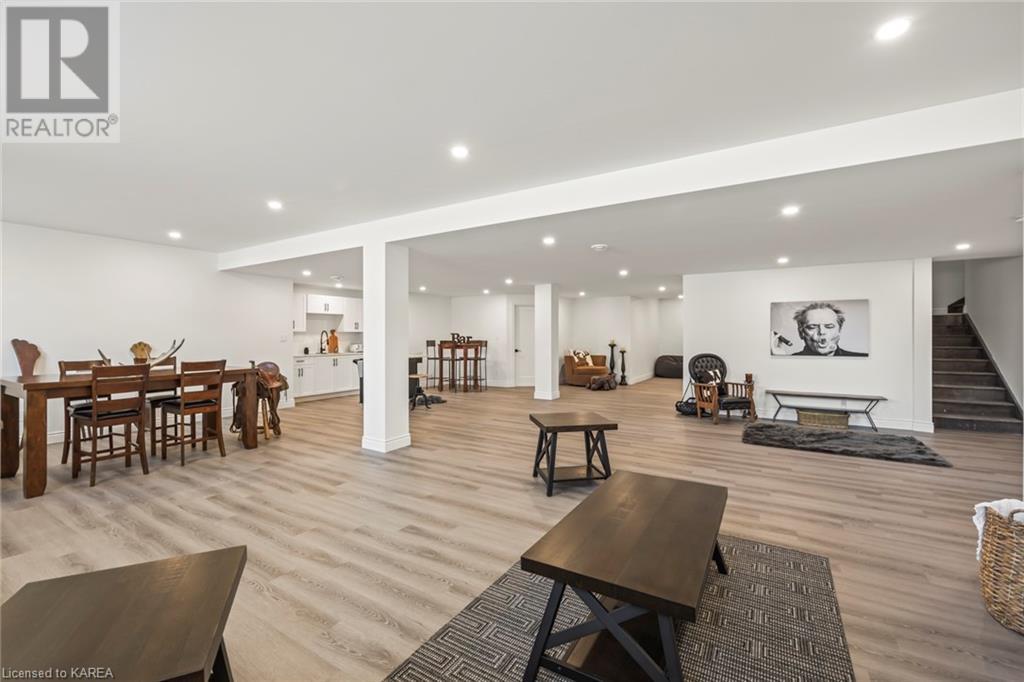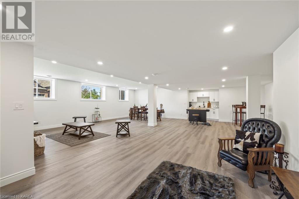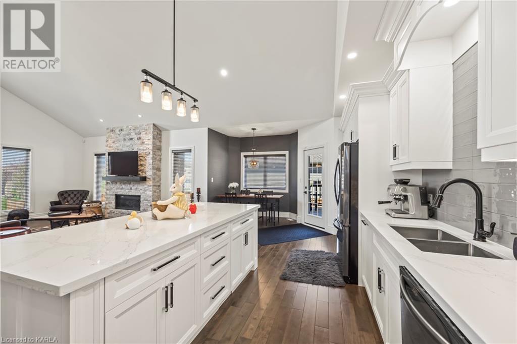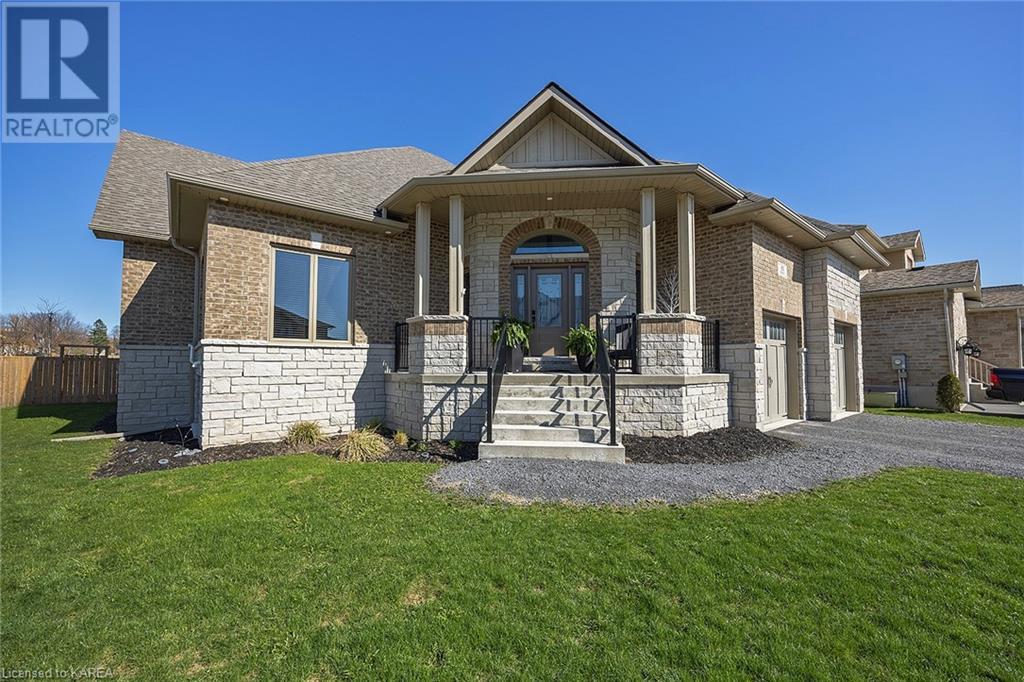 A masterpiece of exceptional quality, aesthetics and practical form, this gorgeous 4 bedroom, 3 bath, 4500 sq ft executive bungalow resonates with understated elegance and tasteful luxury. The brilliant tiled entryway leads through to a truly remarkable and inviting great room with a cathedral ceiling and stone fireplace offering a spectacular venue for entertaining or enjoying family time in a combined space open to the kitchen, dining area, breakfast nook and living room. The kitchen is a gourmet’s playground and any chef's dream with miles of quartz surfaces to work with, tons of cupboard space and top of the line appliances. The principal bedroom suite is really a self contained getaway oasis unto itself with a lounging area, five piece marble ensuite bathroom and a separate dressing room/walk-in closet. The newly completed basement renovations offer an amazing in-law solution or independent living quarters with a separate entrance from the two car garage that leads to a fabulous, bright basement living space /recreation room with huge windows, a wet bar/kitchenette, large bathroom, two well appointed bedrooms and a separate gym/activity space. Built in 2020, this elegant stone, brick and board & batten clad home sits on a corner lot across from a park in the highly desirable Kingston neighbourhood of Westbrook. Near great schools, quick access to the 401 and just minutes away from all the amenities that the west end of the city has to offer. (id:22211)
