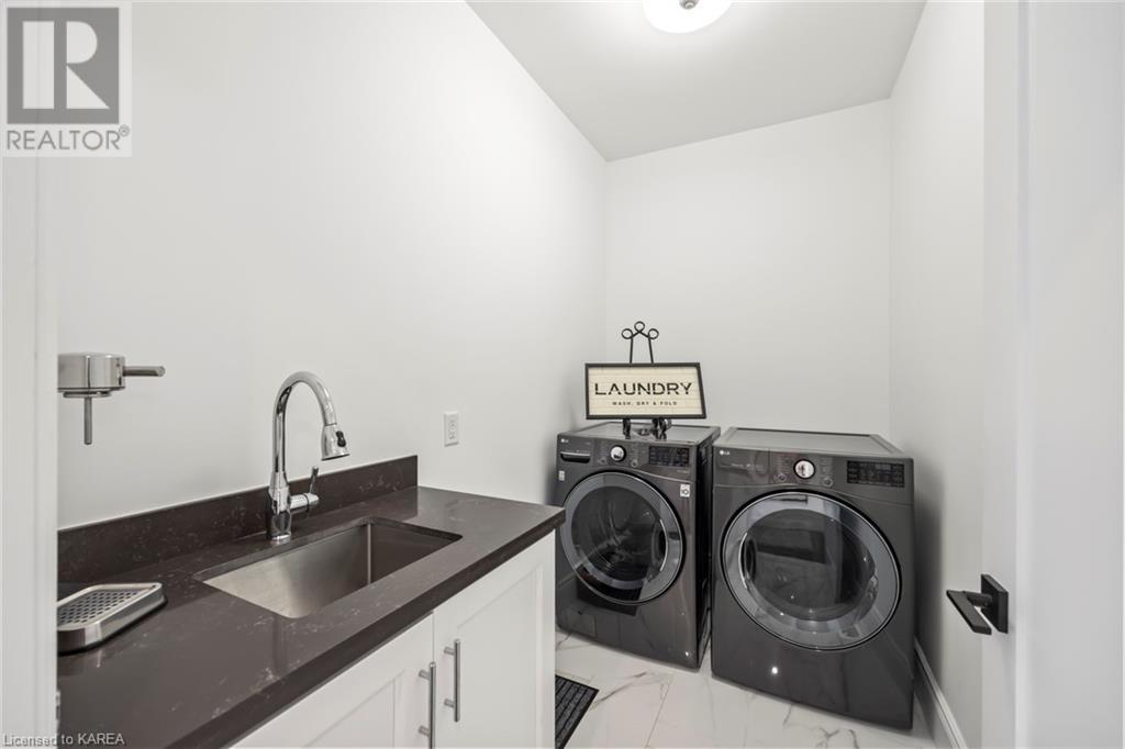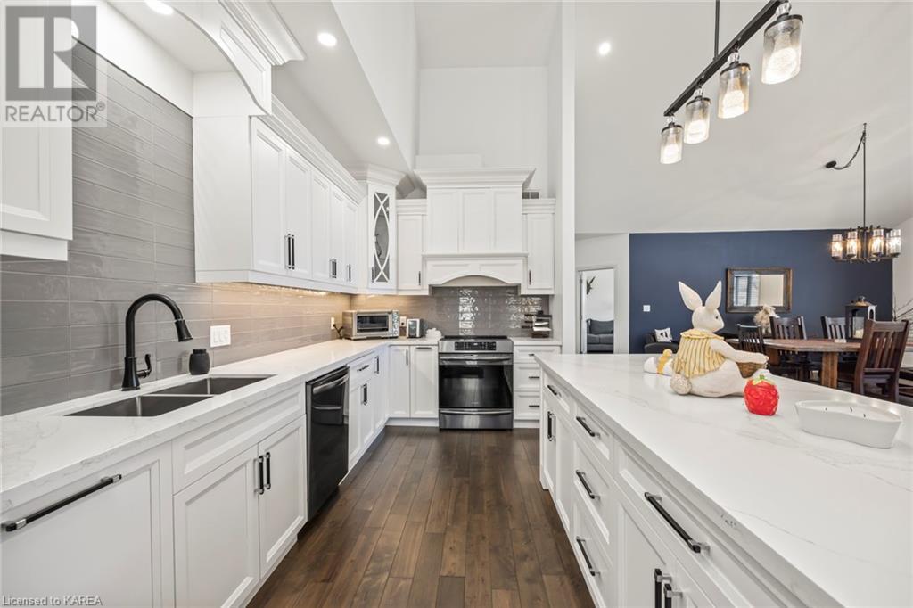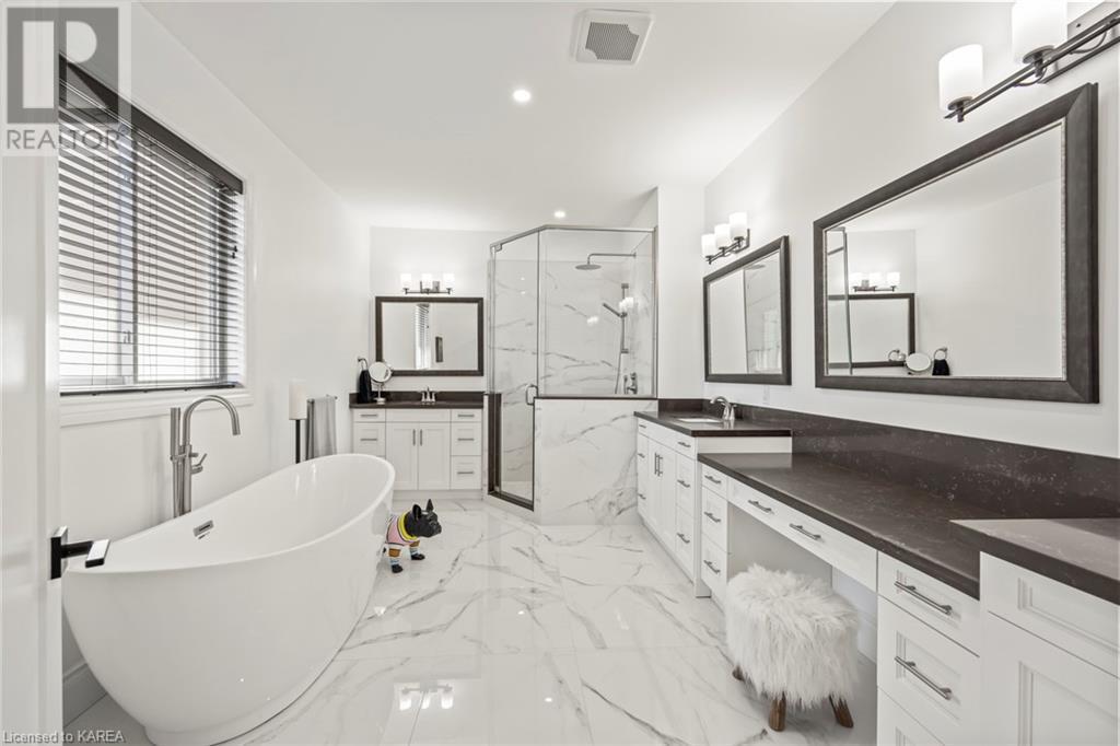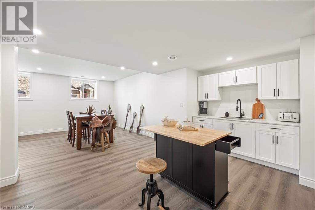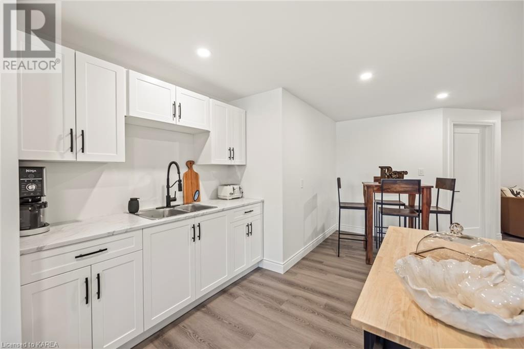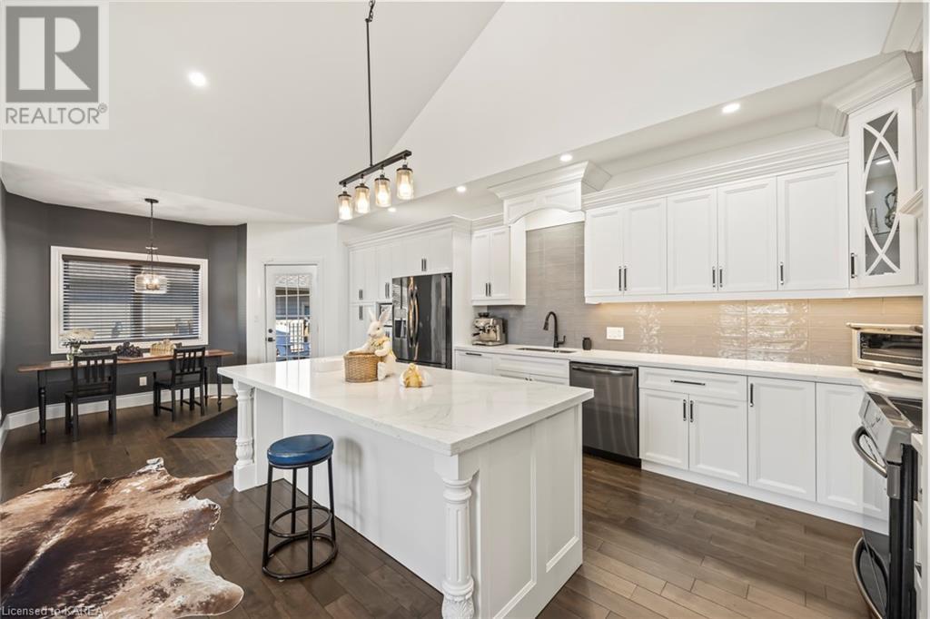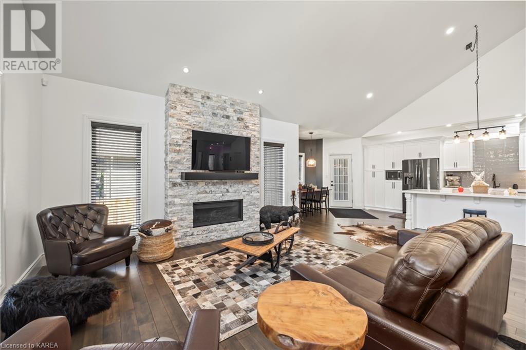 A masterpiece of exceptional quality, aesthetics and practical form, this gorgeous 4 bedroom, 3 bath, 4500 sq ft executive bungalow resonates with understated elegance and tasteful luxury. The brilliant tiled entryway leads through to a truly remarkable and inviting great room with a cathedral ceiling and stone fireplace offering a spectacular venue for entertaining or enjoying family time in a combined space open to the kitchen, dining area, breakfast nook and living room. The kitchen is a gourmet’s playground and any chef's dream with miles of quartz surfaces to work with, tons of cupboard space and top of the line appliances. The principal bedroom suite is really a self contained getaway oasis unto itself with a lounging area, five piece marble ensuite bathroom and a separate dressing room/walk-in closet. The newly completed basement renovations offer an amazing in-law solution or independent living quarters with a separate entrance from the two car garage that leads to a fabulous, bright basement living space /recreation room with huge windows, a wet bar/kitchenette, large bathroom, two well appointed bedrooms and a separate gym/activity space. Built in 2020, this elegant stone, brick and board & batten clad home sits on a corner lot across from a park in the highly desirable Kingston neighbourhood of Westbrook. Near great schools, quick access to the 401 and just minutes away from all the amenities that the west end of the city has to offer. (id:22211)