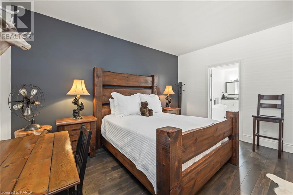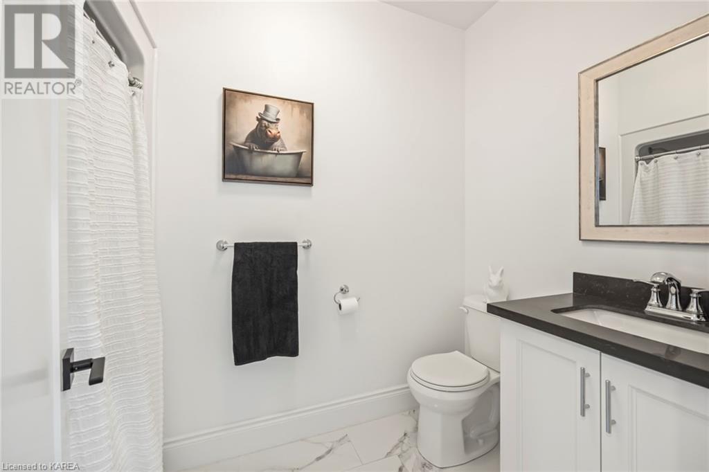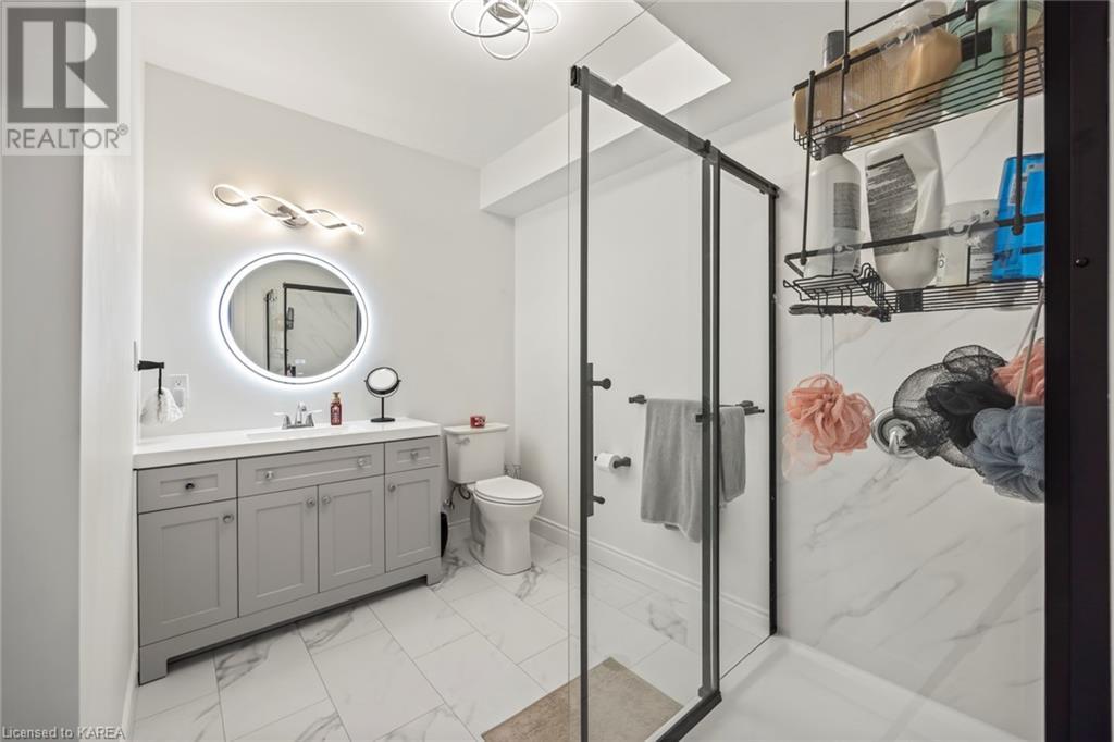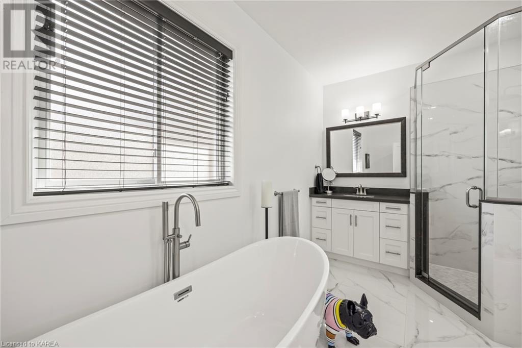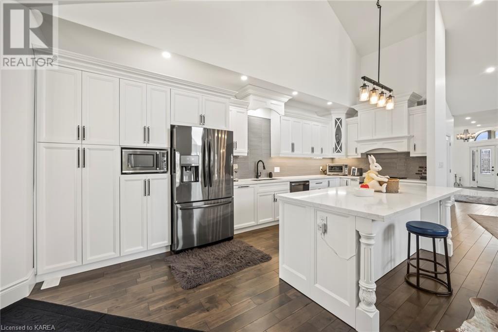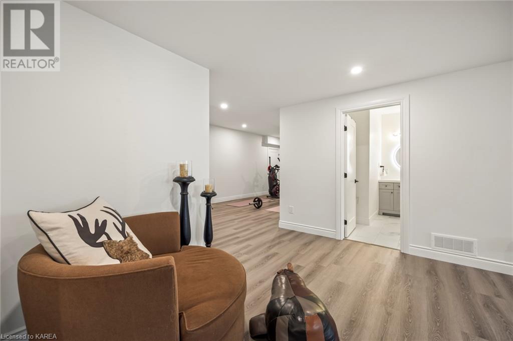 A masterpiece of exceptional quality, aesthetics and practical form, this gorgeous 4 bedroom, 3 bath, 4500 sq ft executive bungalow resonates with understated elegance and tasteful luxury. The brilliant tiled entryway leads through to a truly remarkable and inviting great room with a cathedral ceiling and stone fireplace offering a spectacular venue for entertaining or enjoying family time in a combined space open to the kitchen, dining area, breakfast nook and living room. The kitchen is a gourmet’s playground and any chef's dream with miles of quartz surfaces to work with, tons of cupboard space and top of the line appliances. The principal bedroom suite is really a self contained getaway oasis unto itself with a lounging area, five piece marble ensuite bathroom and a separate dressing room/walk-in closet. The newly completed basement renovations offer an amazing in-law solution or independent living quarters with a separate entrance from the two car garage that leads to a fabulous, bright basement living space /recreation room with huge windows, a wet bar/kitchenette, large bathroom, two well appointed bedrooms and a separate gym/activity space. Built in 2020, this elegant stone, brick and board & batten clad home sits on a corner lot across from a park in the highly desirable Kingston neighbourhood of Westbrook. Near great schools, quick access to the 401 and just minutes away from all the amenities that the west end of the city has to offer. (id:22211)