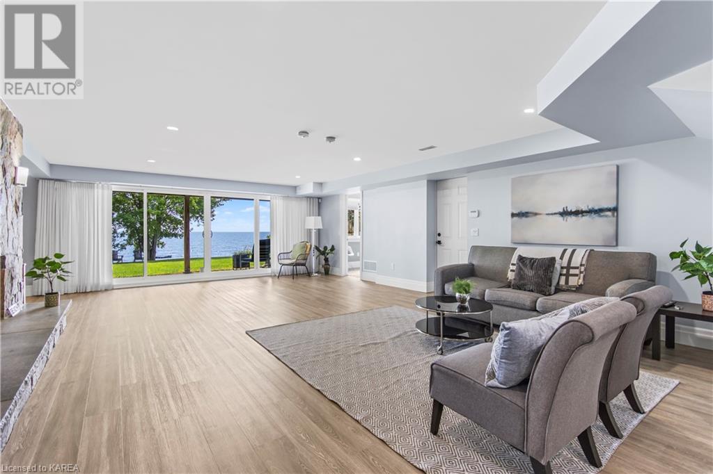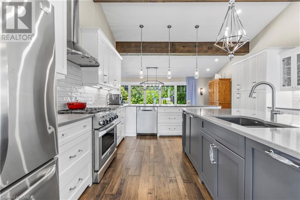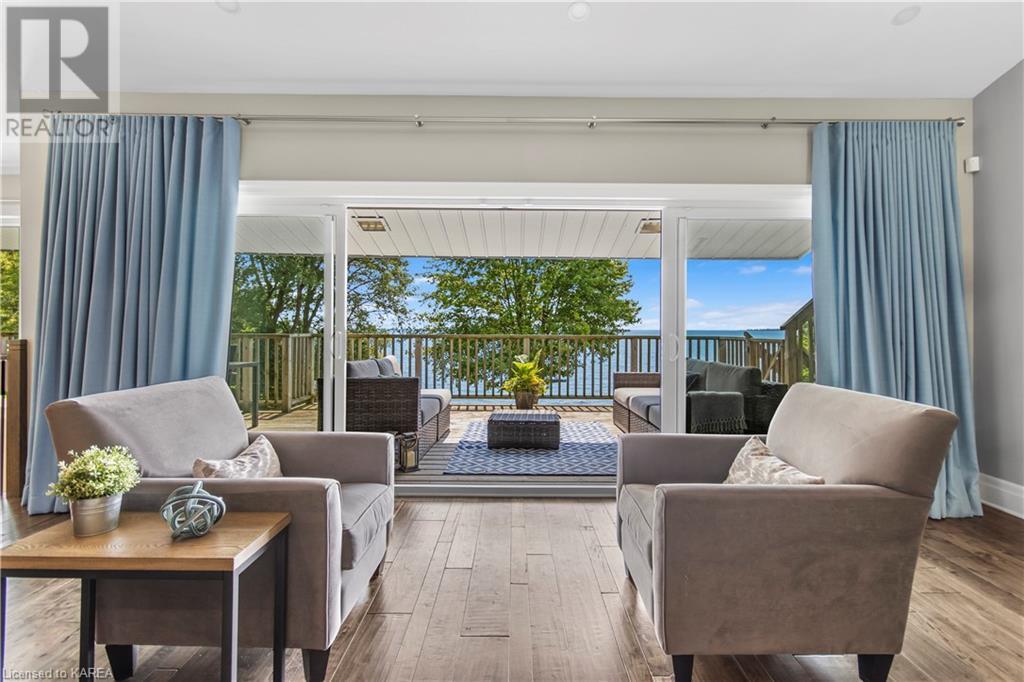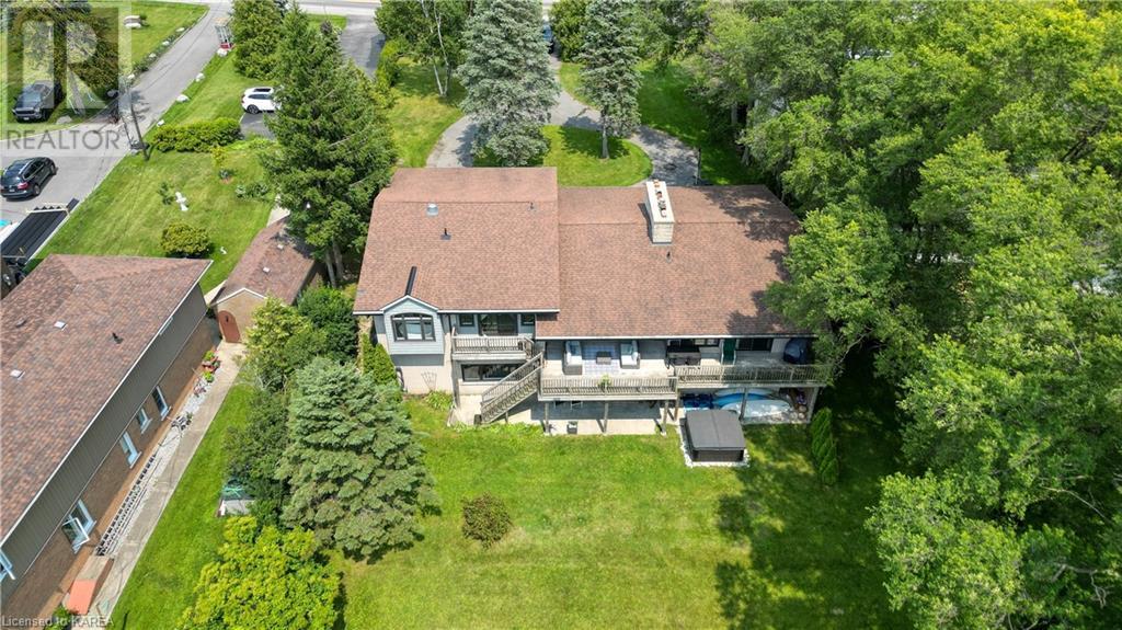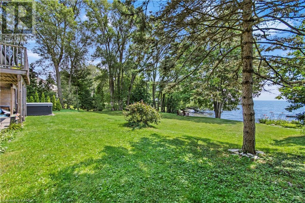 Welcome to this stunning fully updated bungalow taken back to the studs. It boasts a modern design and sits on just under a half an acre of lush land with 100 ft of shoreline, adorned with beautiful mature trees and gardens. Nestled along the shores of picturesque Lake Ontario, this property offers a truly serene and scenic oasis. As you step into the home, you'll be greeted by incredibly high ceilings with spectacular wood beams, creating a sense of grandeur and elegance. The bright chef's kitchen features a large center island and breakfast bar, perfect for gathering with family and friends. The formal yet cozy living room provides a comfortable space to relax and unwind. The primary bedroom is a true retreat, offering breathtaking views of the lake and an ensuite bathroom complete with a soaker tub and a massive walk-in closet. Two additional bedrooms, one with a walk-in closet, and a conveniently located 4-piece bathroom complete the main floor living space. The main floor laundry adds convenience. The lower level of the home features a walk-out and provides an amazing space for additional living. With a second laundry room, two more bedrooms, a 3-piece bathroom, and ample storage, the possibilities are endless. Outside, the multi-level deck is perfect for entertaining and enjoying the natural beauty of the surroundings. The meticulously maintained yard is a gardener's dream. This oasis is truly incredible and is situated just minutes to downtown Kingston. Must be seen to be truly appreciated! (id:22211)