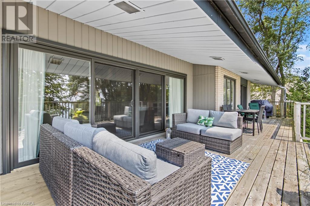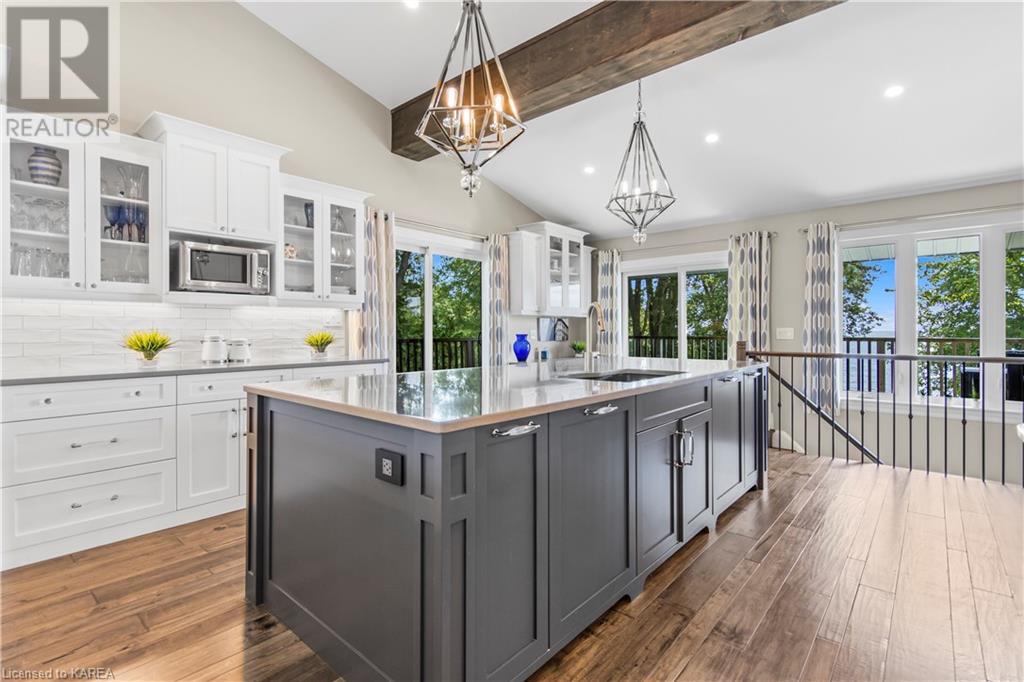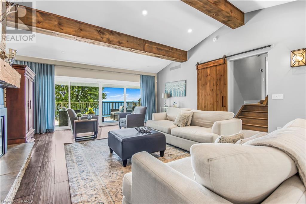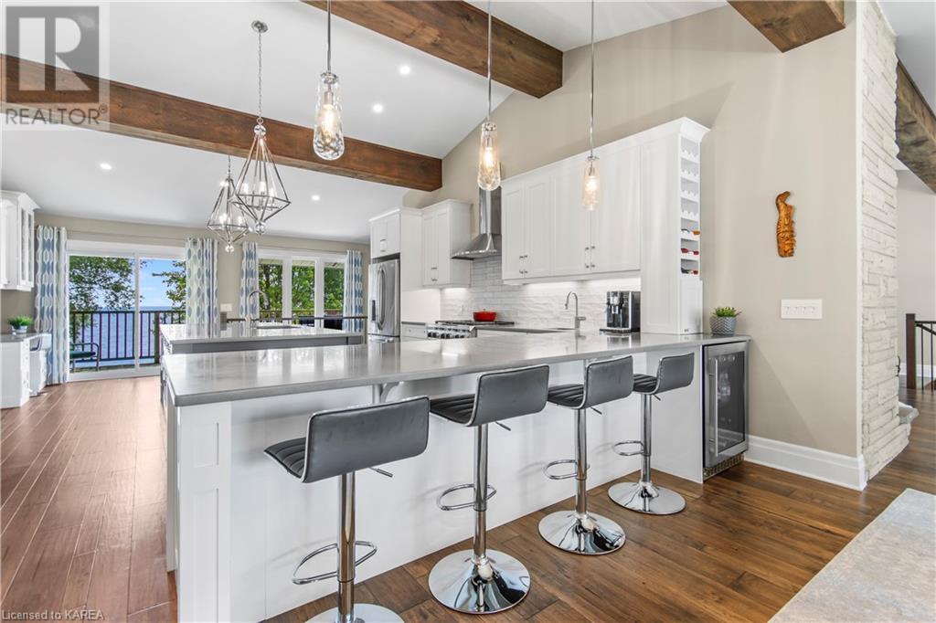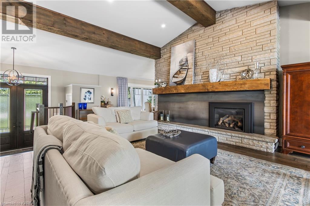 Welcome to this stunning fully updated bungalow taken back to the studs. It boasts a modern design and sits on just under a half an acre of lush land with 100 ft of shoreline, adorned with beautiful mature trees and gardens. Nestled along the shores of picturesque Lake Ontario, this property offers a truly serene and scenic oasis. As you step into the home, you'll be greeted by incredibly high ceilings with spectacular wood beams, creating a sense of grandeur and elegance. The bright chef's kitchen features a large center island and breakfast bar, perfect for gathering with family and friends. The formal yet cozy living room provides a comfortable space to relax and unwind. The primary bedroom is a true retreat, offering breathtaking views of the lake and an ensuite bathroom complete with a soaker tub and a massive walk-in closet. Two additional bedrooms, one with a walk-in closet, and a conveniently located 4-piece bathroom complete the main floor living space. The main floor laundry adds convenience. The lower level of the home features a walk-out and provides an amazing space for additional living. With a second laundry room, two more bedrooms, a 3-piece bathroom, and ample storage, the possibilities are endless. Outside, the multi-level deck is perfect for entertaining and enjoying the natural beauty of the surroundings. The meticulously maintained yard is a gardener's dream. This oasis is truly incredible and is situated just minutes to downtown Kingston. Must be seen to be truly appreciated! (id:22211)