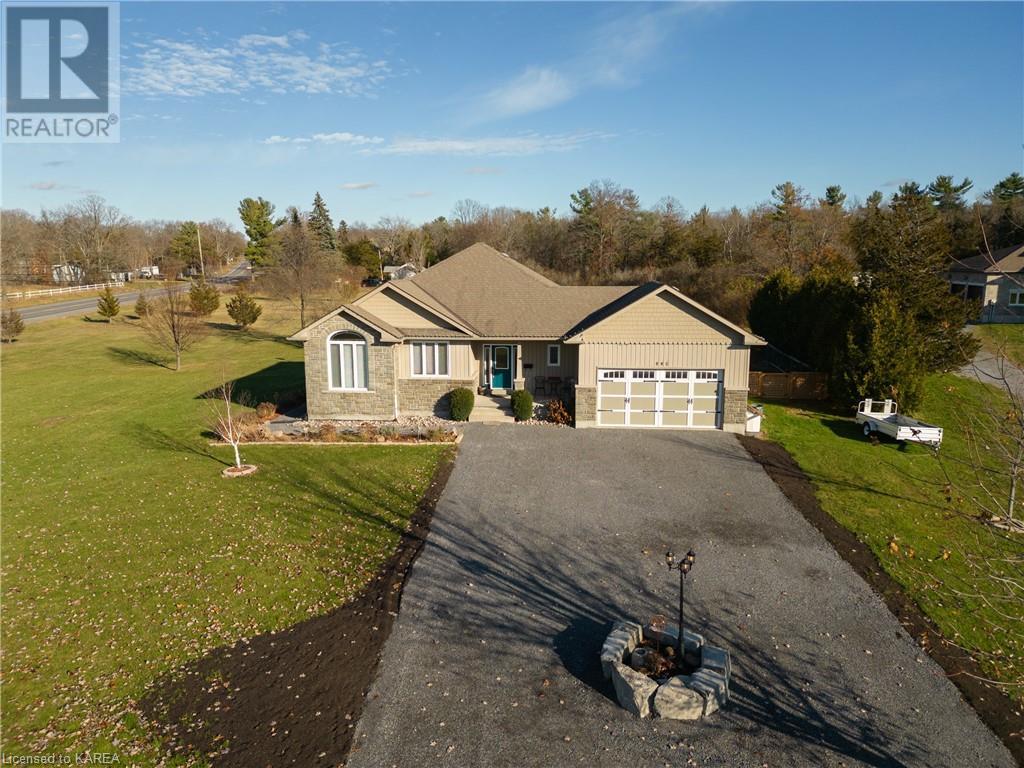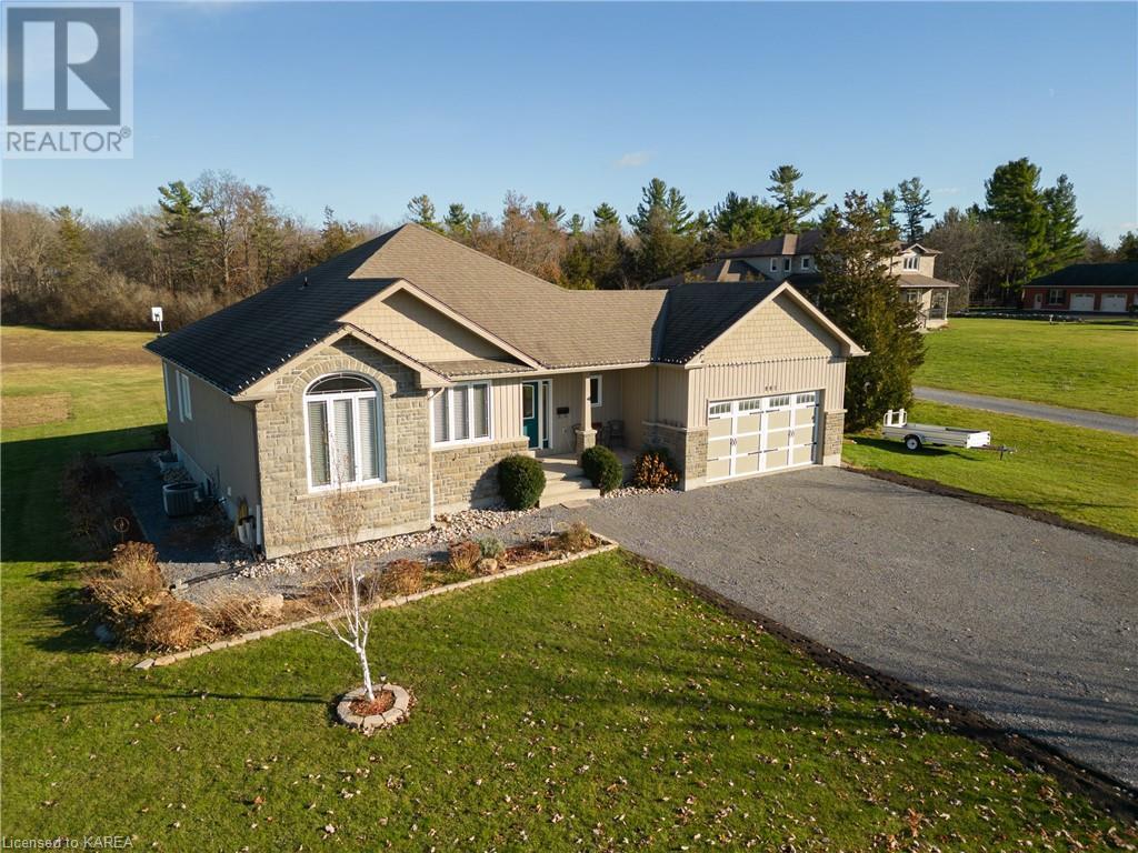 A Stunning bungalow boasting an upgraded level of timeless finishes in Grousewood Estates, just east of downtown Kingston. Main level features maple hardwood and tile floors, an open and inviting design with exceptional natural light, and gas fireplace with cultured stone mantle. The kitchen features maple cabinets with marble and granite counter tops. Come home to a generous primary bedroom with his-and-hers sinks, shower, soaker tub in your ensuite, and a walk-in closet. 2 more well-sized bedrooms, 3-piece bathroom, and laundry room finish out the main floor. More natural light pours into the fully finished basement with an additional 2 bedrooms, a 3-piece bathroom and an office, plus a large rec room. Enjoy your huge deck, overlooking 2 plus acres of land. Feel secure with the bonus of an 8 kw Generac generator wired to automatically come on in the event of power failure. Spoil yourself with quality in a great location! (id:22211)