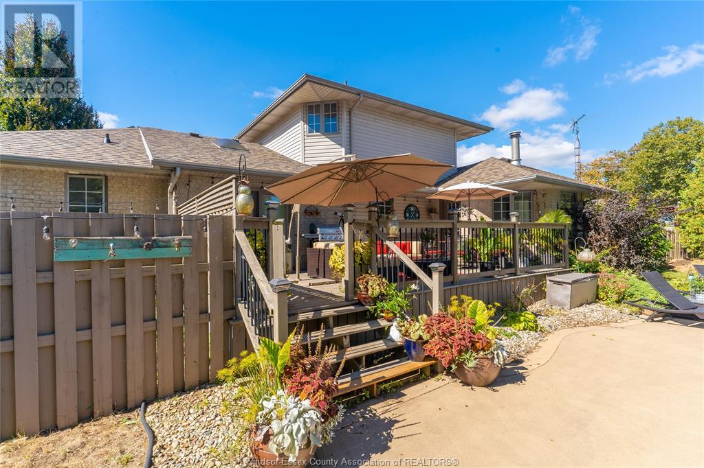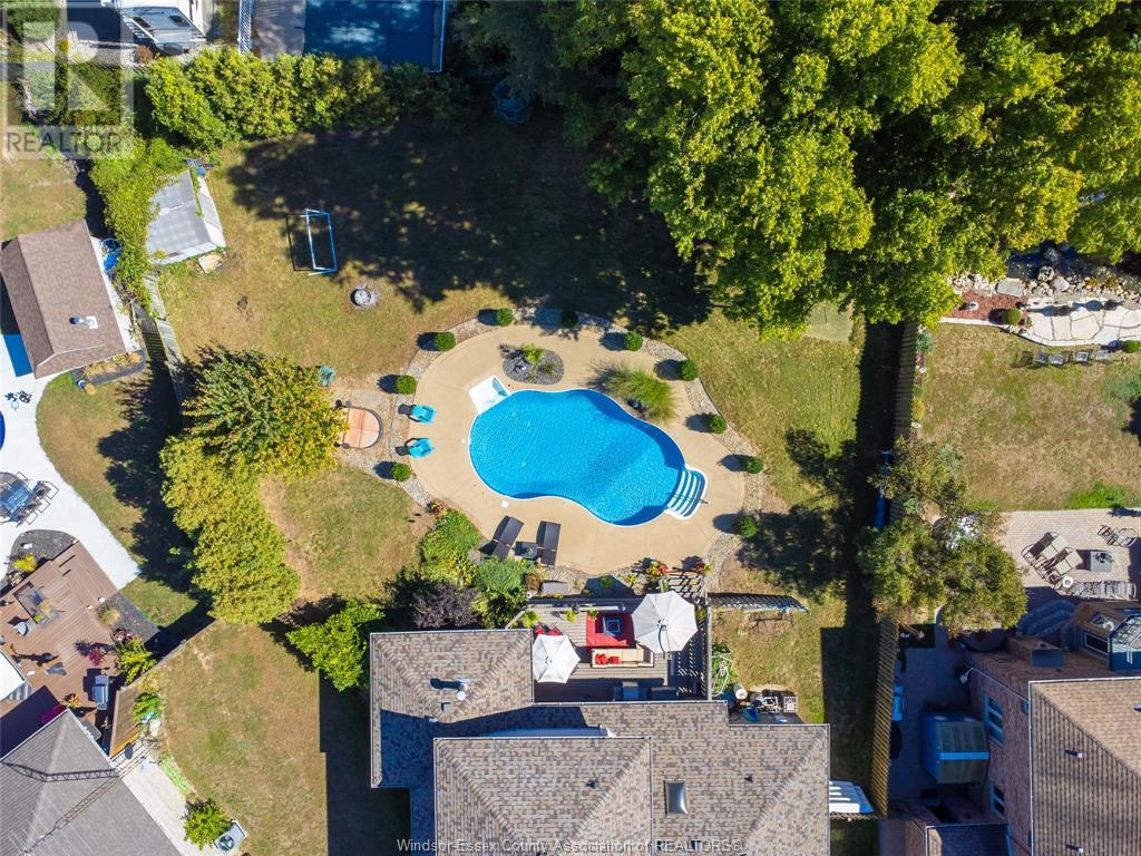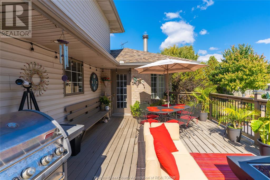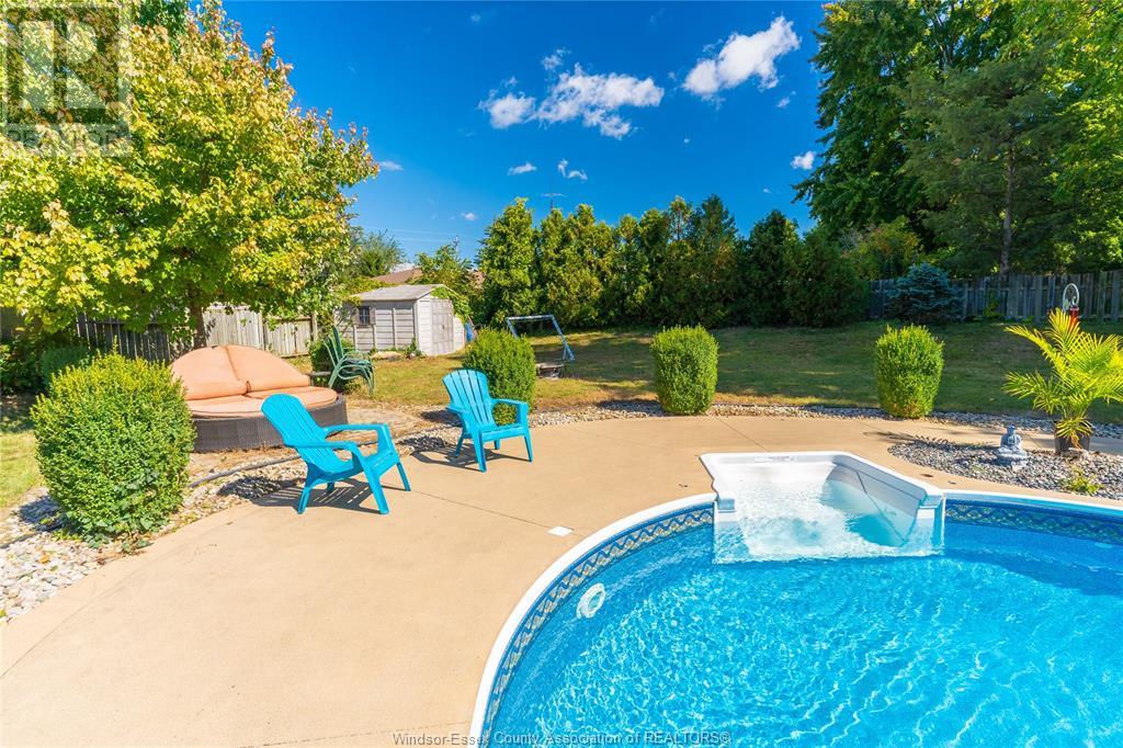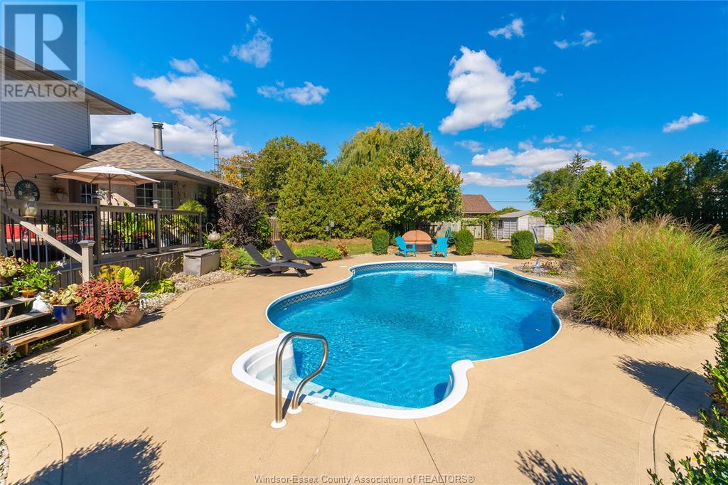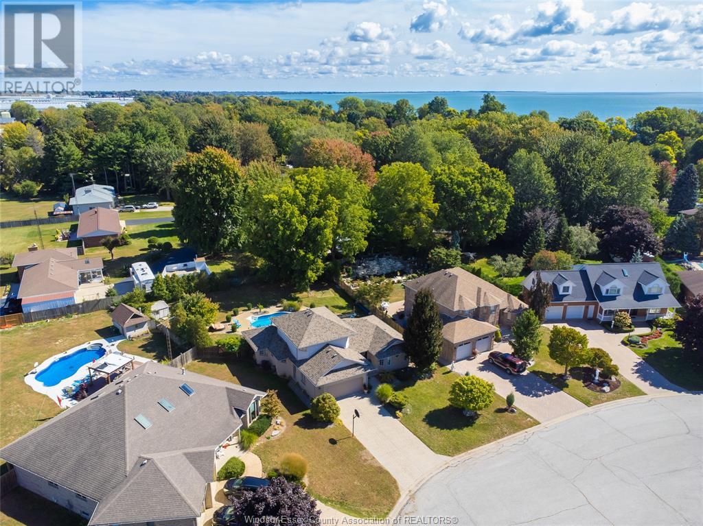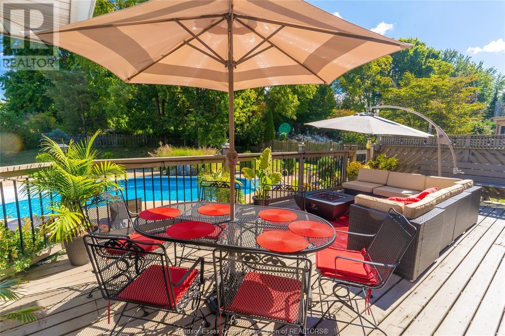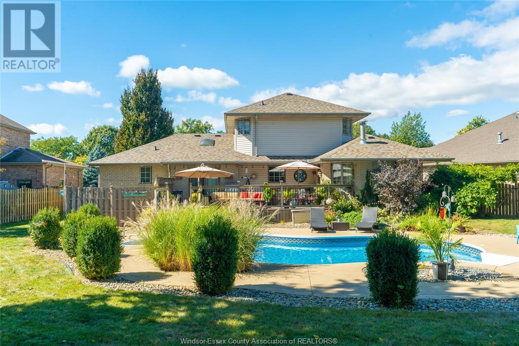 A rare find and must-see property! On a quiet cul-de-sac, the picturesque rear yard of this well-appointed home is a true oasis, featuring an inground saltwater pool, spacious deck and patio. The oversized lot is professionally landscaped with water features, inground sprinklers, stamped concrete drive and 2.5 car garage. The massive primary suite boasts a cathedral ceiling, walk-in closet and full bath with double vanity. The dining room with French doors to the deck flows into the gourmet kitchen with hickory cabinets, and center island. Laundry and powder room are conveniently located on the first floor. Panoramic views provide natural light in the living room with access to the deck. The oak staircase leads to the 2nd floor with 3 more bedrooms and a full bath. And the partially finished lower level features a family room, roughed in bath and plentiful storage. Here’s your opportunity to enjoy quality of life in one of Kingsville’s most sought-after neighbourhoods! (id:22211)