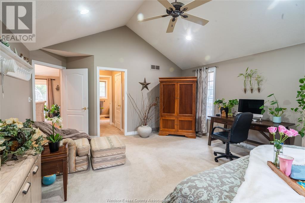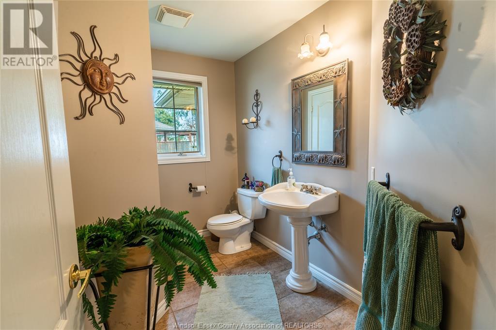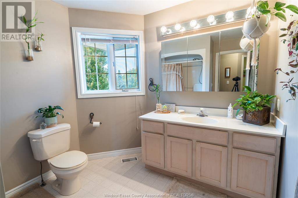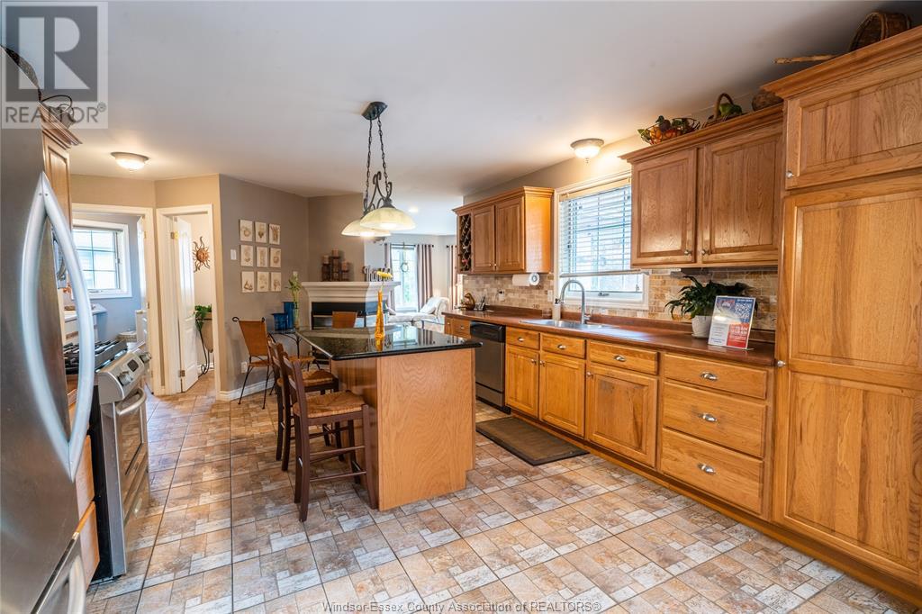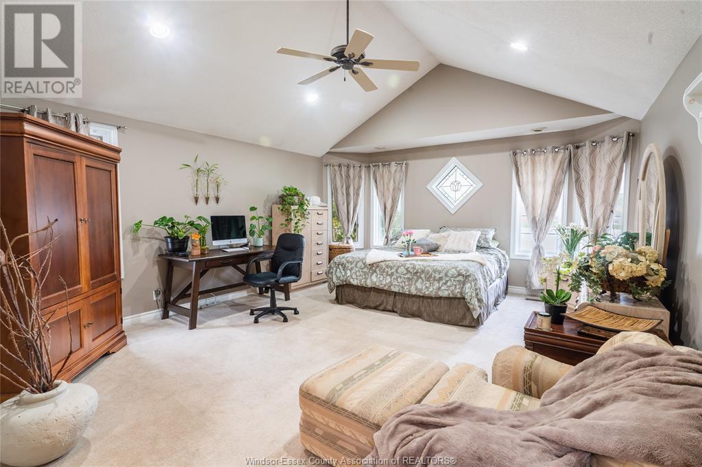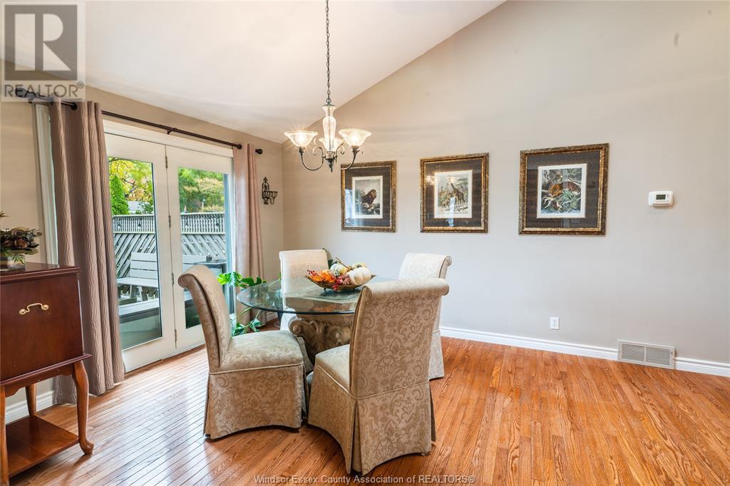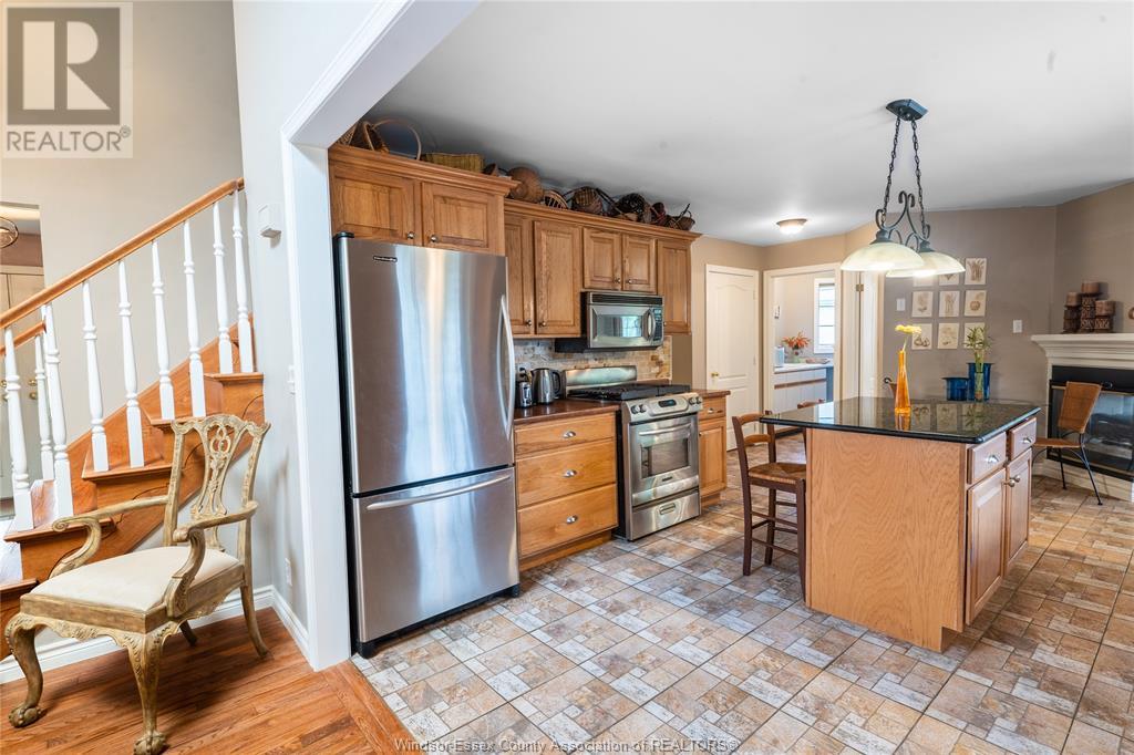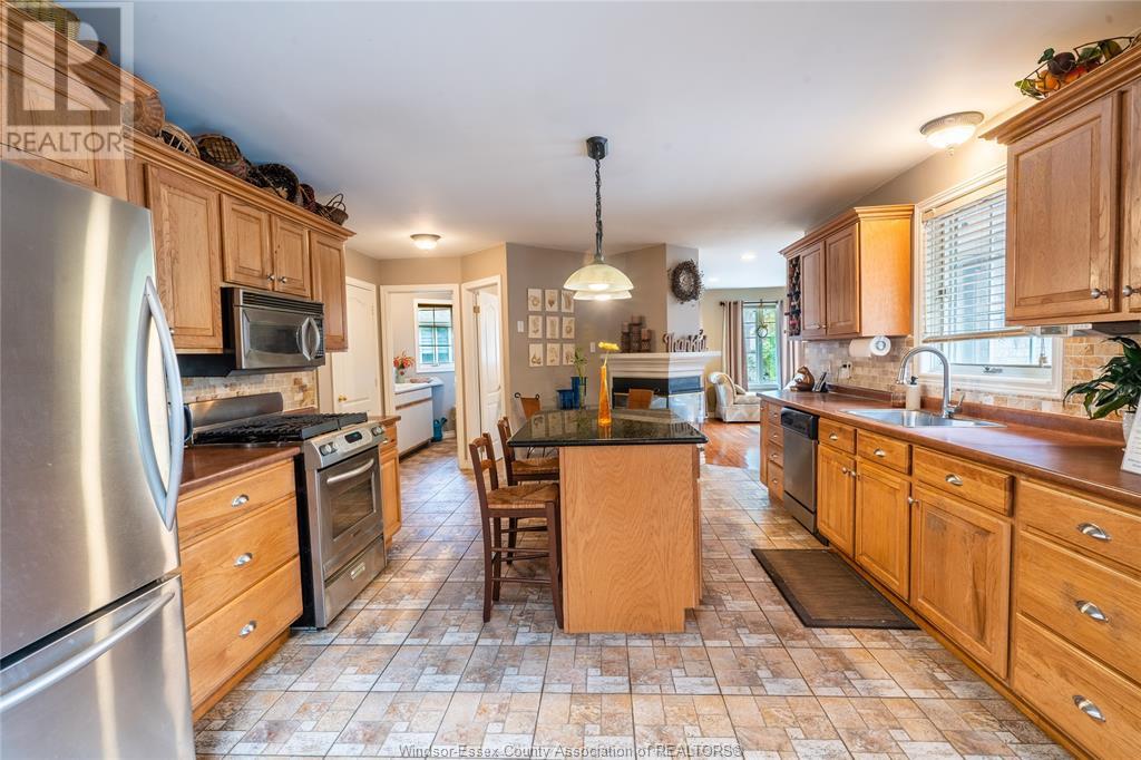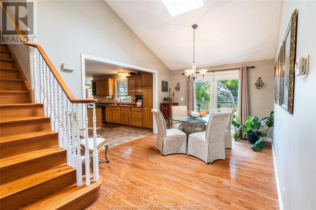 A rare find and must-see property! On a quiet cul-de-sac, the picturesque rear yard of this well-appointed home is a true oasis, featuring an inground saltwater pool, spacious deck and patio. The oversized lot is professionally landscaped with water features, inground sprinklers, stamped concrete drive and 2.5 car garage. The massive primary suite boasts a cathedral ceiling, walk-in closet and full bath with double vanity. The dining room with French doors to the deck flows into the gourmet kitchen with hickory cabinets, and center island. Laundry and powder room are conveniently located on the first floor. Panoramic views provide natural light in the living room with access to the deck. The oak staircase leads to the 2nd floor with 3 more bedrooms and a full bath. And the partially finished lower level features a family room, roughed in bath and plentiful storage. Here’s your opportunity to enjoy quality of life in one of Kingsville’s most sought-after neighbourhoods! (id:22211)
