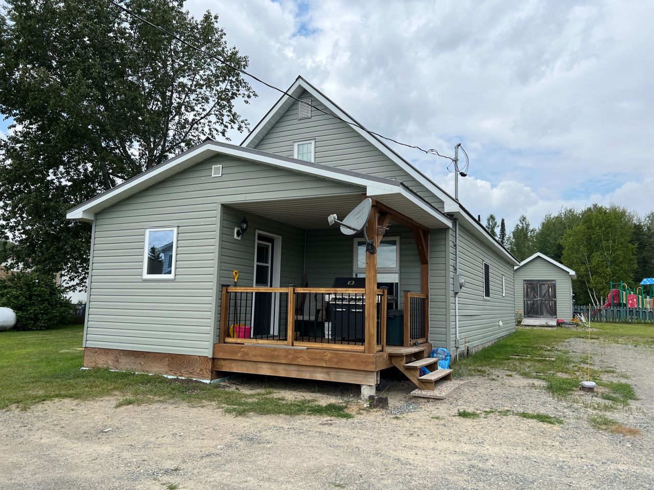 WELCOME TO DOBIE! A quaint village that offers an abundance of surrounding lakes with excellent fishing and hunting! Very spacious three lot property! This lovely, totally renovated and well maintained 1.5 storey home has a spacious entrance which invites you into an attractive open concept living space. The main floor has a combined living room/dining room, large kitchen, and a 4pc bath combined laundry area. The second level has two good sized bedrooms, space for an office/den and large storage and a walk-out deck. Included is a 10' ft. x 10" ft utility shed. This is a must see property!