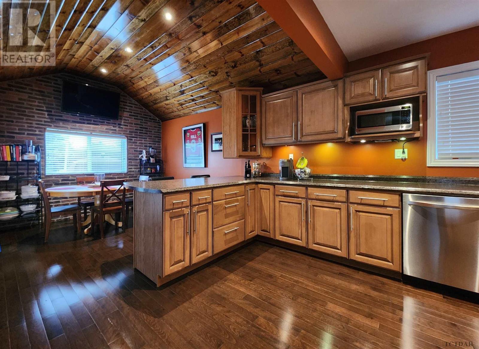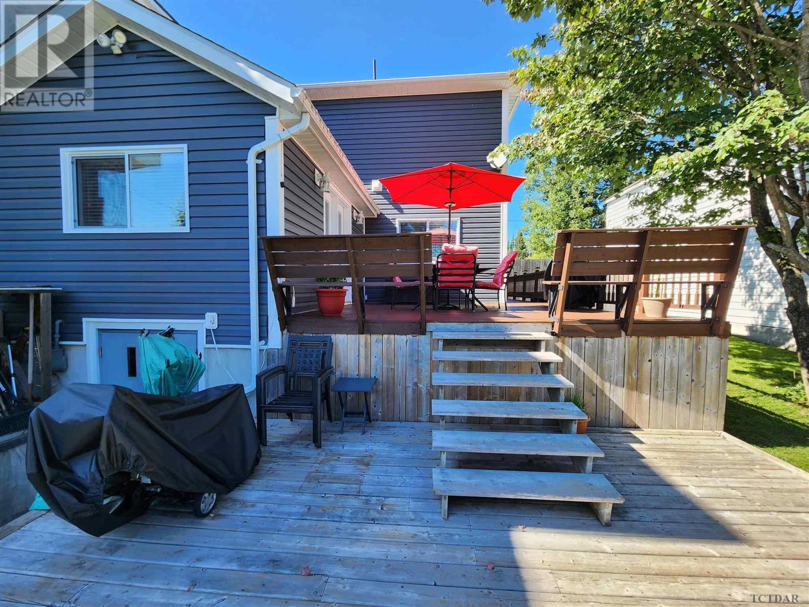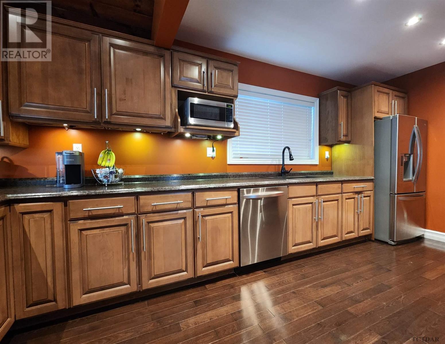 STYLISH & COMFORTABLY ELEGANT 4 BEDROOM HOME with FULLY FENCED-IN BACKYARD. Located in close proximity to many Kirkland Lake schools & community complex, 61 Second St. E is an ideal home to entertain family & friends. The chef in the family will fall in love with the contemporary spacious modern kitchen, dining space with vaulted ceilings, mounted Flatscreen TV & feature brick wall. Also on the main level is the living room & an office / or 4th bedroom. How convenient is the easy access to a tiered large back deck overlooking a fully fenced-in backyard complete with fire pit? Take the uniquely lit stairway up to the 2nd level bedrooms & an outstanding 4 pc bathroom / laundry room. The basement boasts a rec room, 3 piece bathroom & an an insulated garage / workshop with access via the back of the house. Other features include: H20 on demand, central air & appliances included. With online virtual tour. Add this lovely home to your list of must sees. (id:22211)