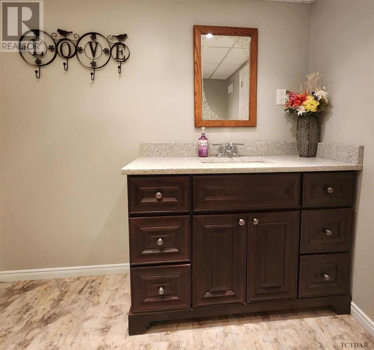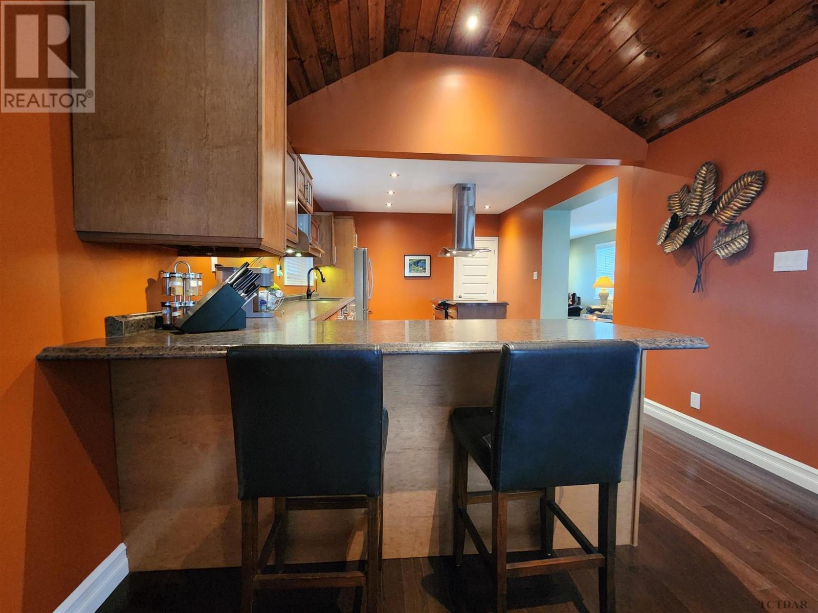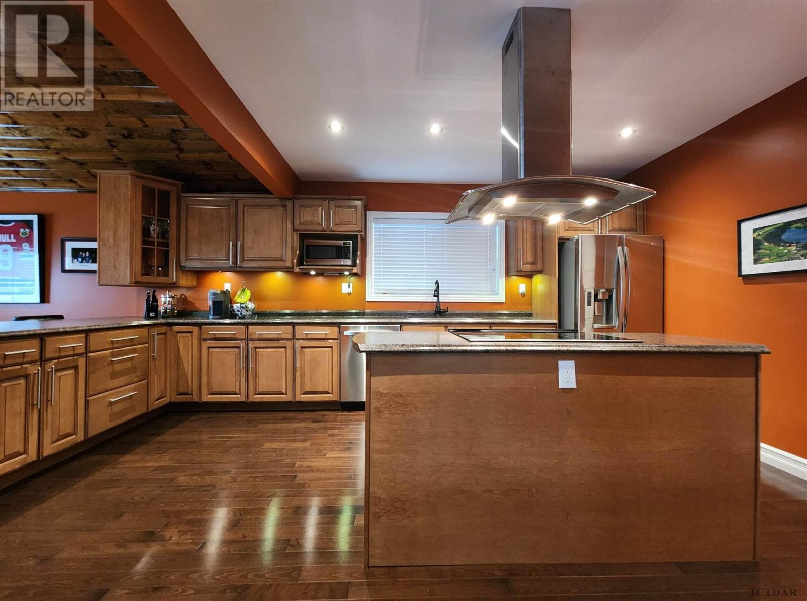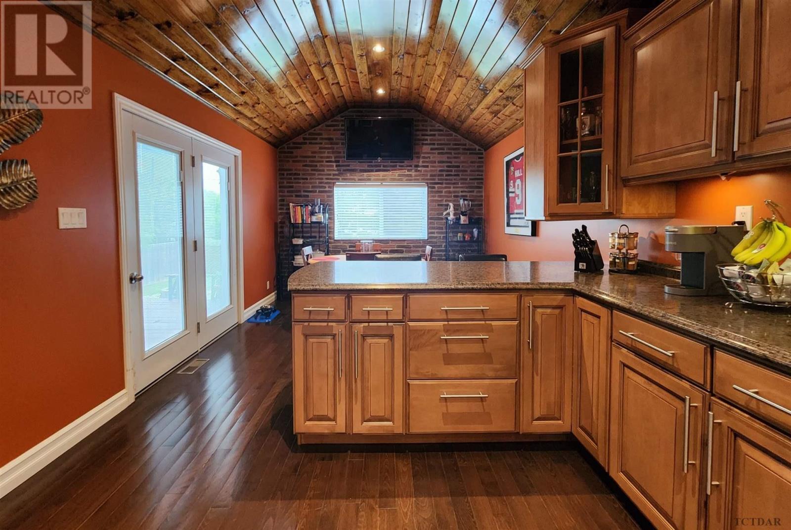 STYLISH & COMFORTABLY ELEGANT 4 BEDROOM HOME with FULLY FENCED-IN BACKYARD. Located in close proximity to many Kirkland Lake schools & community complex, 61 Second St. E is an ideal home to entertain family & friends. The chef in the family will fall in love with the contemporary spacious modern kitchen, dining space with vaulted ceilings, mounted Flatscreen TV & feature brick wall. Also on the main level is the living room & an office / or 4th bedroom. How convenient is the easy access to a tiered large back deck overlooking a fully fenced-in backyard complete with fire pit? Take the uniquely lit stairway up to the 2nd level bedrooms & an outstanding 4 pc bathroom / laundry room. The basement boasts a rec room, 3 piece bathroom & an an insulated garage / workshop with access via the back of the house. Other features include: H20 on demand, central air & appliances included. With online virtual tour. Add this lovely home to your list of must sees. (id:22211)