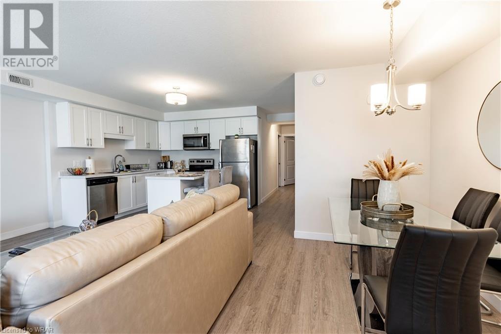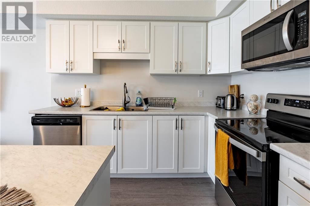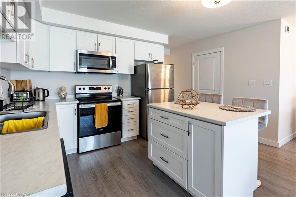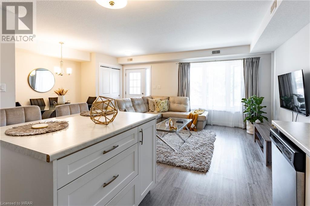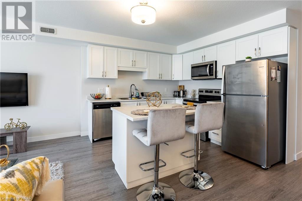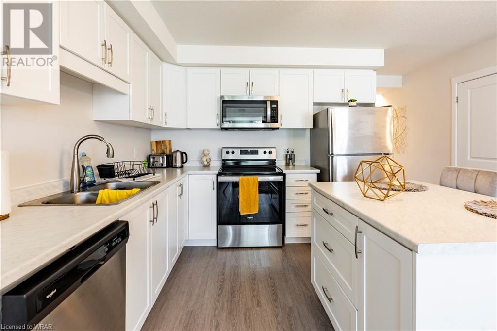 This 2 bed 2 bath condo is located in the desirable Huron Park area. This home boasts over 1000sq.ft. of living space with a private entrance. The inviting and open great room is adorned with laminate flooring through-out. The adjacent white kitchen with island is spacious with stainless steel appliances. The primary bedroom has it's own exclusive use ensuite with a large 5x3 shower. The secondary bedroom has easy access to the 4-pc main bathroom. This unit comes with designated parking spot #46 and plenty of parking for your visitors. Easy maintenance living with a condo fee of just $175.00/month. The home is located near all amenities as well as the Huron Natural Area, great local schools, and easy access to the 401 HWY and Conestoga College. Book your showing today! (id:22211)