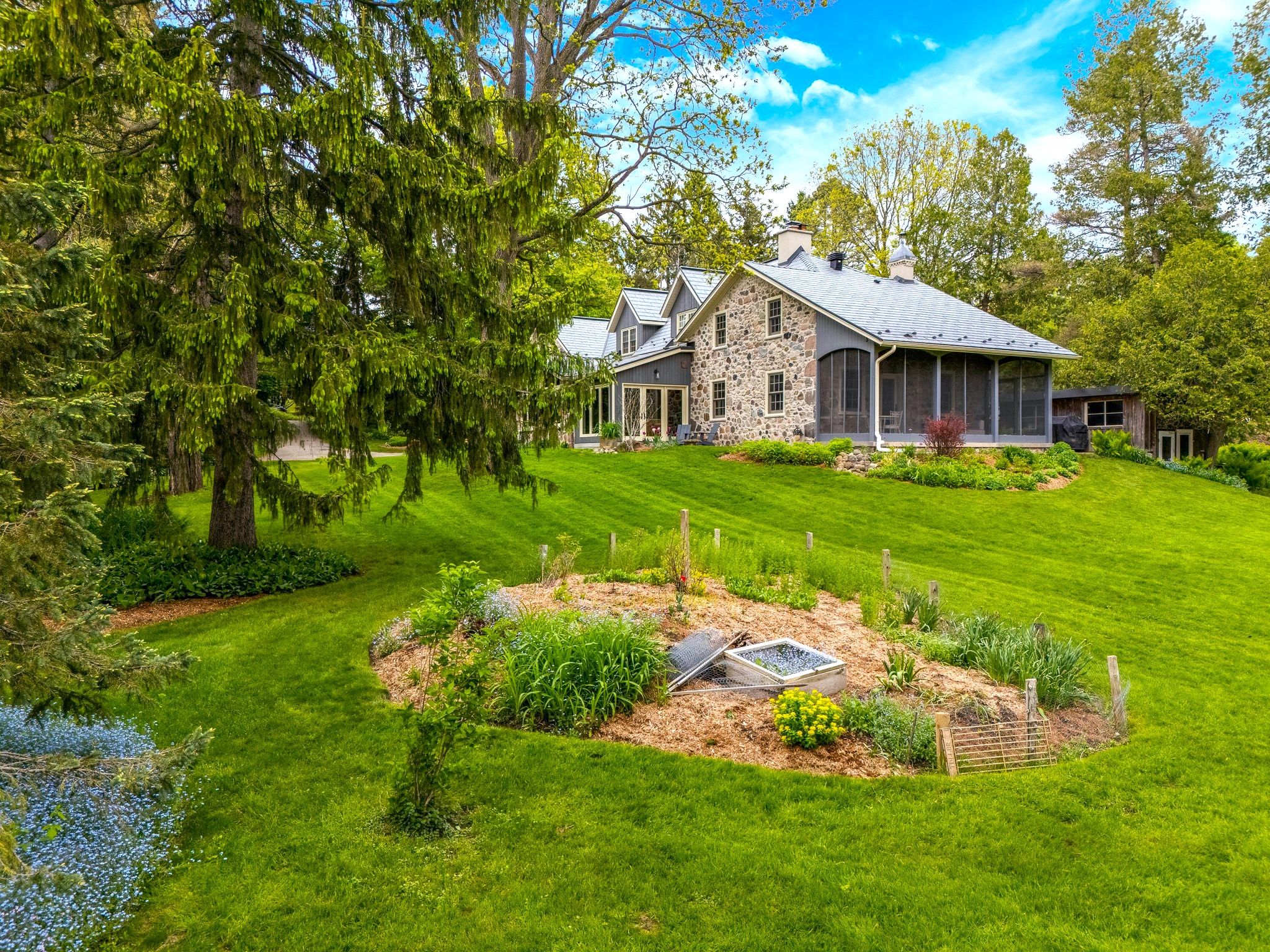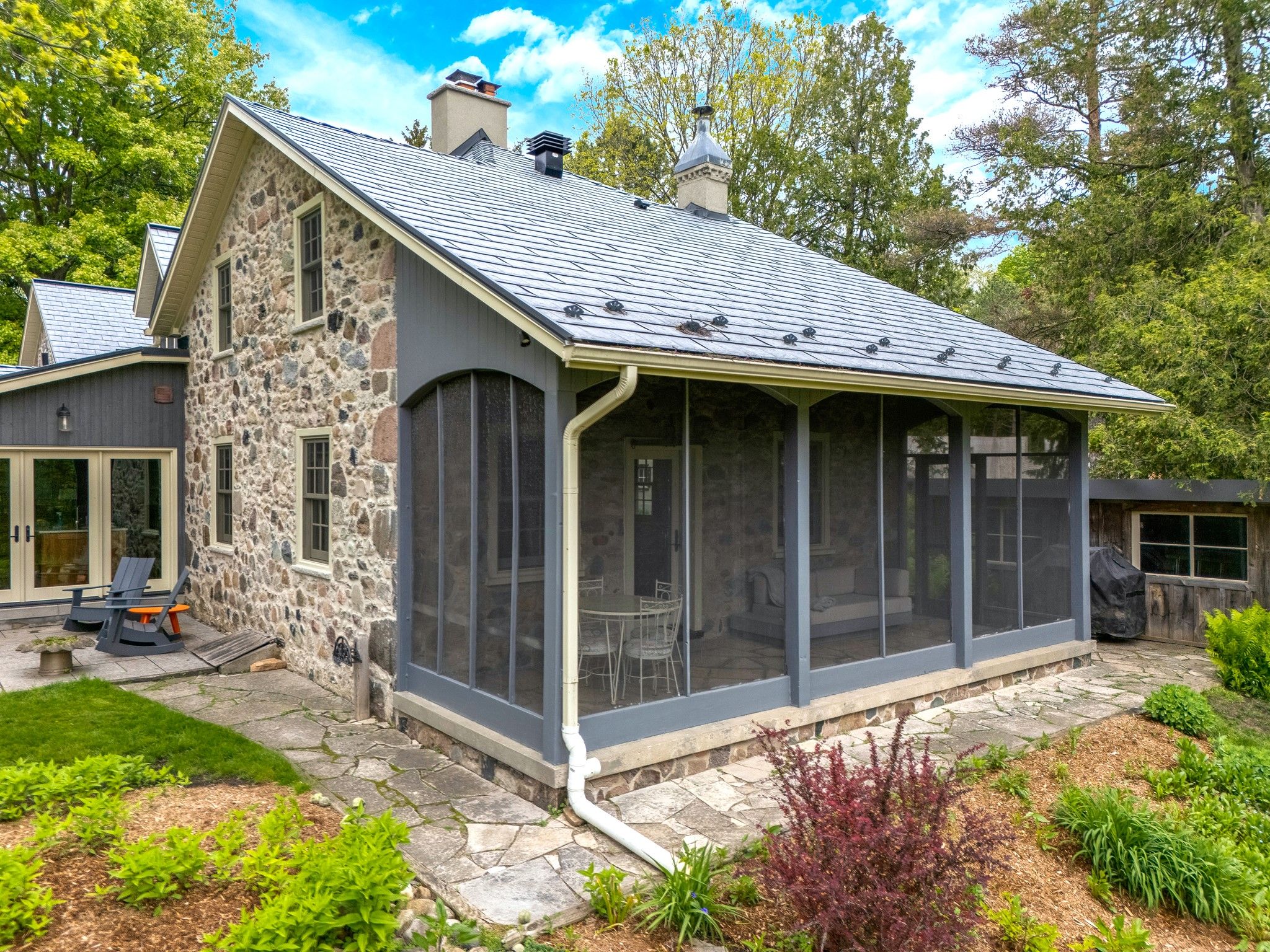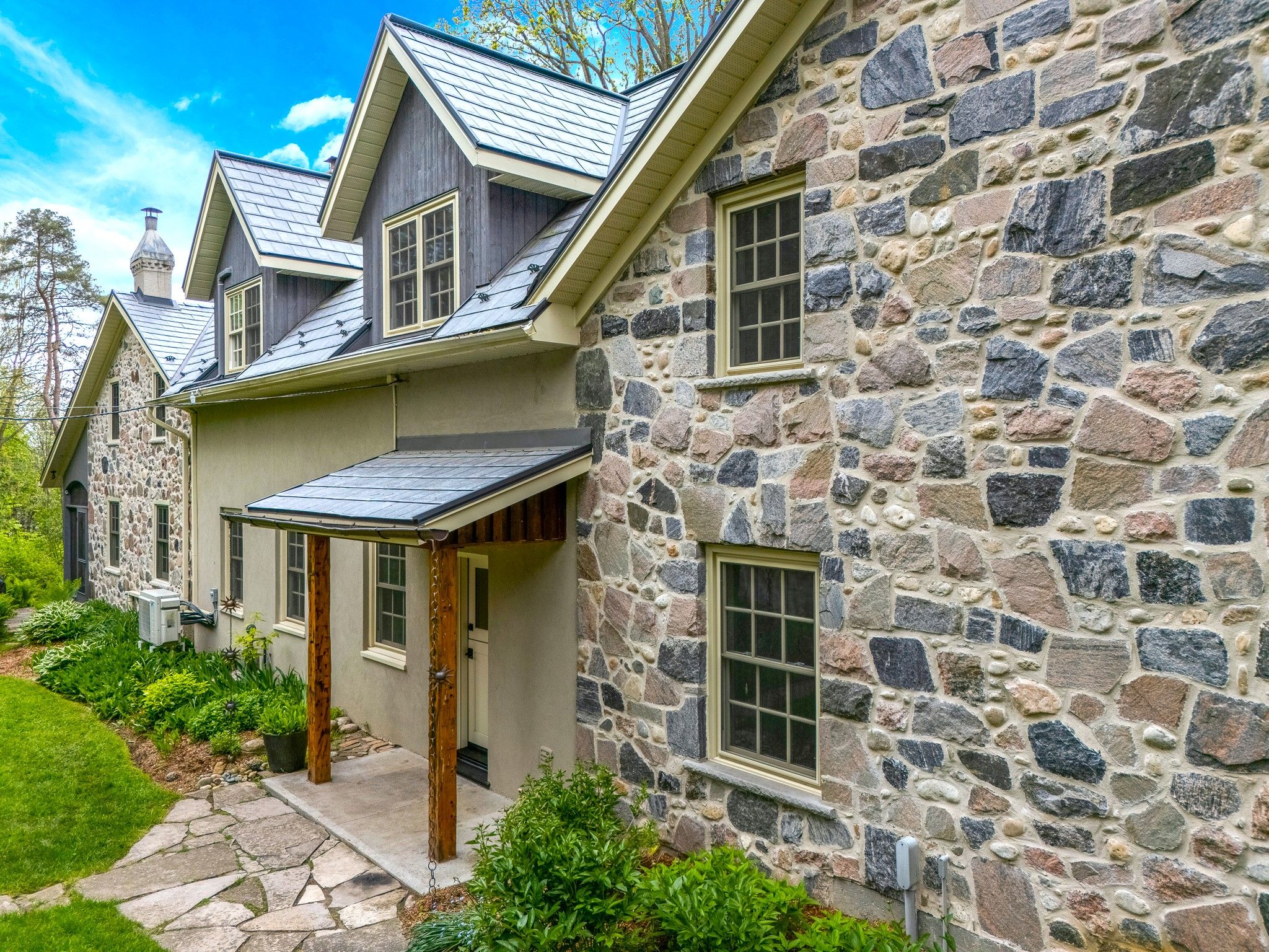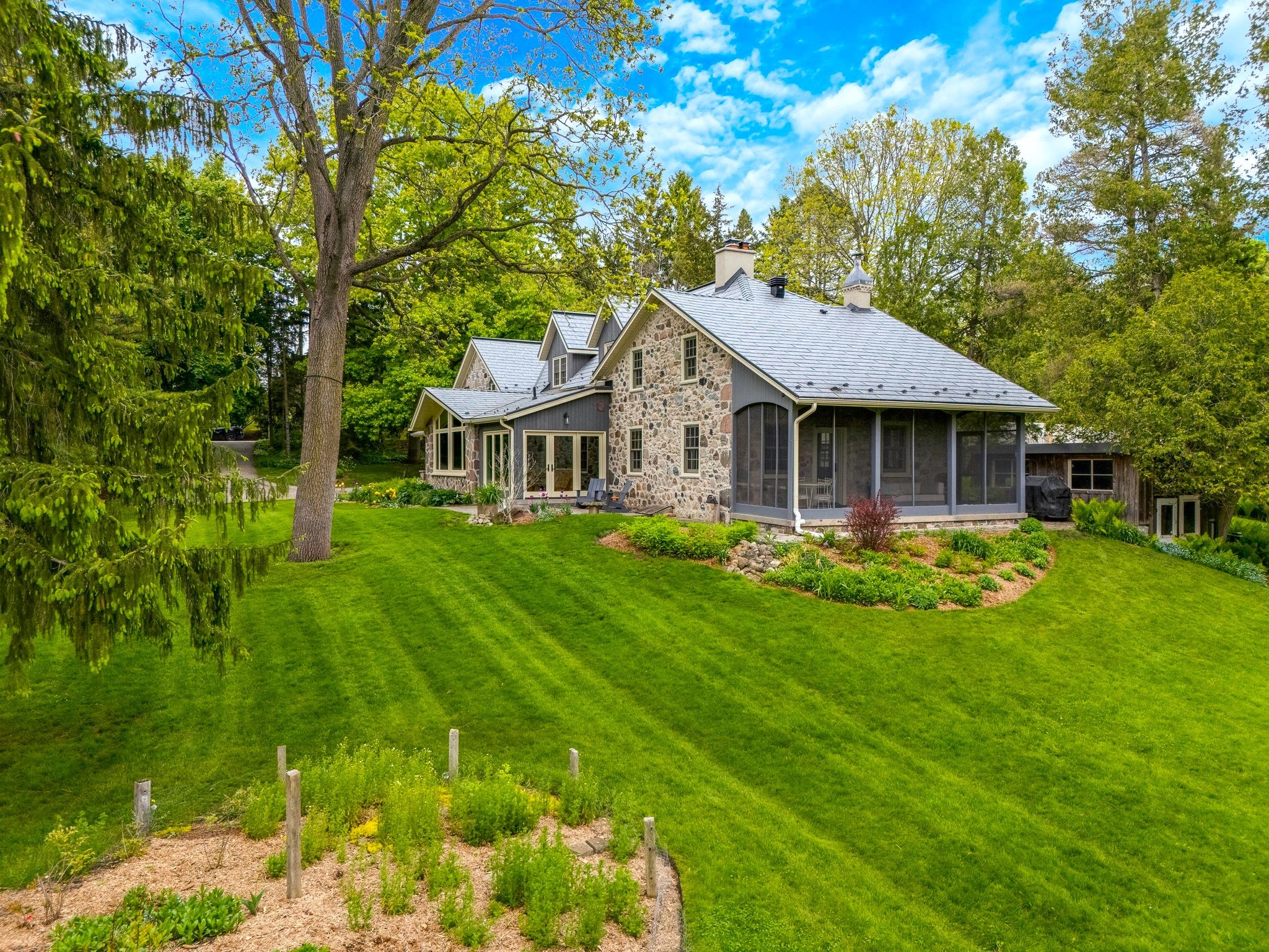 A RARE PIECE OF HISTORY MEETS MODERN COMFORT WITH UNMATCHED AMENITIES. Welcome to one of the regions original stone homes-an enchanting fusion of old-world charm and modern convenience, set on just under an acre of lush, private grounds. Nestled within The Kirksway, an 18-acre community of shared land, this remarkable property offers not only over 3,700sqft of living space but also access to exclusive amenities: scenic walking trails, a tennis court, a serene swimming pond, and a private beach-a lifestyle immersed in nature. This 4-bedroom, 3-bathroom residence tells a story of timeless craftsmanship and thoughtful updates. Mature trees line the property, offering a natural canopy and sense of tranquility from the moment you arrive. Inside, history lives in the details-exposed stone walls, warm wood finishes, and a stunning teak-walled family room that radiates character. Natural light flows through expansive windows, highlighting each rooms unique personality. The sunroom, with panoramic views of the grounds, invites you to sip your morning coffee or entertain guests in style. Just steps away stands the original smoke-house a charming nod to the past, now transformed into a workshop, art studio, or the ultimate retreat. Set on .96 acres, there's room to dream: build a garage, design a pool, or simply enjoy the peaceful seclusion. Major renovations between 20162025 include a custom stone addition, new vaulted roofline, metal shingles (2022), insulation, electrical, plumbing, and heating overhauls. Noteworthy features: ductless cooling (2020), new boiler (2021), windows/doors (2017 & 2025), 200AMP panel, on-demand water heater, UV filter and charcoal filter, water softener, and iron filter. This is more than a home-its a legacy, a lifestyle, and a rare opportunity to own a piece of history in a truly one-of-a-kind setting.