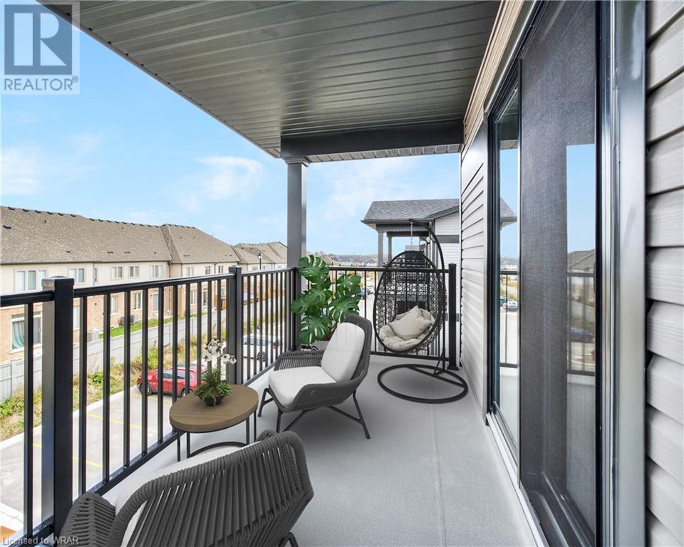 Fantastic Fusion Home - WELCOME TO 28 OAT LANE! Introducing this new home! This sunlit, brand-new, never-occupied 'Cobalt' end-unit townhome offers 2 bedrooms, 2.5 baths, 2 balconies, and over 1,300 SQ FT of living space. Plus, ample visitor parking ensures convenience! Let’s discover why you’ll want to make this house your home! #4 OPEN CONCEPT LIVING - The spacious living room and kitchen are the heart of this home, flooded with natural light and offering a walkout to a generous 24-foot balcony, which is ideal for relaxation and entertaining. You’ll enjoy stainless steel appliances, big bright windows, and a convenient powder room. #3 BEDROOMS & BATHS - Upstairs you’ll find two bedrooms. The primary suite offers luxury with a 3-piece ensuite with spacious glass shower, a walk-in closet, and an additional private balcony. The second bedroom is generously sized, and there's a 4-piece main bathroom with a shower/tub combo.#2 IN-SUITE LAUNDRY - This second floor convenience saves time and energy! #1 LOCATION - This fantastic home is situated in the mature and prestigious neighbourhood of Huron. With an exceptional location, you're just minutes away from Highway 401, Conestoga College, schools, Fairview Park Mall, shopping centre's, public transit, walking trails, and the scenic Huron Natural Area. (some photos area virtually staged) (id:22211)