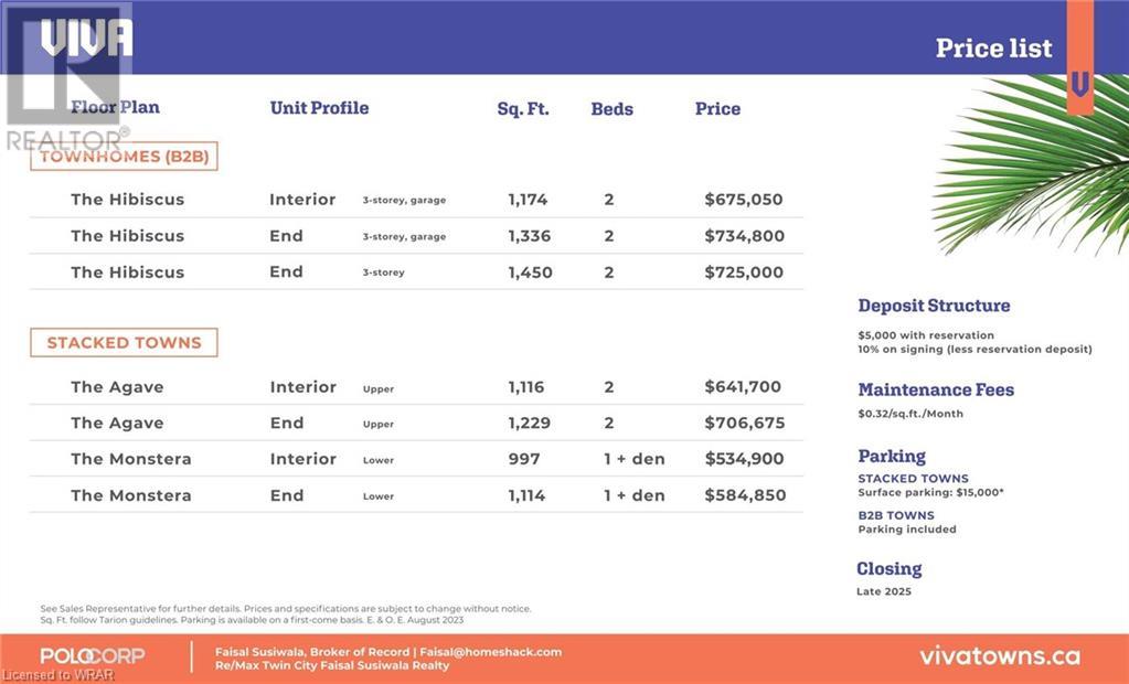 VIVA–THE BRIGHTEST ADDITION TO DOWNTOWN KITCHENER. In this exclusive community located on Mill Street near downtown Kitchener, life at Viva offers residents the perfect blend of nature, neighbourhood & nightlife. Step outside your doors at Viva and hit the Iron Horse Trail. Walk, run, bike, and stroll through connections to parks and open spaces, on and off-road cycling routes, the iON LRT systems, downtown Kitchener and several neighbourhoods. Victoria Park is also just steps away, with scenic surroundings, play and exercise equipment, a splash pad, and winter skating. Nestled in a professionally landscaped exterior, these modern stacked townhomes are finely crafted with unique layouts. The Musa interior studio model boasts an open concept layout – a kitchen with a breakfast bar, quartz countertops, ceramic and luxury vinyl plank flooring throughout, stainless steel appliances, and more. Offering 500 sqft of open living space including a sleeping alcove, 1 full bathroom and a balcony. Parking not available for this unit. Thrive in the heart of Kitchener where you can easily grab your favourite latte Uptown, catch up on errands, or head to your yoga class in the park. Relish in the best of both worlds with a bright and vibrant lifestyle in downtown Kitchener, while enjoying the quiet and calm of a mature neighbourhood. ONLY 10% DEPOSIT. CLOSING DECEMBER 2025. (id:22211)