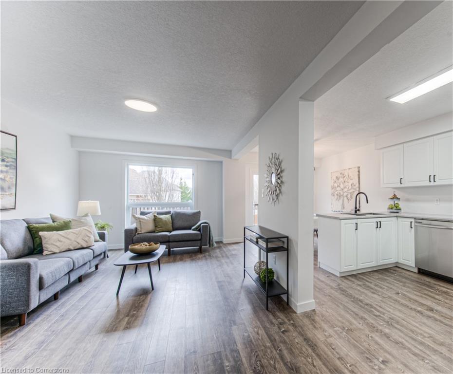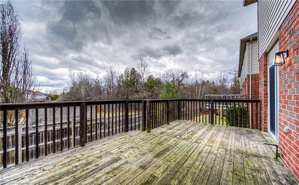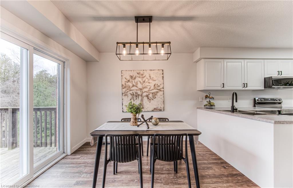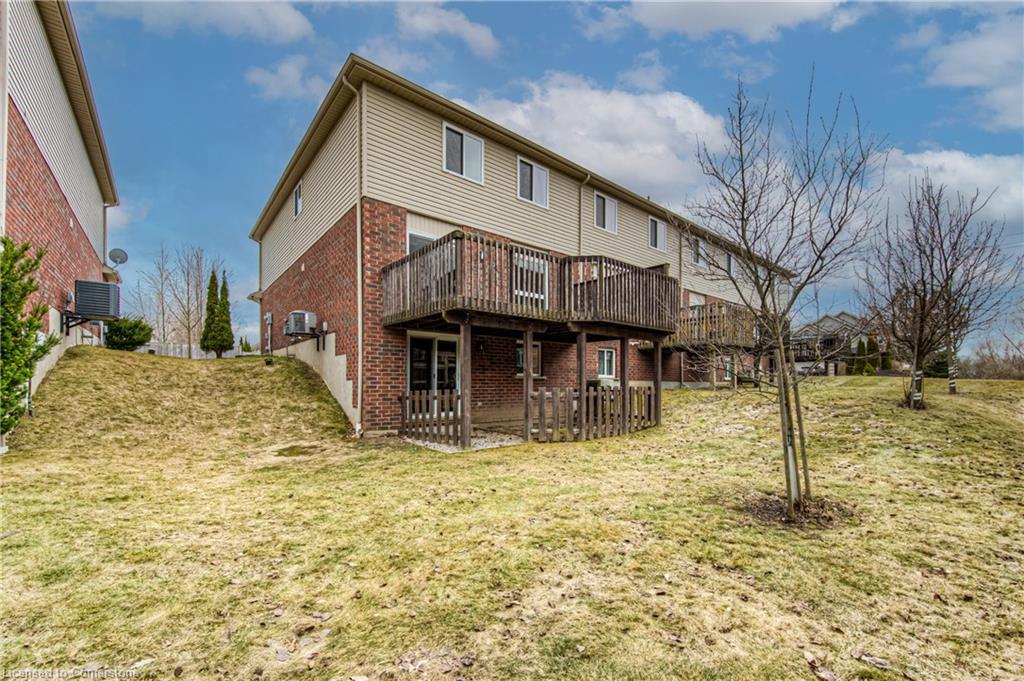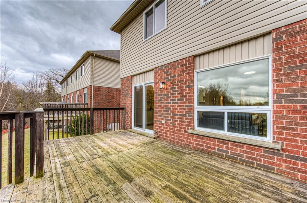 Step into this spacious end-unit townhouse and discover over 2200 sq ft of bright, airy living with an extra large deck, walk-out basement and parking for 2 vehicles. As you enter, natural light pours in, accentuating the open-plan design that seamlessly combines the kitchen/dining/living areas. Perfect for both everyday life and entertaining, the updated kitchen (2024) features a modern layout that keeps you connected with guests or family as you prepare meals. Slide open the patio doors, and you’re greeted by a generous double-width, raised deck – a private outdoor retreat ideal for morning coffee, or unwinding after a long day. Venture upstairs to find 3 generously-sized bedrooms, each offering comfort and versatility, with the impressive primary bedroom standing out for its expansive size and large walk-in closet. An upper landing nook, perfect for a cozy reading corner or a home office, adds to the functional flow of this home. The spacious 4-pc family bathroom provides dual access, allowing convenience for both the primary suite and other bedrooms. The walk-out basement, featuring a full-size window, offers an adaptable space that’s partially finished – ideal for a home gym, extra storage, or a future customization to suit your needs. Located in the serene Doon South area, this home sits next to Topper Woods and the Doon South Natural Area, offering instant access to beautiful trails for walking/biking. It’s a haven for outdoor enthusiasts, with Upper Canada/Homer Watson/Biehn Parks close by, featuring everything from skateparks and ball diamonds to playgrounds and scenic pathways. Enjoy easy access to schools and reach the 401 in minutes, making this an ideal base for commuters. Essential conveniences like grocery stores, restaurants, and other services are all under 5 minutes away, and Conestoga College is a mere 7-minute drive.