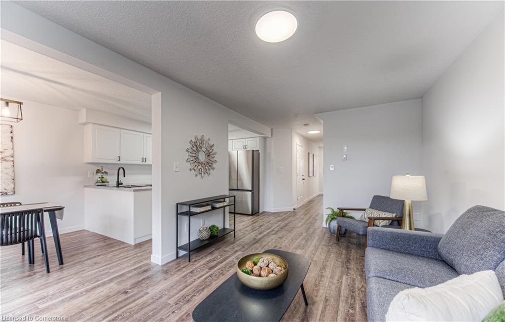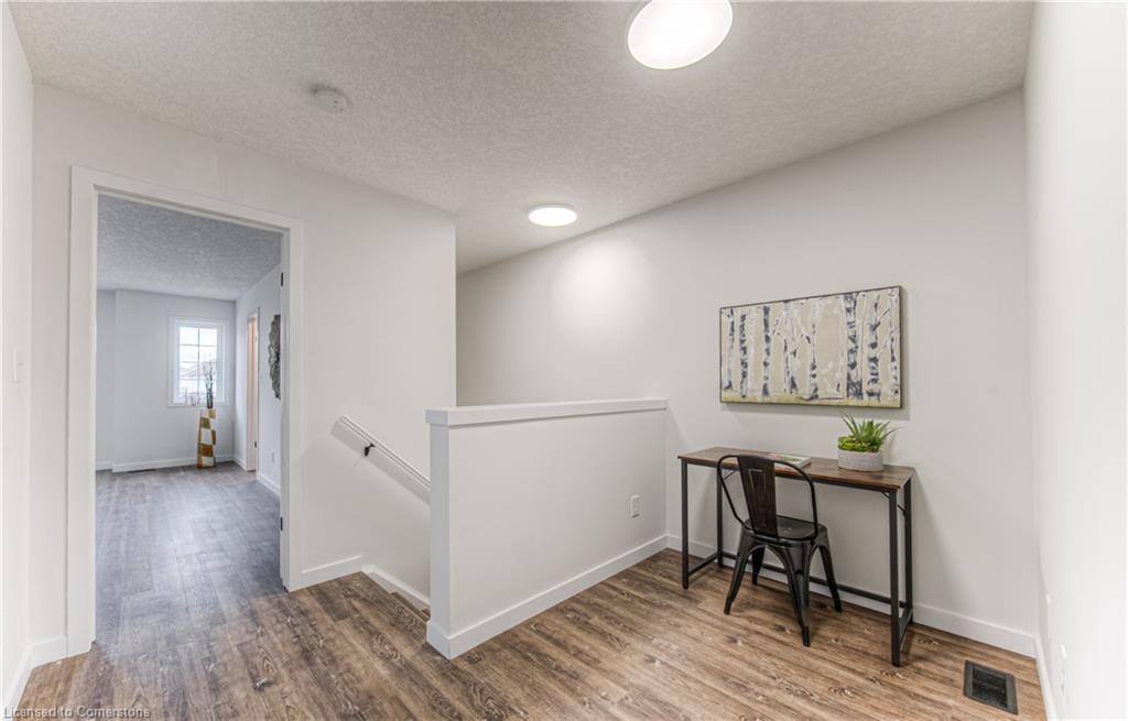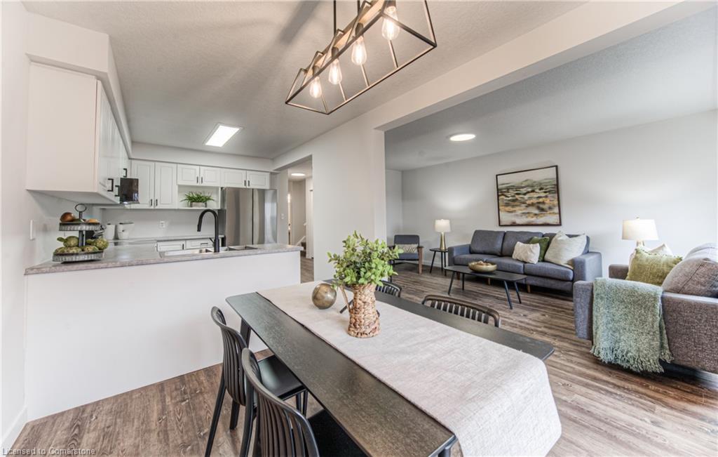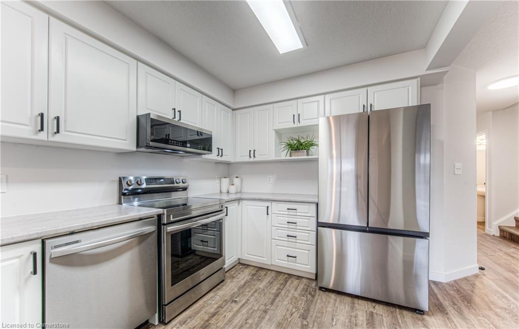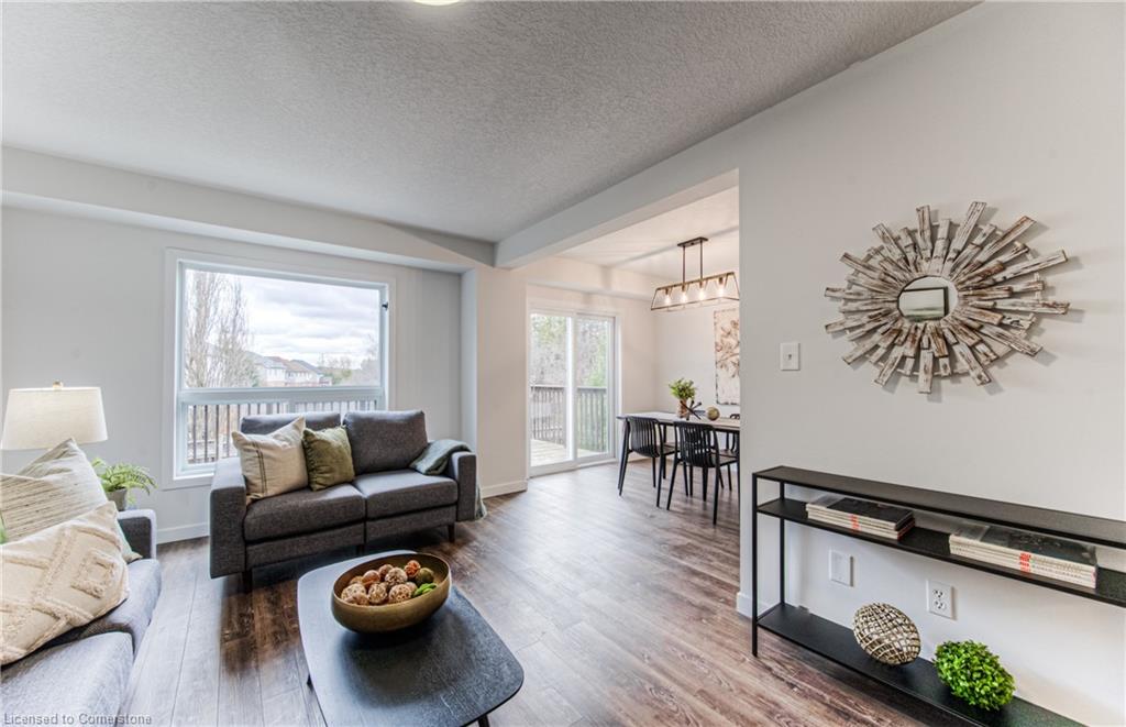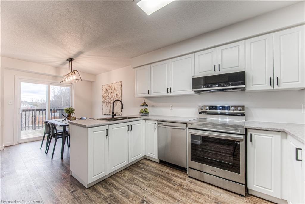 Step into this spacious end-unit townhouse and discover over 2200 sq ft of bright, airy living with an extra large deck, walk-out basement and parking for 2 vehicles. As you enter, natural light pours in, accentuating the open-plan design that seamlessly combines the kitchen/dining/living areas. Perfect for both everyday life and entertaining, the updated kitchen (2024) features a modern layout that keeps you connected with guests or family as you prepare meals. Slide open the patio doors, and you’re greeted by a generous double-width, raised deck – a private outdoor retreat ideal for morning coffee, or unwinding after a long day. Venture upstairs to find 3 generously-sized bedrooms, each offering comfort and versatility, with the impressive primary bedroom standing out for its expansive size and large walk-in closet. An upper landing nook, perfect for a cozy reading corner or a home office, adds to the functional flow of this home. The spacious 4-pc family bathroom provides dual access, allowing convenience for both the primary suite and other bedrooms. The walk-out basement, featuring a full-size window, offers an adaptable space that’s partially finished – ideal for a home gym, extra storage, or a future customization to suit your needs. Located in the serene Doon South area, this home sits next to Topper Woods and the Doon South Natural Area, offering instant access to beautiful trails for walking/biking. It’s a haven for outdoor enthusiasts, with Upper Canada/Homer Watson/Biehn Parks close by, featuring everything from skateparks and ball diamonds to playgrounds and scenic pathways. Enjoy easy access to schools and reach the 401 in minutes, making this an ideal base for commuters. Essential conveniences like grocery stores, restaurants, and other services are all under 5 minutes away, and Conestoga College is a mere 7-minute drive.