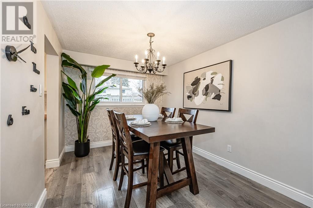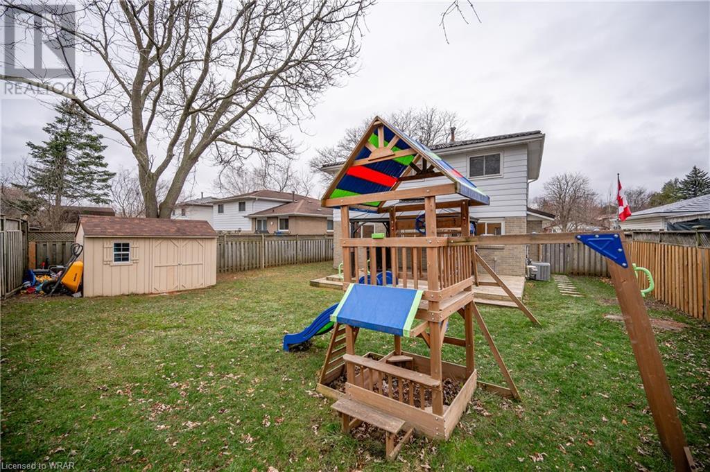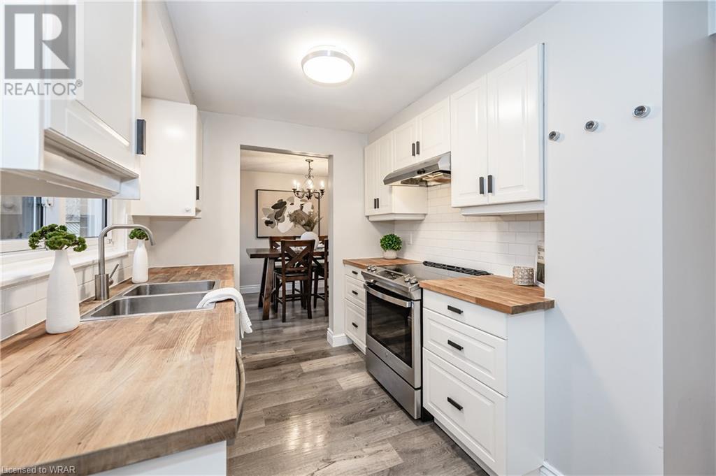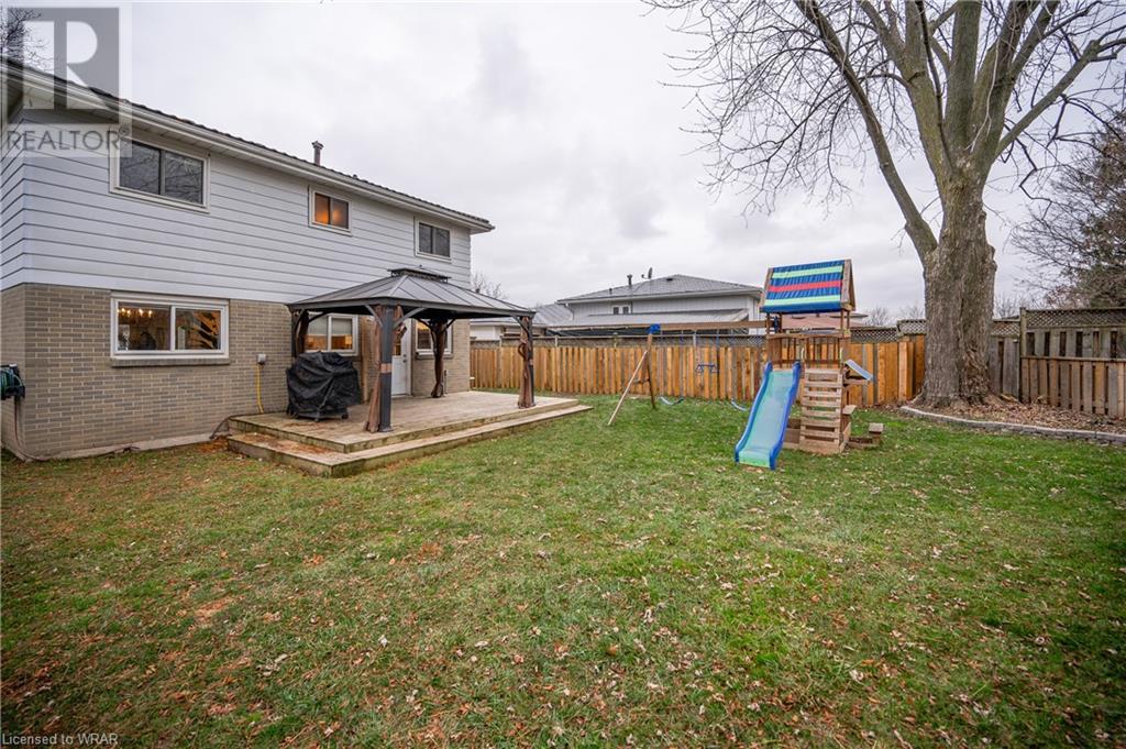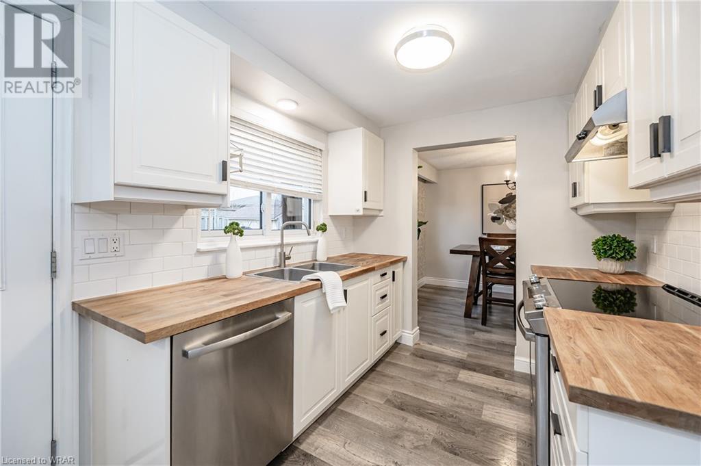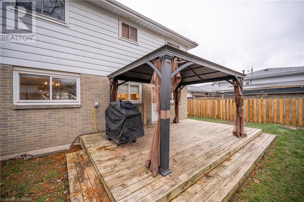 WELCOME to 56 Markwood Drive, a beautiful and well-maintained family home nestled in a quiet and desirable neighbourhood in Kitchener. Step into a warm and inviting living space featuring 4 bedrooms and 2 bathrooms. The updated kitchen is equipped with newer appliances, newly finished butcher block counter tops, and stylish cabinetry. Enjoy your private oasis in the backyard, complete with a deck with a GAS BBQ, gazebo, and garden shed. It's an ideal space for summer barbecues, family gatherings, or simply unwinding after a long day. 56 Markwood Drive is conveniently located near schools, parks, shopping centers, and HWY access to make commuting a breeze. Pride of ownership is evident throughout. The property has been meticulously maintained, ensuring a move-in-ready experience for the new owners. This is a GREAT OPPORTUNITY for first time homebuyers with ALL furniture being negotiable. Don't miss the opportunity to make this house your home. Reach out to schedule a private viewing! Furnace/AC(2019) Steel Roof(2021) Appliances(2021) Water Softener NEW (id:22211)