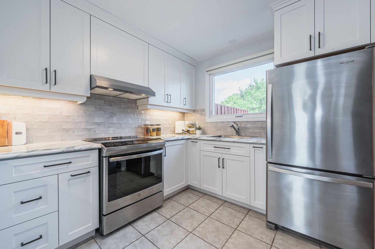 Welcome to 56 Obermeyer Drive, a beautiful Freehold Townhouse that has been renovated throughout, and features 3 Bedrooms, a finished Basement, and is located in the vibrant City of Kitchener. The Main Floor boasts a welcoming atmosphere with a Living Room, Dining Room with sliding doors to the Backyard, and a beautiful Kitchen with high-end stainless steel appliances. There is also a 2-pce Bathroom and Garage access on the Main Floor. Upstairs, you will find a large Primary Bedroom and two other generously sized Bedrooms, providing comfortable and private spaces for the entire family to relax. There is also a full 4-pce Bathroom and lots of closet space throughout. The finished Basement features a large Rec. Room which is perfect for those in need of additional living space. Outside, the property features a Backyard oasis with a Deck and a Patio. Enjoy proximity to shopping centres, restaurants, parks, schools, and Chicopee Ski & Summer Resort.Updates to this Home include: Main Floor renovation (2019), Furnace (2015) - yearly maintenance, Hot Water Heater (2018), Front Door (2019), Windows (2020), Roof (2020), and so much more!
