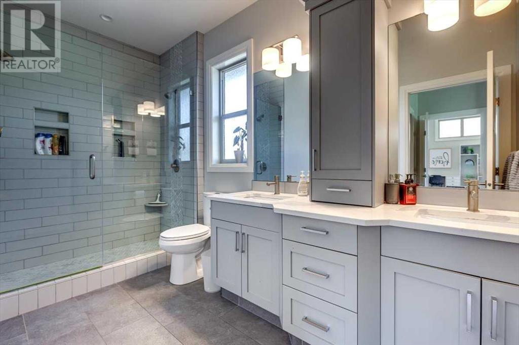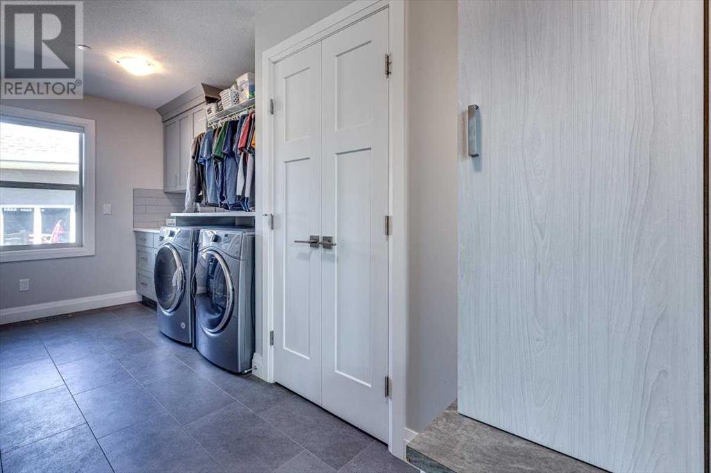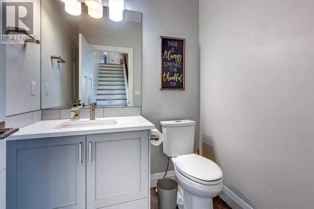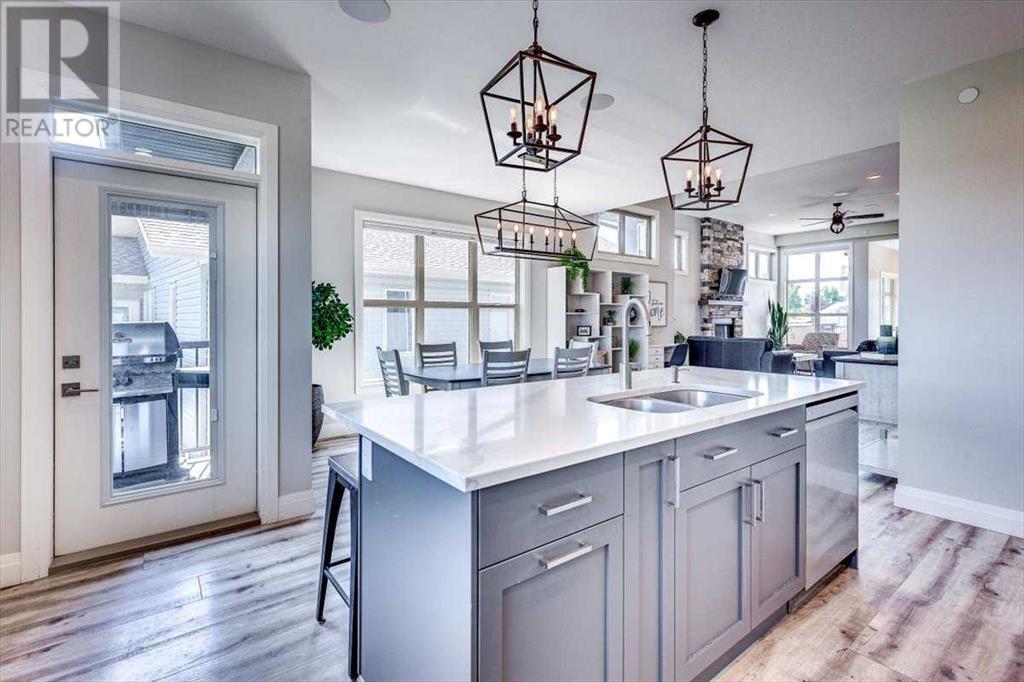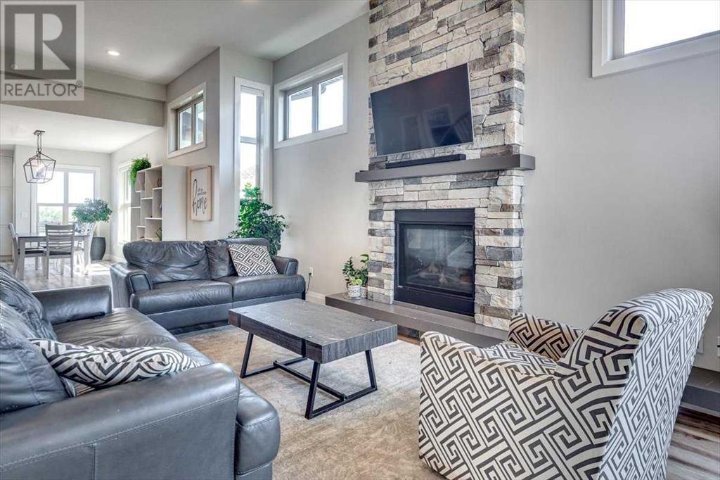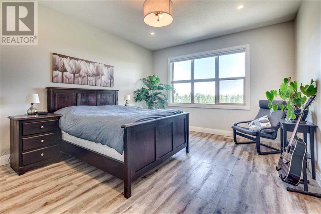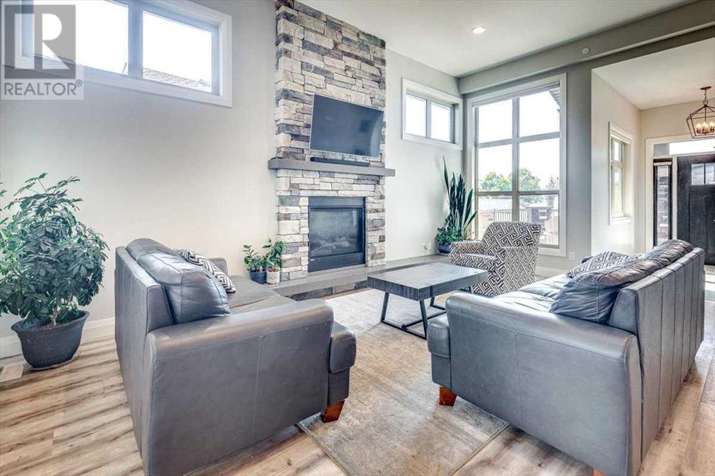 As you approach 1 Meadow Close, you'll notice a manicured front yard, large driveway with a permanent basketball hoop, and an extended ultra-organized garage! It includes a custom woodworking area, tv, sink, and exemplary storage for all of your sporting goods. From the garage you'll be able to enter a convenient mudroom/laundry room with 6 lockers with shelving below, two storage closets, and laundry basket shelving and hanging racks. The main entrance leads into a spacious foyer and an expansive main floor. You'll be welcomed into this home with cathedral ceilings and inviting great room with a floor to ceiling, stone, gas fireplace. The kitchen boasts a large island, top of the line stainless steel appliances, beautiful quartz countertops, a pot filler, a full-lite door leading to the upper no-maintenance deck, and a massive window overlooking green space and offering gorgeous sunrise views all year around. The main floor also features the primary bedroom suite with a large walk-in closet, dual sink vanity, double headed tile shower, and more than enough floor space for a king sized bed and a sitting area. The main floor also features a comfortable guest half bath. An open railing staircase leads to an upper floor with a spacious landing that overlooks the main floor, two storage closets, two spacious bedrooms, and a double vanity 4 piece bath. Downstairs you'll find a bright open area fit for a large entertainment unit and gaming area that's equipped with a wet bar. The open family space features a door out to the lower covered patio area and hot tub, where you can enjoy starry skies as you soak in the warmth. Three bedrooms and a third full bath round out the basement. In addition to the incredible interior of this home, the backyard is both practical and pristine. Quality built wooden stairs provide easy access along the house towards the front of the property. Aside from the large covered concrete patio and open area with the hot tub, there are several attractive garden boxes, an upper grassy area, immaculate perennial gardens with natural stone steps leading to the yard's lower tier, retaining wall and a large fire pit and sitting area. The luscious grass is perfect to play on and a low-maintenance space for your trampoline. The backyard is enclosed with vinyl fencing that leads out to the open grassy area where you can access the community garden and Essex Park's baseball diamond and playground. This is easily one of the nicest properties available in Lacombe! (id:22211)