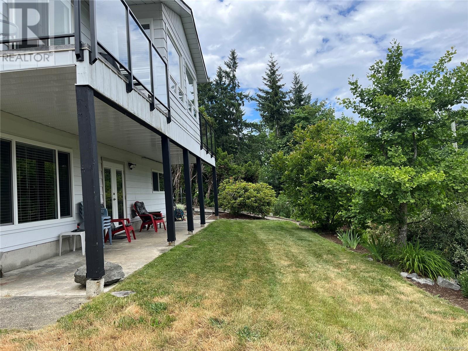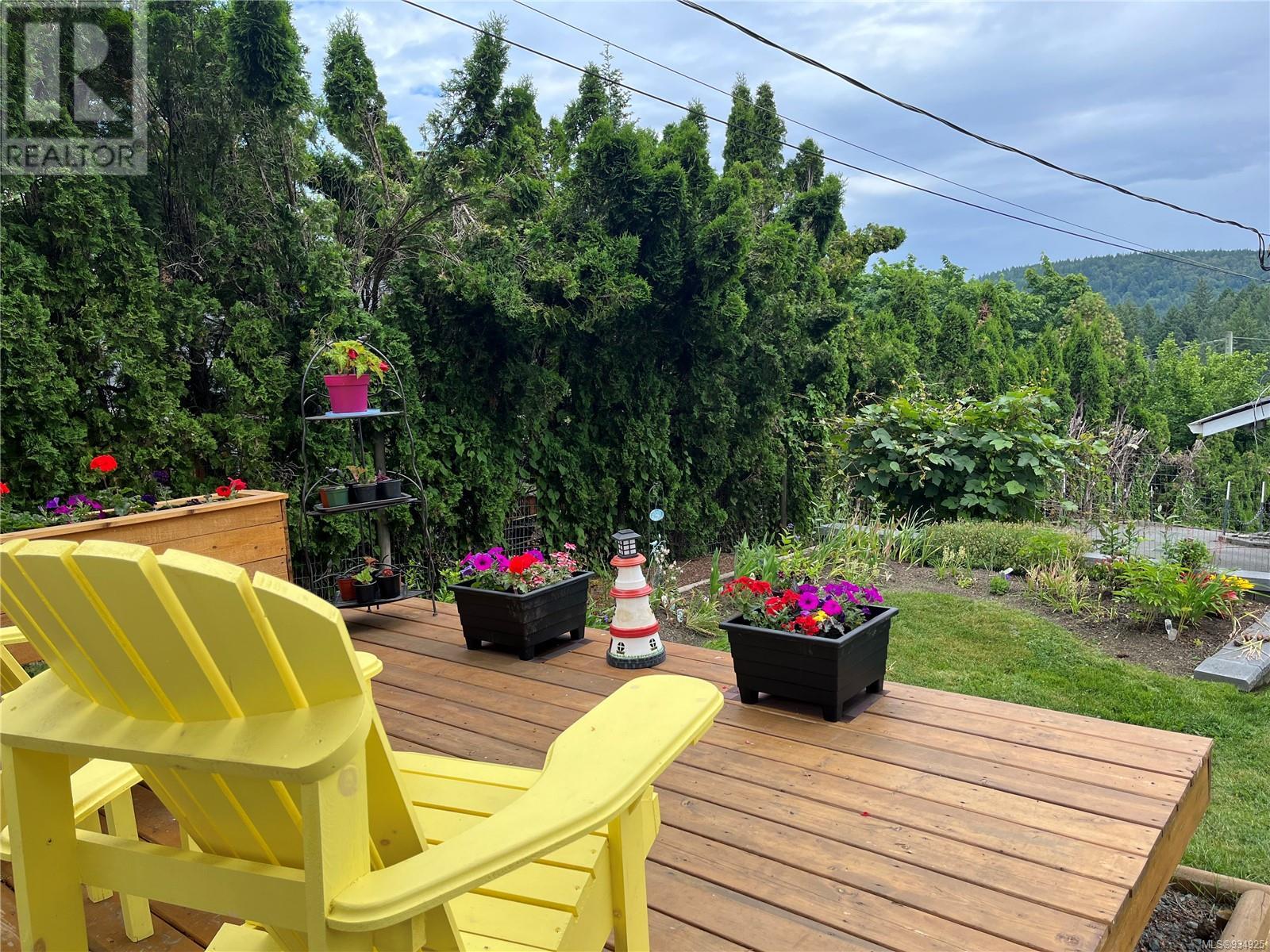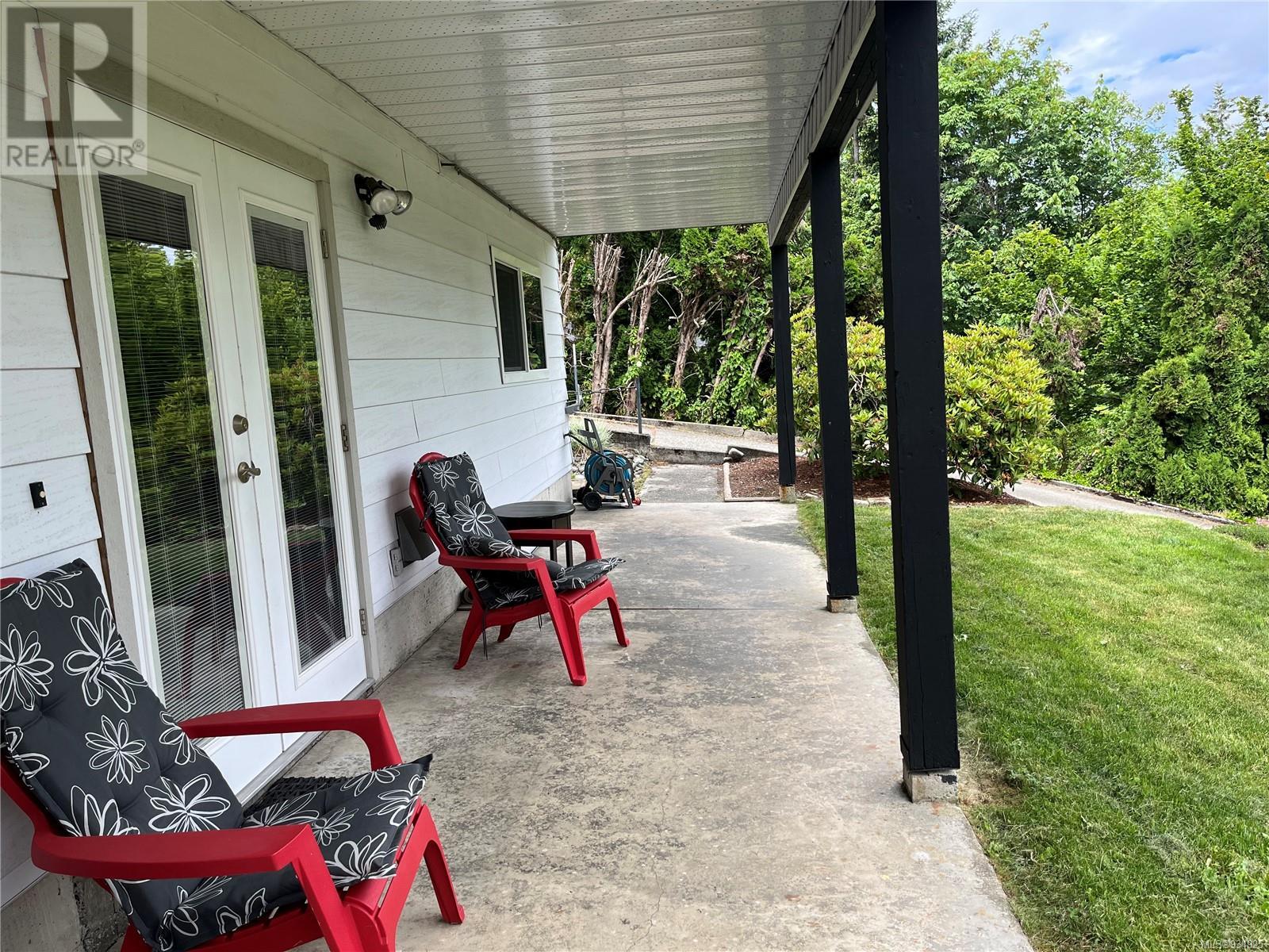 A wonderful opportunity for a couple or a whole family to share space, while also enjoying each other's company! This 4 bedroom, 2 bathroom home offers main floor living with a primary bedroom plus 2 additional bedrooms, along with a large kitchen, formal dining room, living room and two decks. The spacious main bathroom provides a heat lamp as well as a door directly accessing the primary bedroom. This roomy primary offers his & hers closets and its own balcony. At the lower level you will find another bedroom, big rec room, bathroom, laundry and a bonus second kitchen. Double French doors with in-glass blinds open out to the covered back patio. Not only does this home offer views out to nature & trees from an ideal layout inside, but a private oasis awaits you outside. Enjoy your morning coffee at one of multiple outdoor seating areas to take in your stunning and established landscaping. This home features a bright country kitchen, vaulted living room ceiling over vinyl plank flooring, Boeing shower tub surrounds in both washrooms, vinyl thermal windows, Lifebreath Heat Recovery Ventilator, new Duradeck & glass railings from 2021 & as well as 2015 roof. Close enough that you can easily walk to shopping, schools, and recreation, but quiet enough that you can enjoy your large property in peace. A double carport, ample parking locations and a drive through the property driveway make excellent access to this awesome home. The pergola covered seating area directly outside the kitchen is the spot to relax later in the day. Would you like to maintain some established low maintenance flower gardens? A fully fenced back section of yard with sitting deck presents a offers bird sanctuary. This property provides a bartlett pear, magnolia and lilac trees. All measurements approx. Pls verify if important. A quick leisurely walk to parks, Transfer Beach, marinas & all of Ladysmith’s downtown, and just minutes to the airport & ferries. Call to view this move-in ready home today! (id:22211)