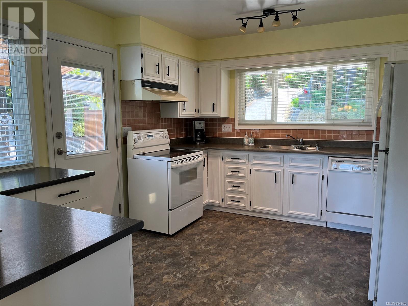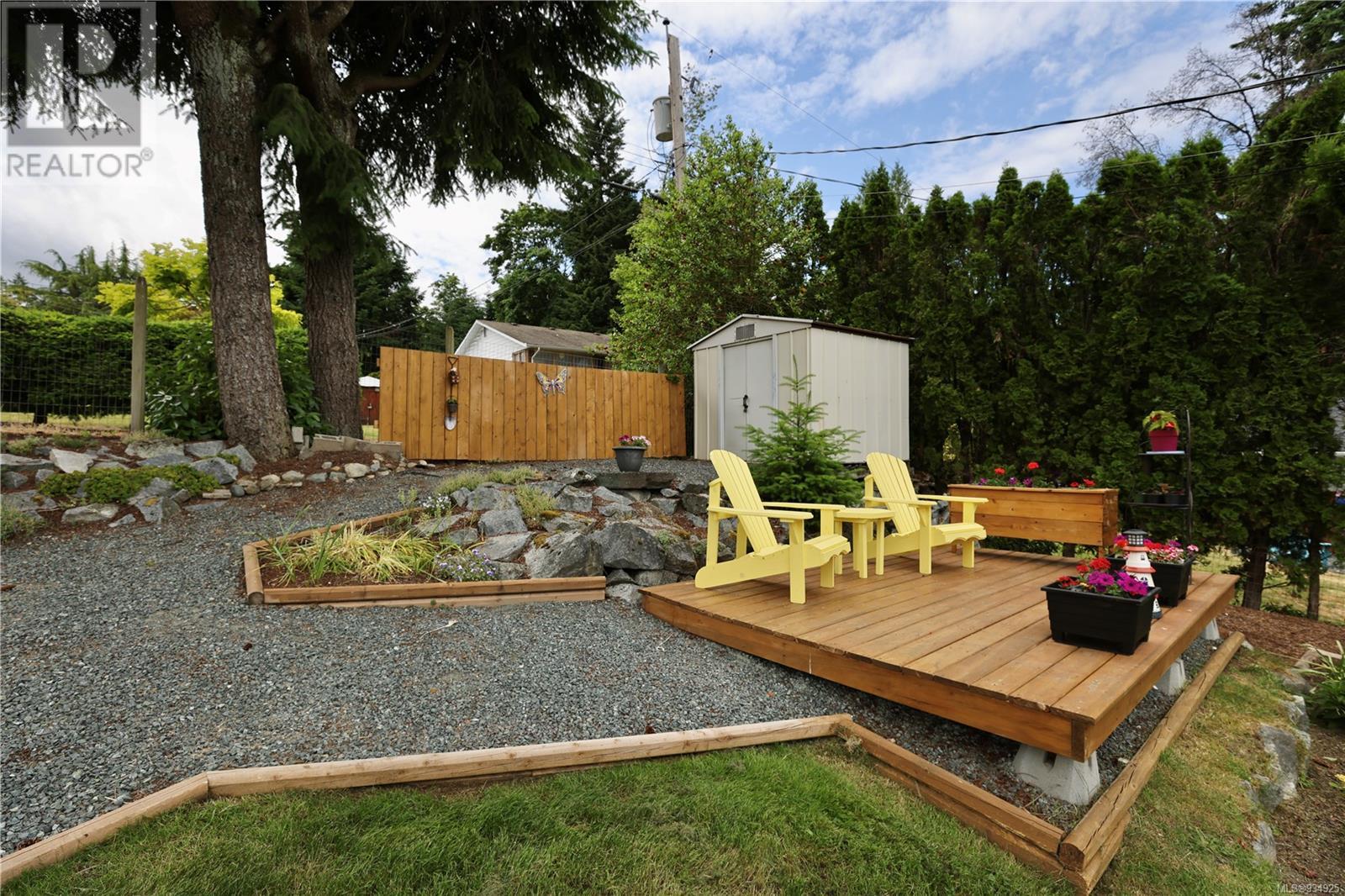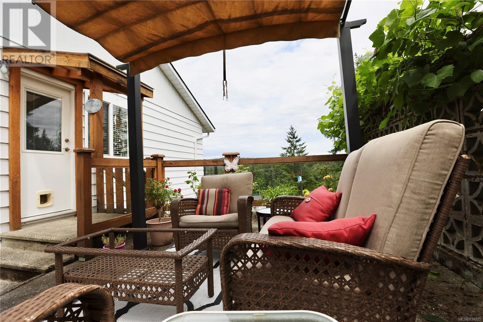 A wonderful opportunity for a couple or a whole family to share space, while also enjoying each other's company! This 4 bedroom, 2 bathroom home offers main floor living with a primary bedroom plus 2 additional bedrooms, along with a large kitchen, formal dining room, living room and two decks. The spacious main bathroom provides a heat lamp as well as a door directly accessing the primary bedroom. This roomy primary offers his & hers closets and its own balcony. At the lower level you will find another bedroom, big rec room, bathroom, laundry and a bonus second kitchen. Double French doors with in-glass blinds open out to the covered back patio. Not only does this home offer views out to nature & trees from an ideal layout inside, but a private oasis awaits you outside. Enjoy your morning coffee at one of multiple outdoor seating areas to take in your stunning and established landscaping. This home features a bright country kitchen, vaulted living room ceiling over vinyl plank flooring, Boeing shower tub surrounds in both washrooms, vinyl thermal windows, Lifebreath Heat Recovery Ventilator, new Duradeck & glass railings from 2021 & as well as 2015 roof. Close enough that you can easily walk to shopping, schools, and recreation, but quiet enough that you can enjoy your large property in peace. A double carport, ample parking locations and a drive through the property driveway make excellent access to this awesome home. The pergola covered seating area directly outside the kitchen is the spot to relax later in the day. Would you like to maintain some established low maintenance flower gardens? A fully fenced back section of yard with sitting deck presents a offers bird sanctuary. This property provides a bartlett pear, magnolia and lilac trees. All measurements approx. Pls verify if important. A quick leisurely walk to parks, Transfer Beach, marinas & all of Ladysmith’s downtown, and just minutes to the airport & ferries. Call to view this move-in ready home today! (id:22211)
