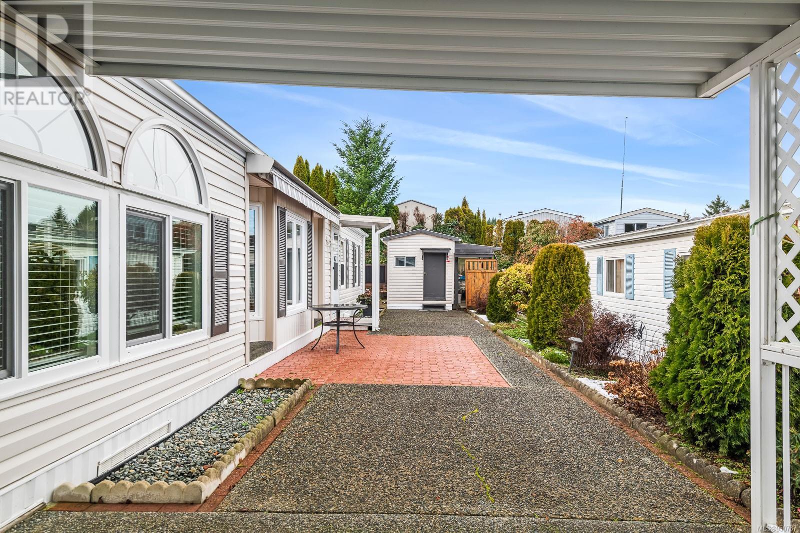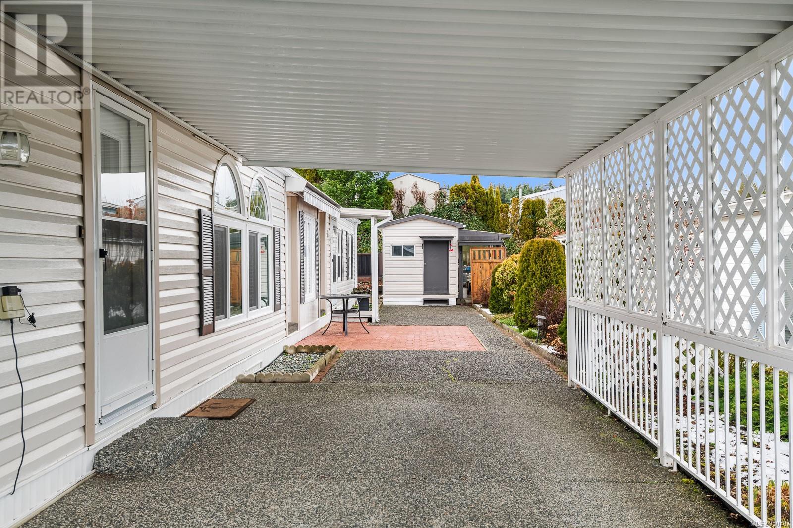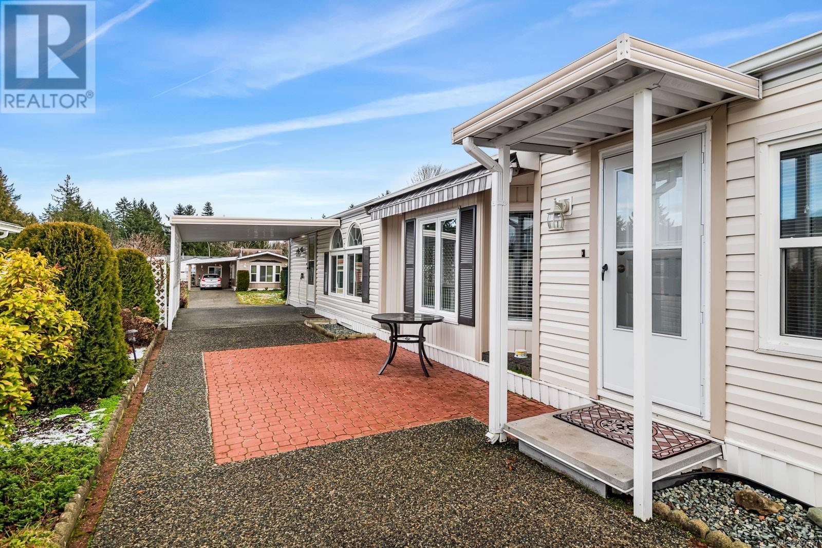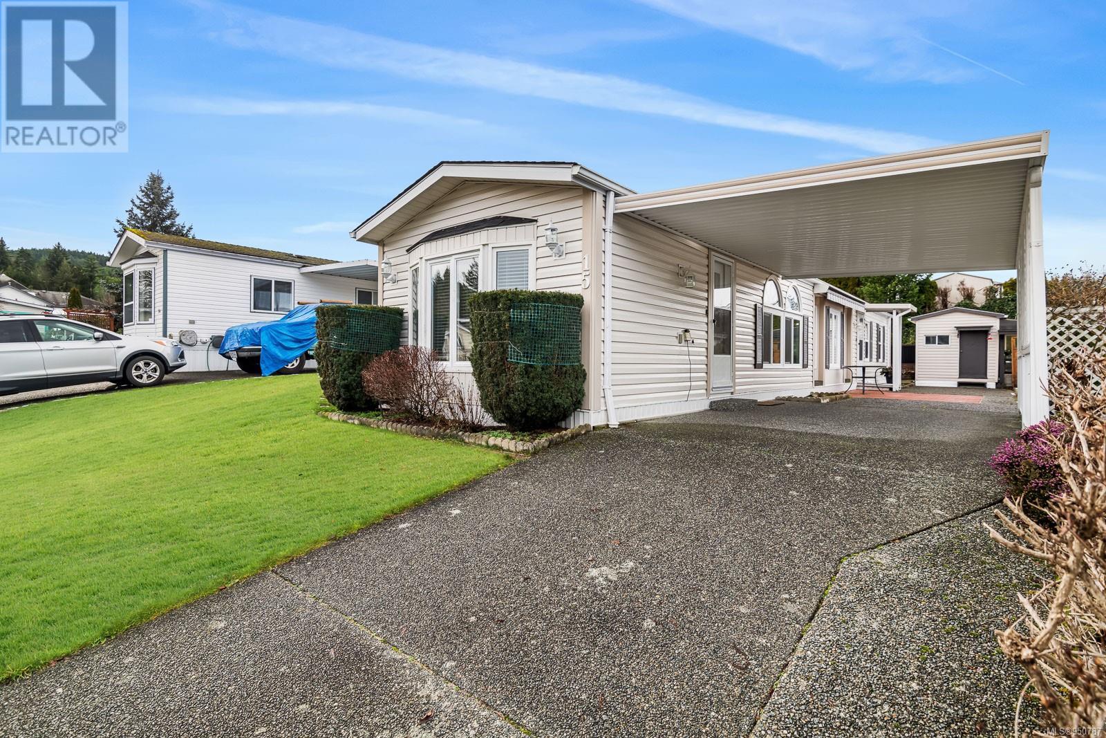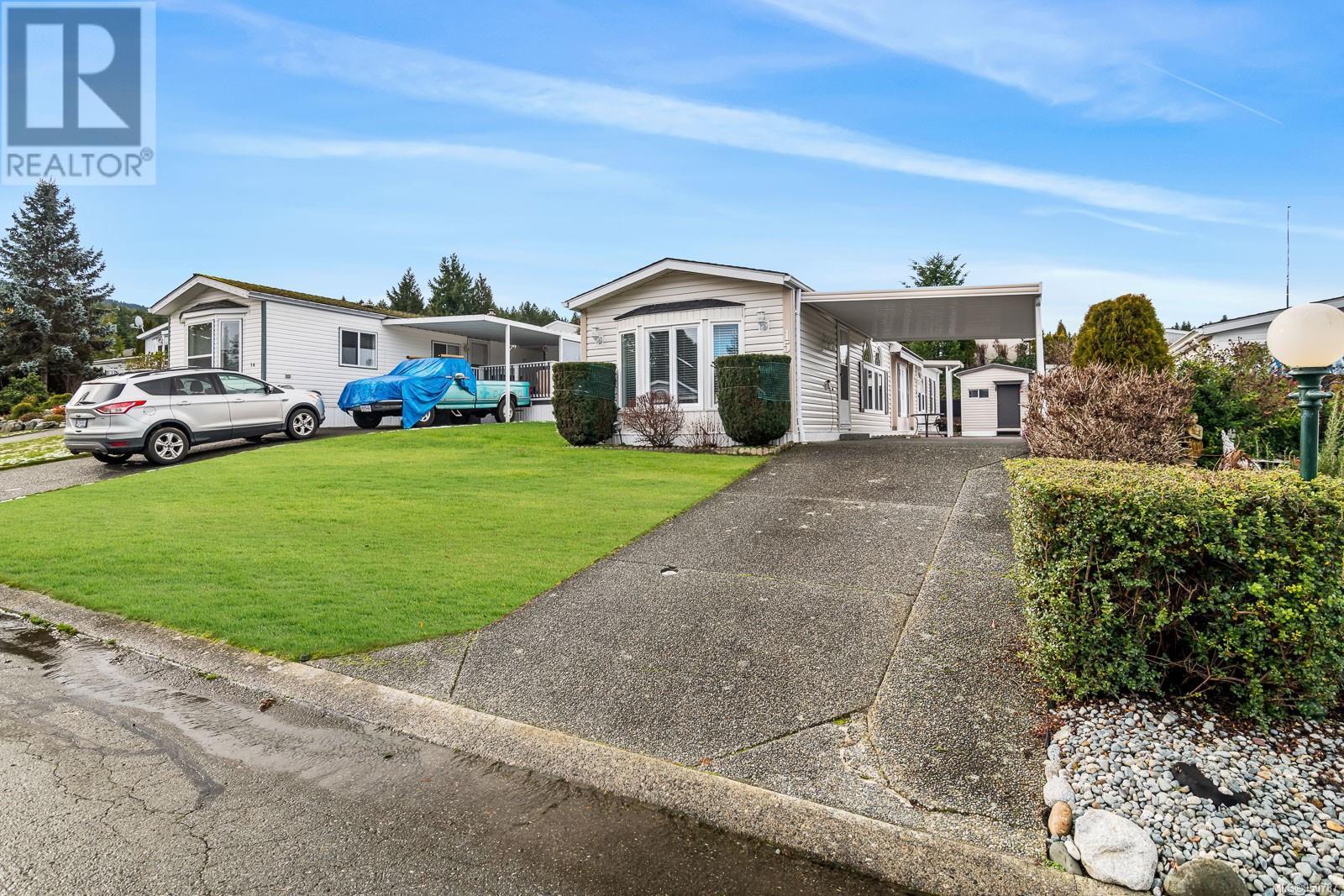 Easy living awaits you in this immaculate 2-bed, 2-bath home! This modern feel, open-concept design home floods the interior w/ natural light. Primary bedroom is very private, & features large closets, & a 5-pc ensuite. Spacious kitchen & dining area is open to the bright living room. Gas fireplace & furnace makes for low cost, economical utilities. Second bedroom is located opposite end to the primary, ensuring total privacy. The laundry room is conveniently located next to the kitchen, w/ an ample pantry & storage. Step outside to discover a well-maintained, low-maintenance yard featuring paved patio w/ awning for those sunny evening gatherings, covered carport, & detached shed for extra storage! This home truly is the complete package for comfortable, modern living in Ladysmith. One dog (15kg or less) allowed w/ park approval. 2 cats may be permitted unless there is also a dog, in which case only one cat may be allowed. (Cats must be indoor only). Don't miss out on your ideal home! (id:22211)