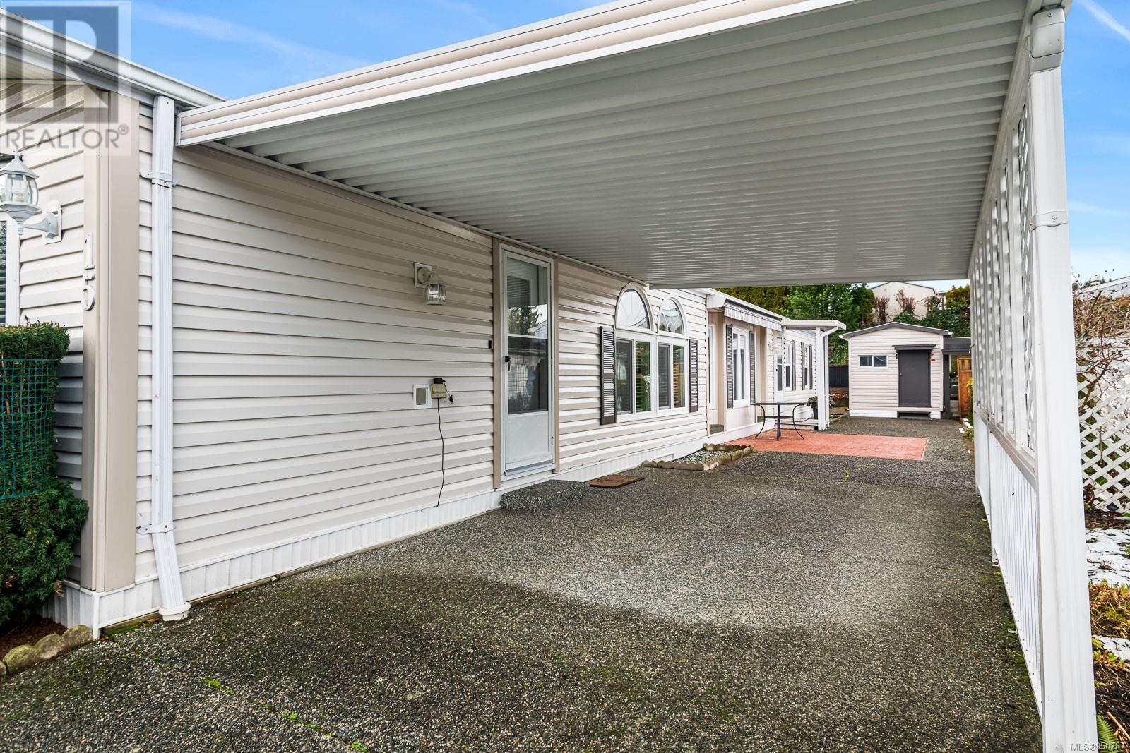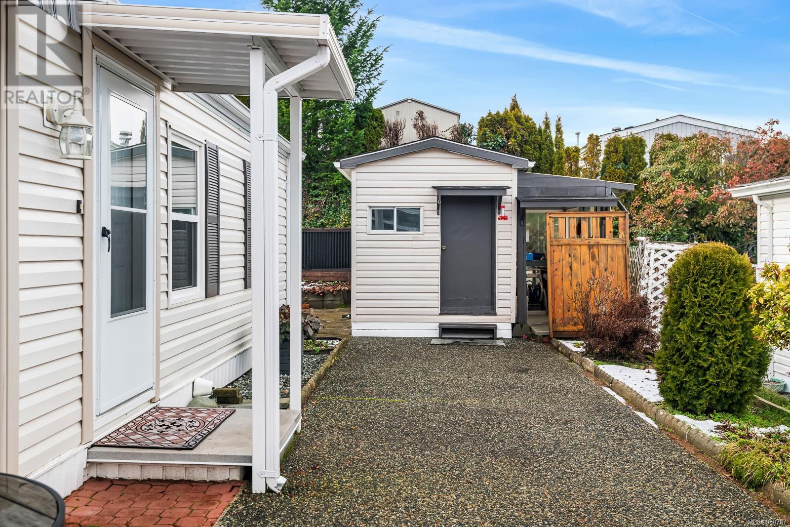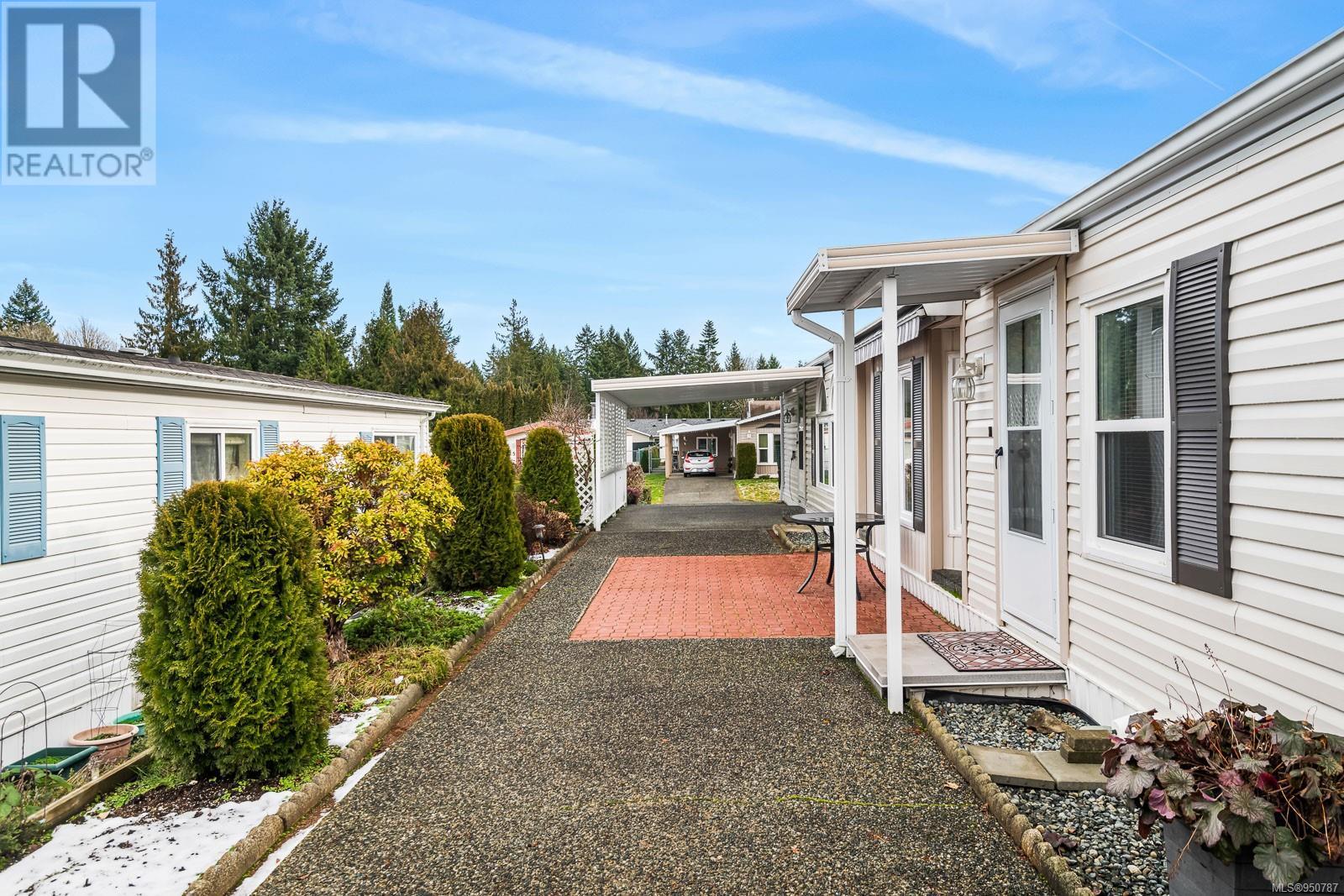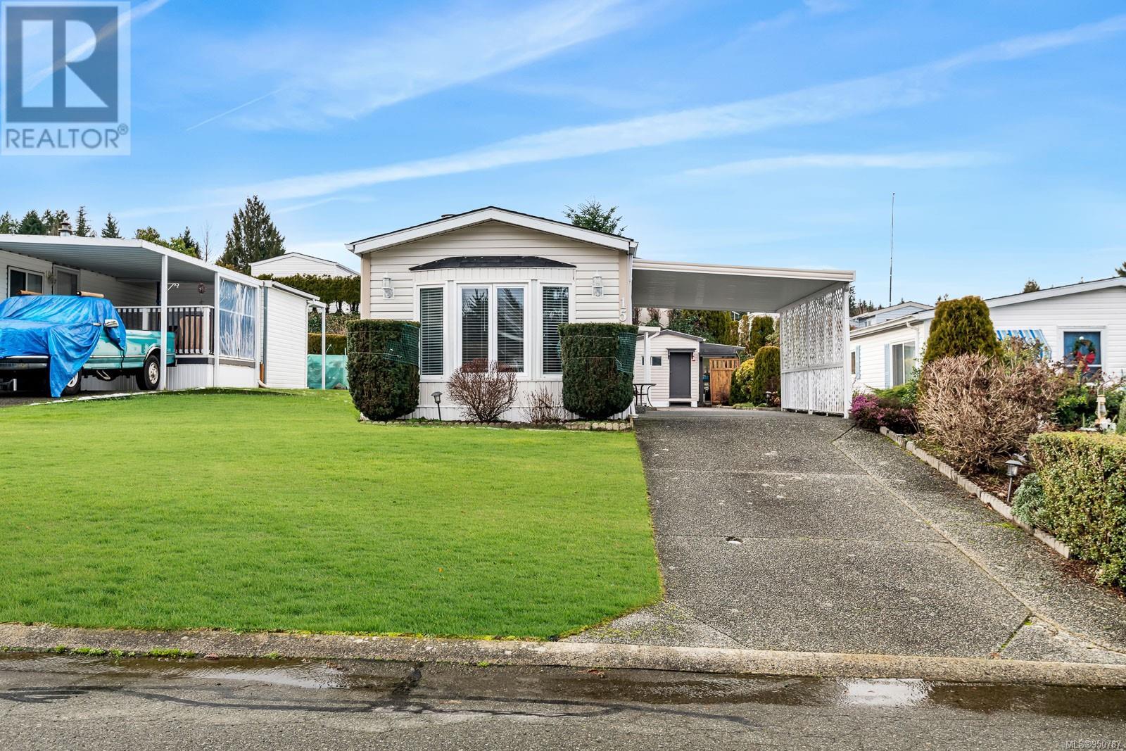 Easy living awaits you in this immaculate 2-bed, 2-bath home! This modern feel, open-concept design home floods the interior w/ natural light. Primary bedroom is very private, & features large closets, & a 5-pc ensuite. Spacious kitchen & dining area is open to the bright living room. Gas fireplace & furnace makes for low cost, economical utilities. Second bedroom is located opposite end to the primary, ensuring total privacy. The laundry room is conveniently located next to the kitchen, w/ an ample pantry & storage. Step outside to discover a well-maintained, low-maintenance yard featuring paved patio w/ awning for those sunny evening gatherings, covered carport, & detached shed for extra storage! This home truly is the complete package for comfortable, modern living in Ladysmith. One dog (15kg or less) allowed w/ park approval. 2 cats may be permitted unless there is also a dog, in which case only one cat may be allowed. (Cats must be indoor only). Don't miss out on your ideal home! (id:22211)