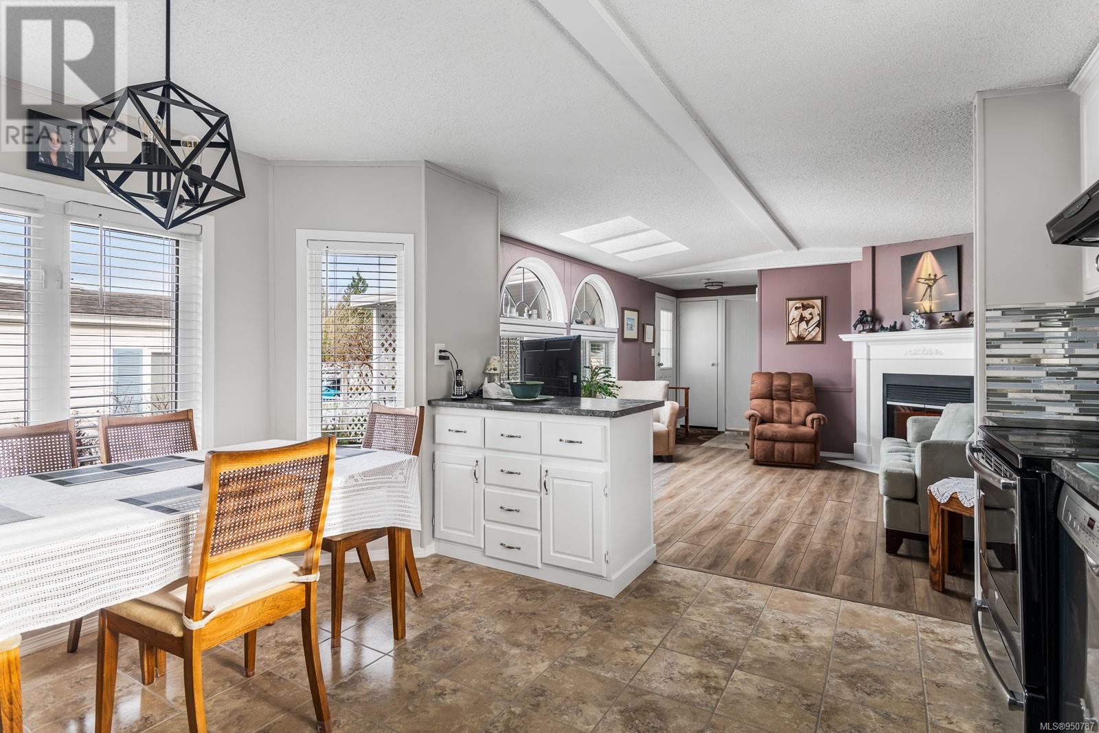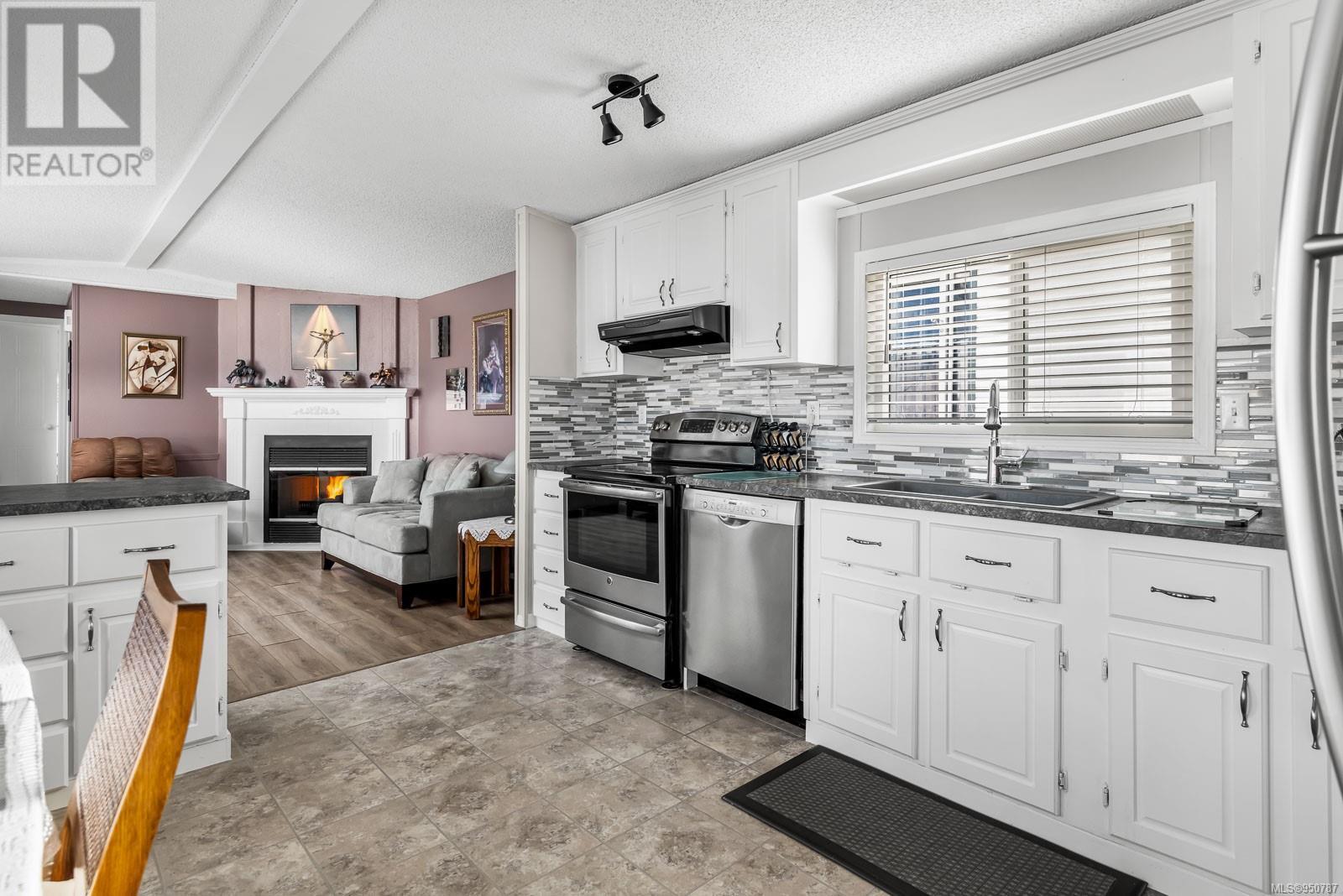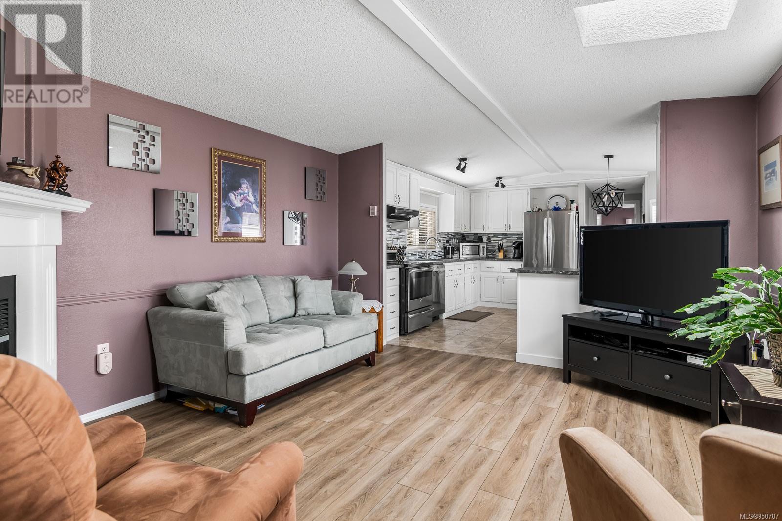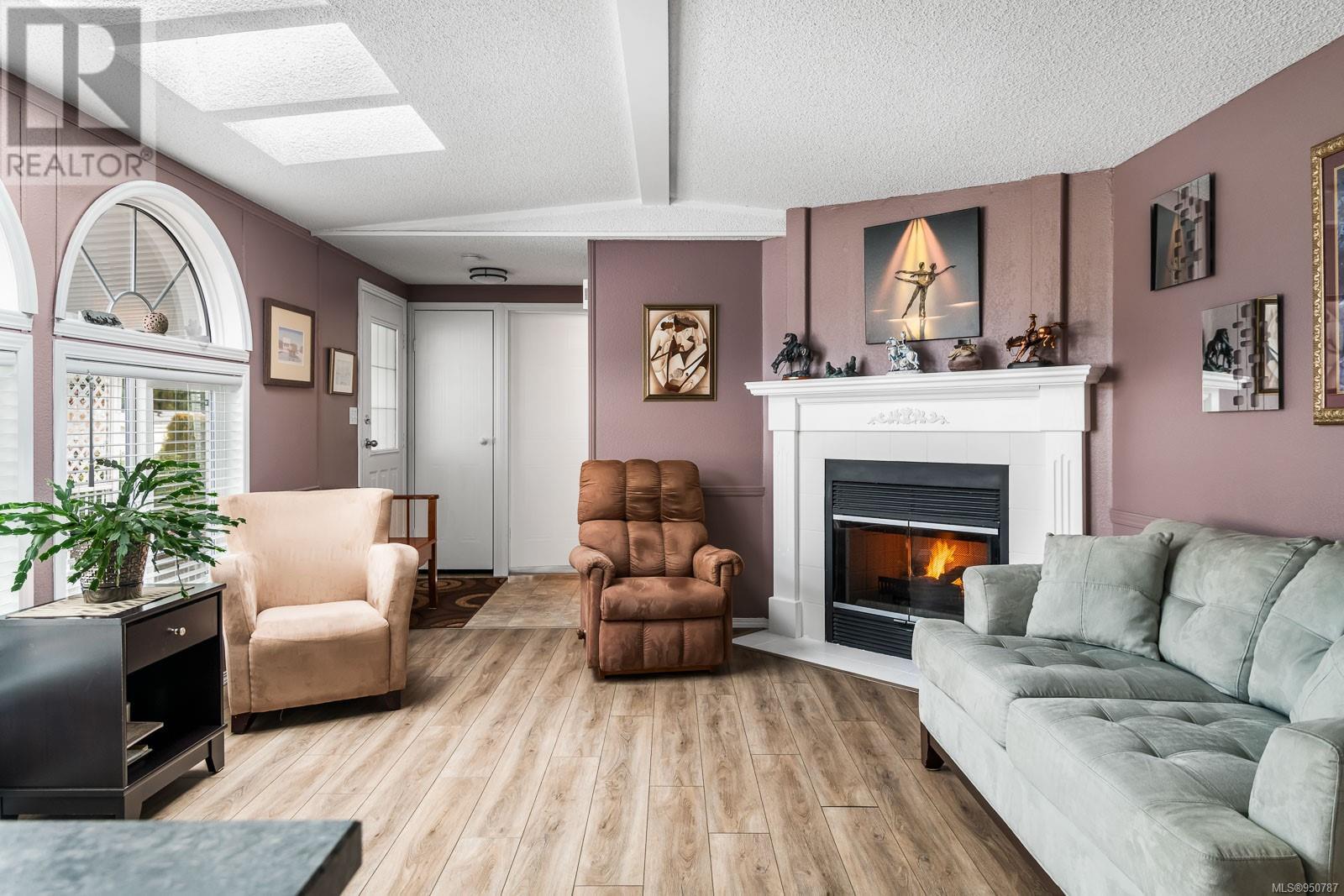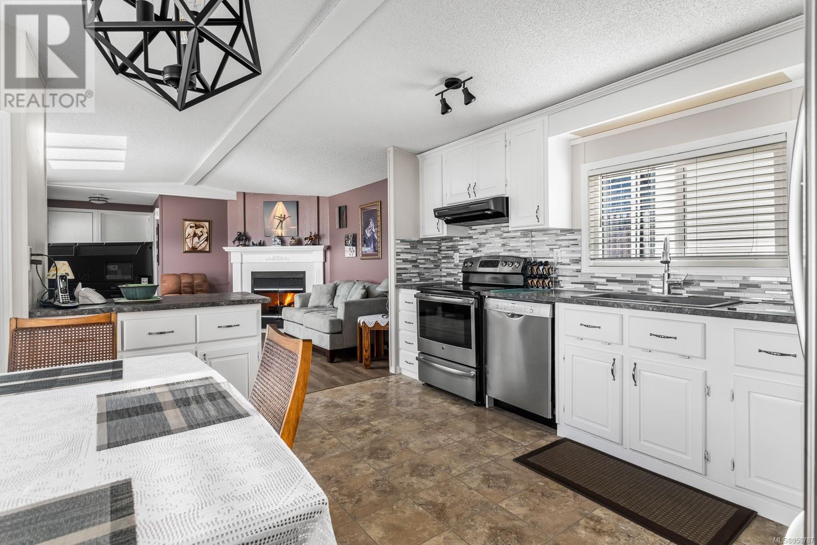 Easy living awaits you in this immaculate 2-bed, 2-bath home! This modern feel, open-concept design home floods the interior w/ natural light. Primary bedroom is very private, & features large closets, & a 5-pc ensuite. Spacious kitchen & dining area is open to the bright living room. Gas fireplace & furnace makes for low cost, economical utilities. Second bedroom is located opposite end to the primary, ensuring total privacy. The laundry room is conveniently located next to the kitchen, w/ an ample pantry & storage. Step outside to discover a well-maintained, low-maintenance yard featuring paved patio w/ awning for those sunny evening gatherings, covered carport, & detached shed for extra storage! This home truly is the complete package for comfortable, modern living in Ladysmith. One dog (15kg or less) allowed w/ park approval. 2 cats may be permitted unless there is also a dog, in which case only one cat may be allowed. (Cats must be indoor only). Don't miss out on your ideal home! (id:22211)
