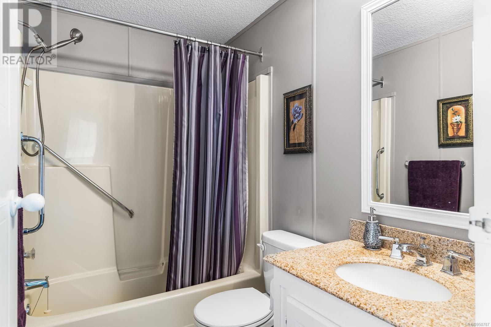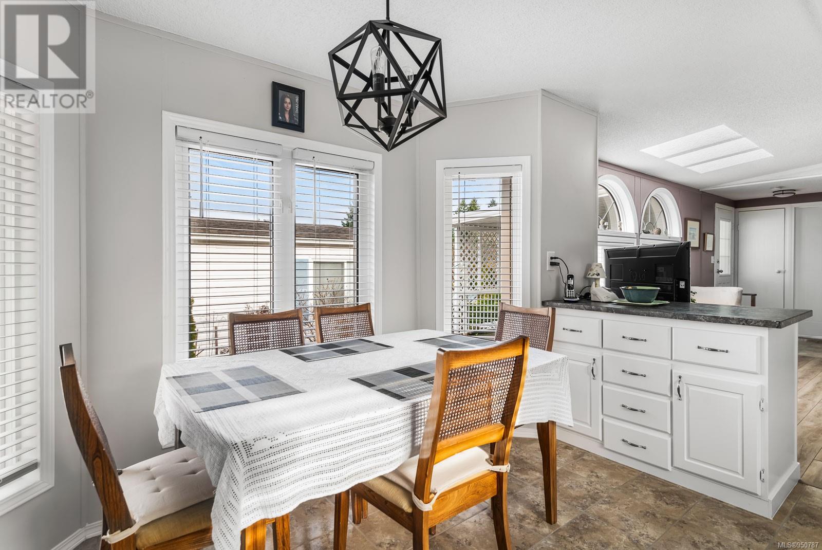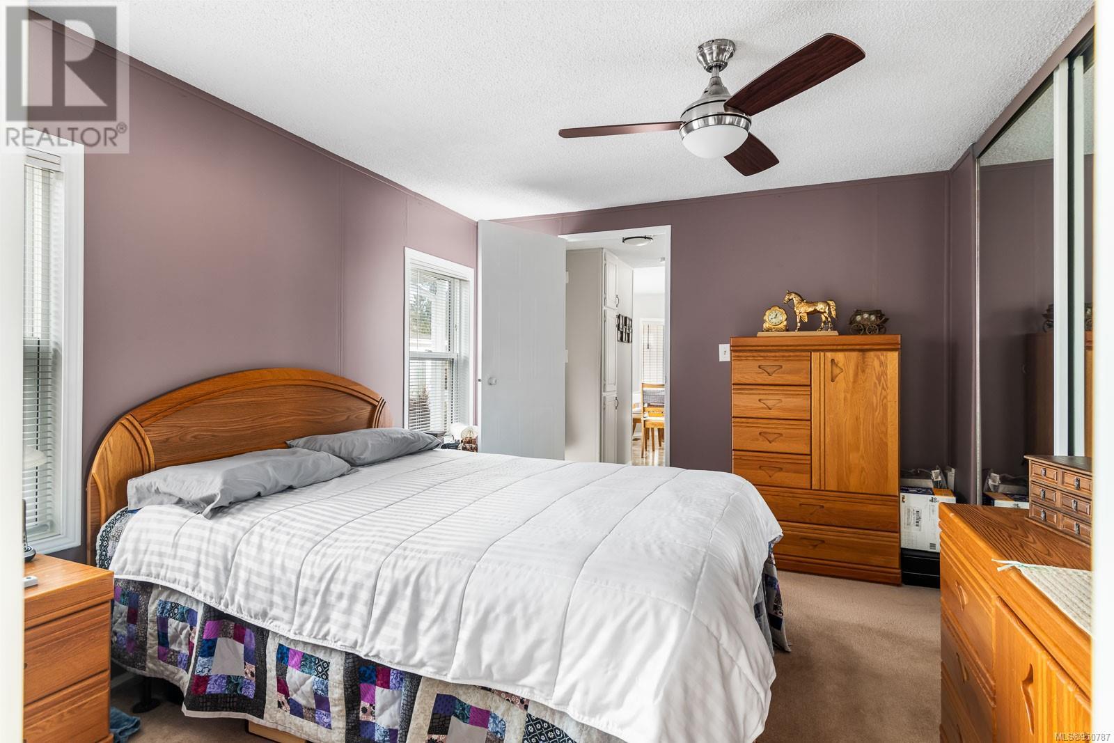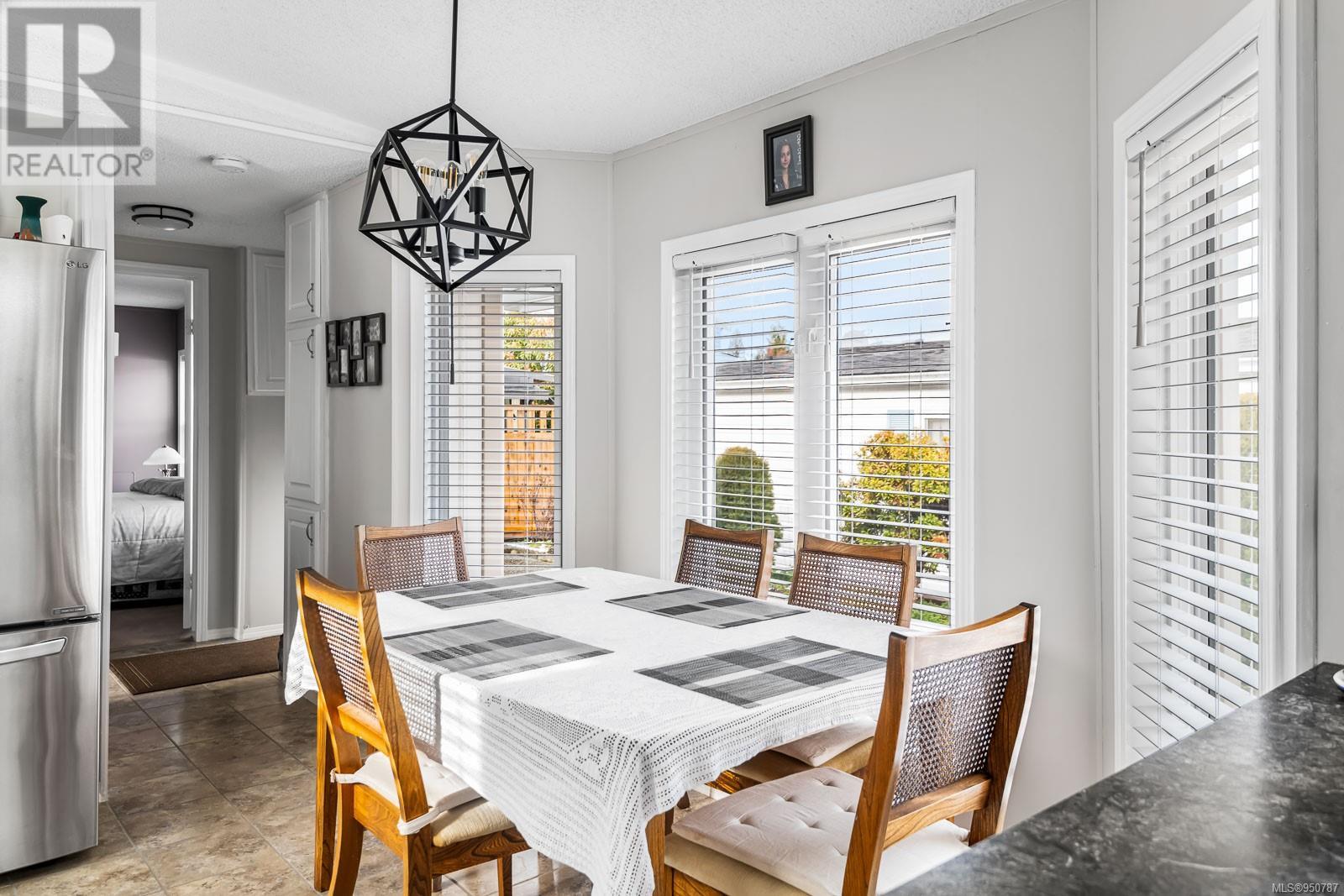 Easy living awaits you in this immaculate 2-bed, 2-bath home! This modern feel, open-concept design home floods the interior w/ natural light. Primary bedroom is very private, & features large closets, & a 5-pc ensuite. Spacious kitchen & dining area is open to the bright living room. Gas fireplace & furnace makes for low cost, economical utilities. Second bedroom is located opposite end to the primary, ensuring total privacy. The laundry room is conveniently located next to the kitchen, w/ an ample pantry & storage. Step outside to discover a well-maintained, low-maintenance yard featuring paved patio w/ awning for those sunny evening gatherings, covered carport, & detached shed for extra storage! This home truly is the complete package for comfortable, modern living in Ladysmith. One dog (15kg or less) allowed w/ park approval. 2 cats may be permitted unless there is also a dog, in which case only one cat may be allowed. (Cats must be indoor only). Don't miss out on your ideal home! (id:22211)