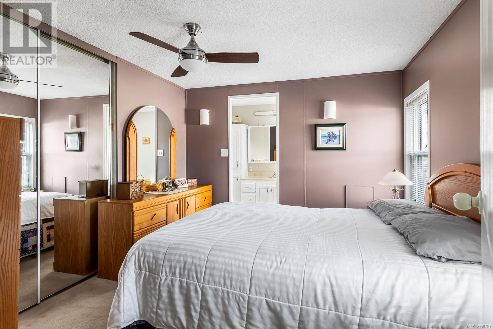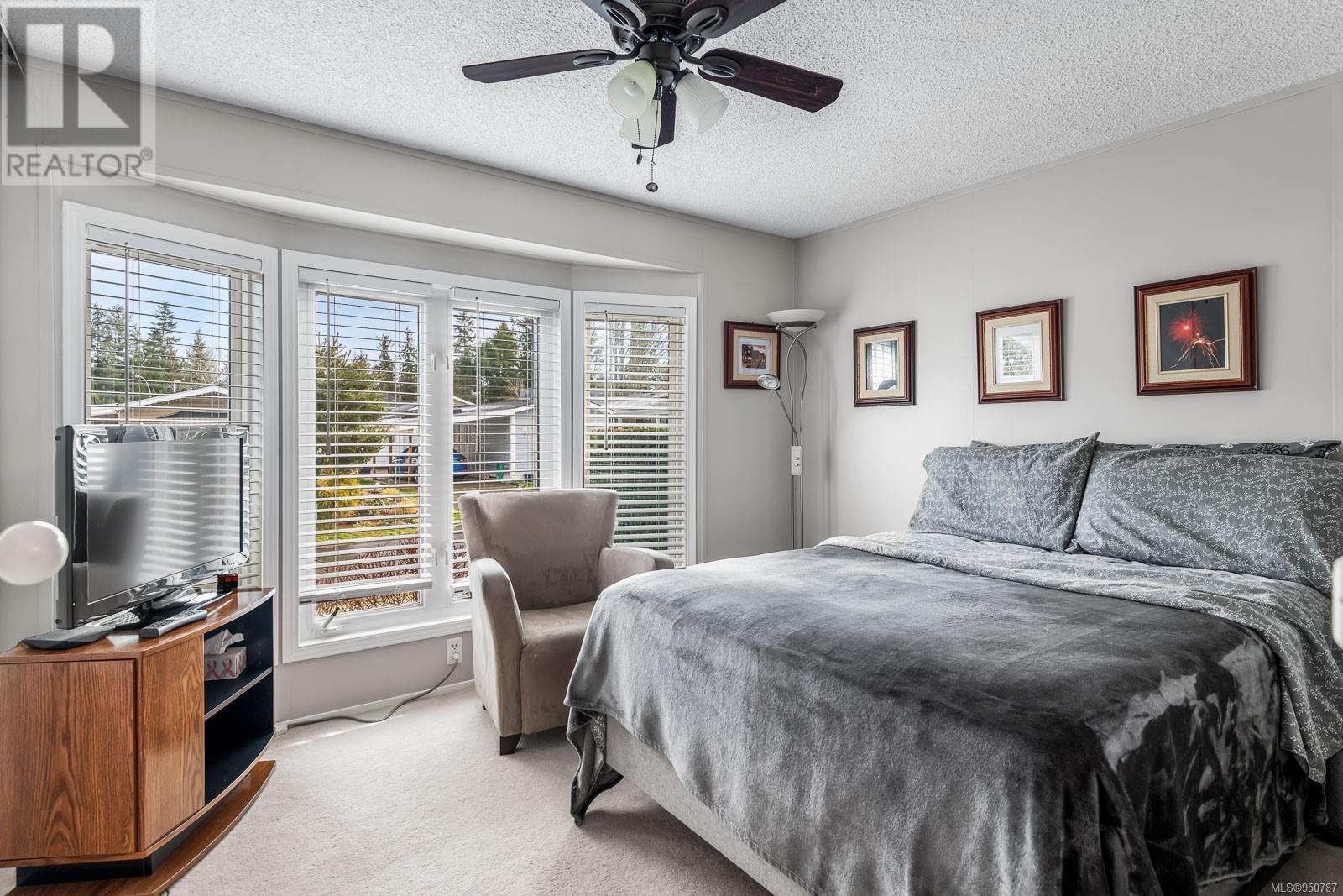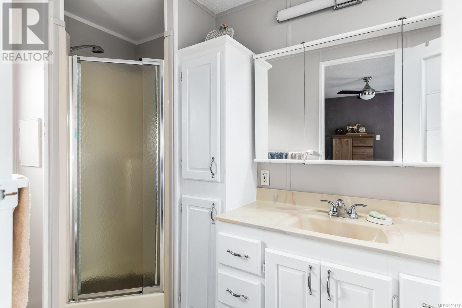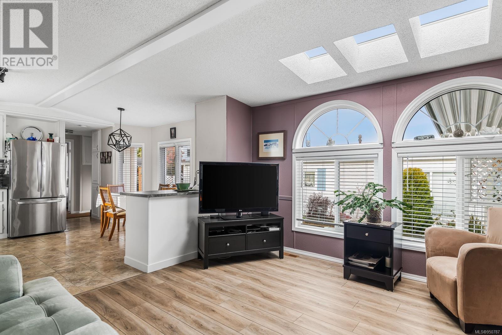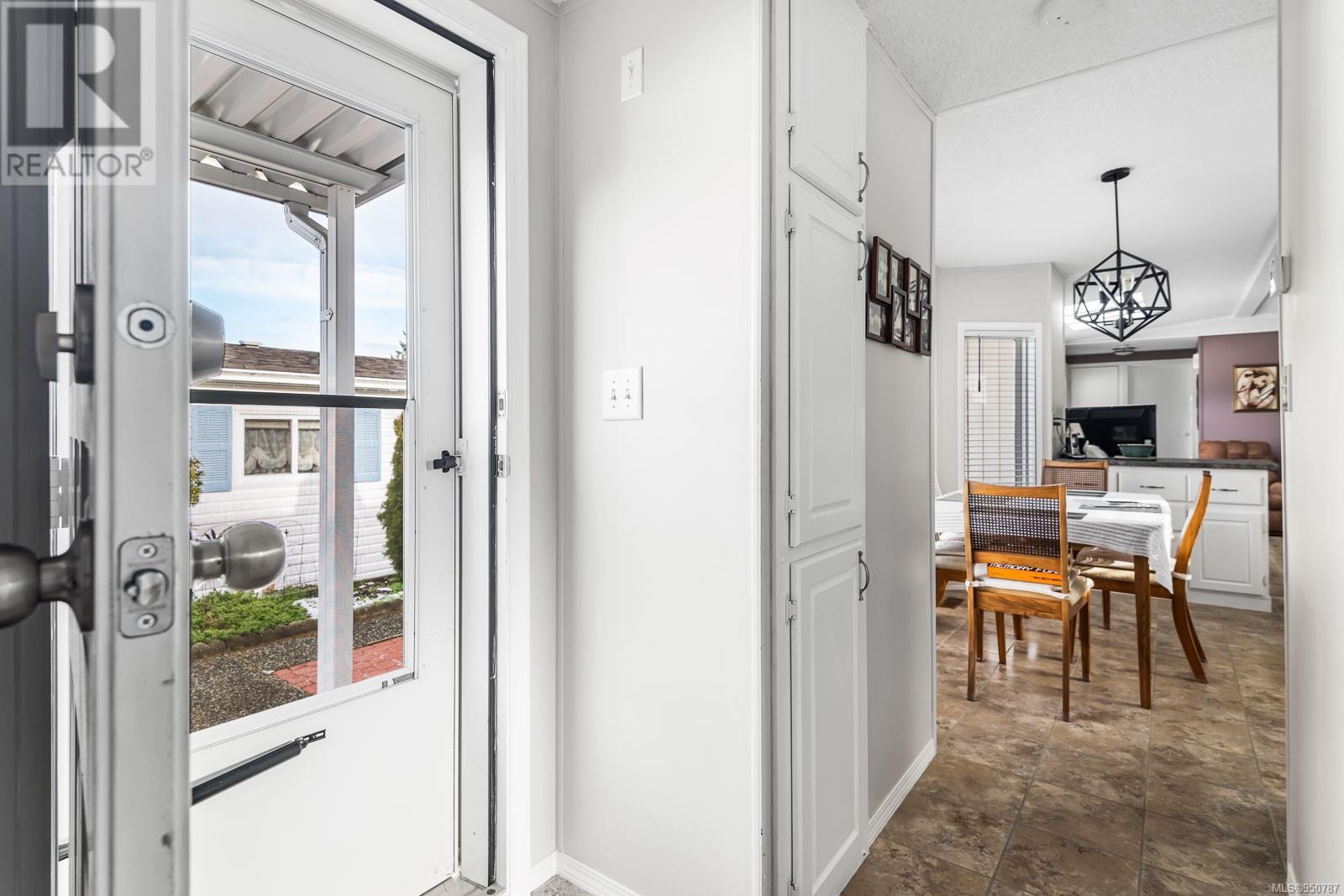 Easy living awaits you in this immaculate 2-bed, 2-bath home! This modern feel, open-concept design home floods the interior w/ natural light. Primary bedroom is very private, & features large closets, & a 5-pc ensuite. Spacious kitchen & dining area is open to the bright living room. Gas fireplace & furnace makes for low cost, economical utilities. Second bedroom is located opposite end to the primary, ensuring total privacy. The laundry room is conveniently located next to the kitchen, w/ an ample pantry & storage. Step outside to discover a well-maintained, low-maintenance yard featuring paved patio w/ awning for those sunny evening gatherings, covered carport, & detached shed for extra storage! This home truly is the complete package for comfortable, modern living in Ladysmith. One dog (15kg or less) allowed w/ park approval. 2 cats may be permitted unless there is also a dog, in which case only one cat may be allowed. (Cats must be indoor only). Don't miss out on your ideal home! (id:22211)