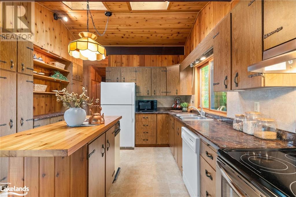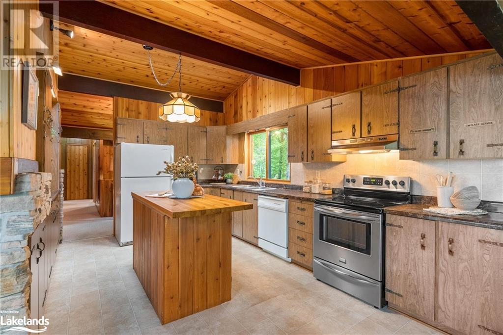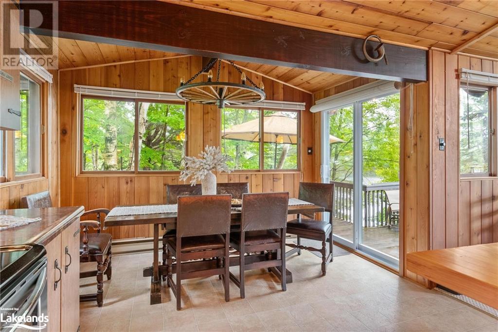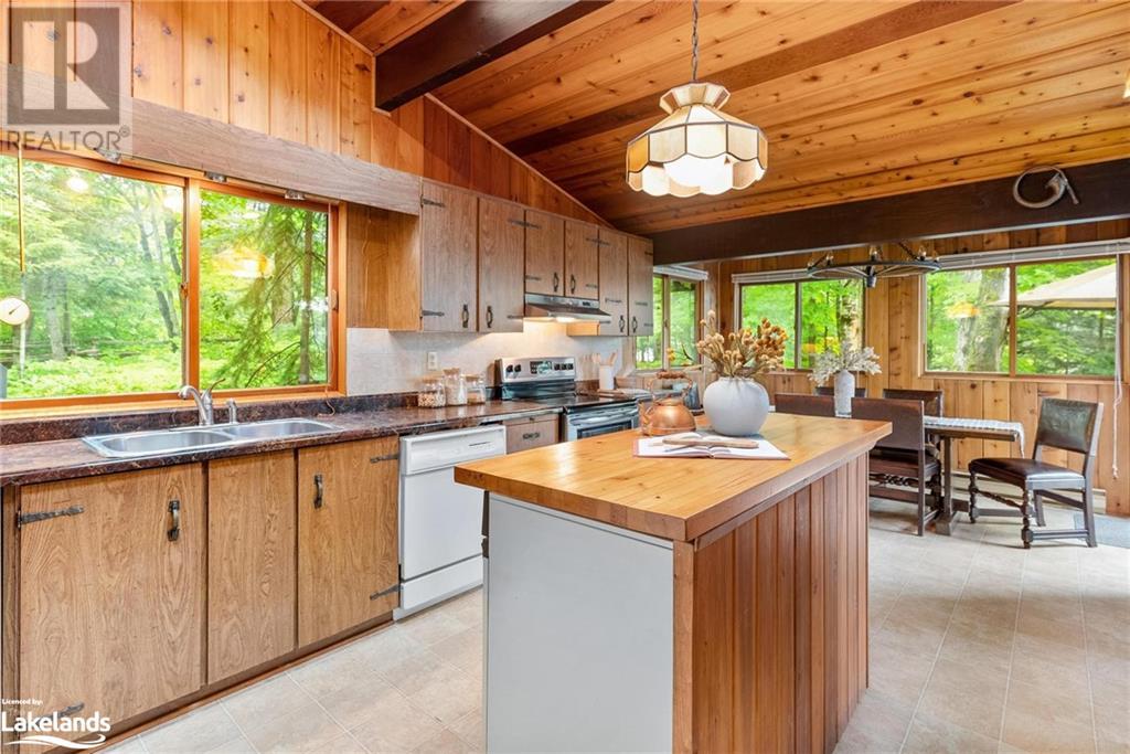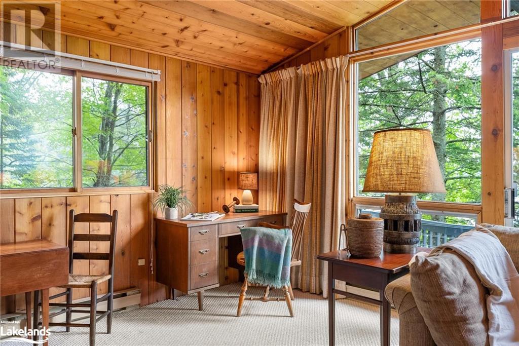 Gorgeous property on Lake of Bays in the Dwight area. Prime location on a quiet bay with quick access to the big lake. Lake of Bays is the second largest lake in Muskoka. Almost 1.7 acres of property features 540 feet of owned shoreline, gently sloping lot, sandy beach, with hard sand lake bottom shallow to deeper water – 4’ to 6’ off the end of the dock, and west (sunset) exposure. It has excellent privacy and year-round access via a privately maintained laneway off a year-round municipal road. Just 5 minutes to Dwight for shopping, or 20 minutes to Huntsville to the west or Algonquin Park to the east. Very few properties like this come to market with such large frontages. Winterized home was built in 1974 and has a true Muskoka cottage feeling. Four bedrooms and 2 bathrooms and is in great condition. Three of the bedrooms are on the main floor along with a 3 pce bathroom featuring a deep vintage claw foot tub perfect for a long soak. Large living room with window wall facing the lake, kitchen and dining room with multiple accesses to the large wrap-around deck. Lower level features one bedroom with private patio, full bathroom, a large rec/family room with view and walkout to the lake. A large workshop/laundry area that leads to a screened porch perfect for enjoying a cup of coffee in the morning while watching the lake or a glass of wine in the evening. Outside shower behind the bunkie with propane heater used to supply hot water. Detached double garage, single wet-slip boathouse with second space for storage, dock at boathouse, storage shed, sweet little bunkie, all in good condition. An ideal site for a rebuild or use the cottage as it is. High speed fiber internet is installed. (id:22211)