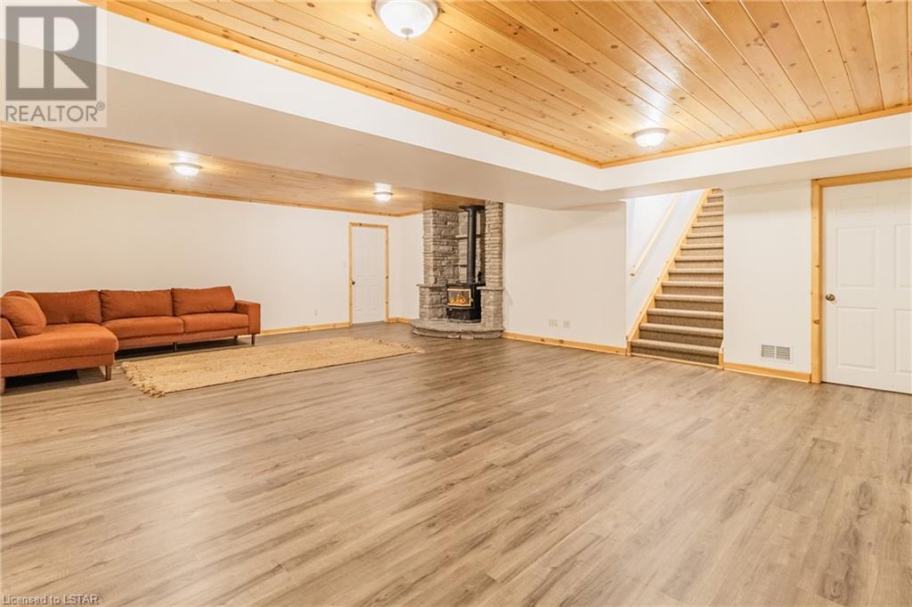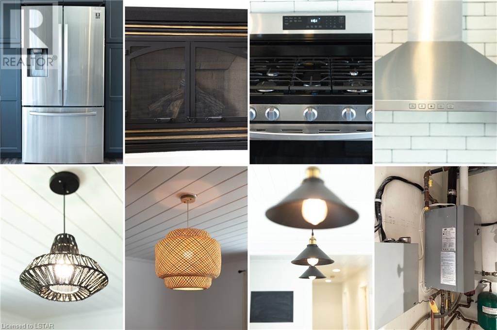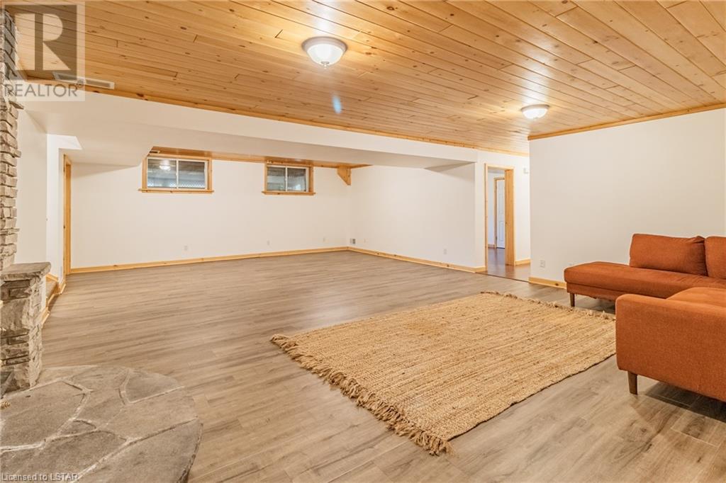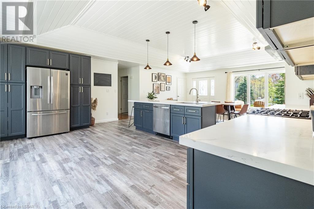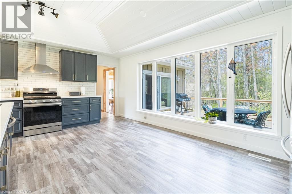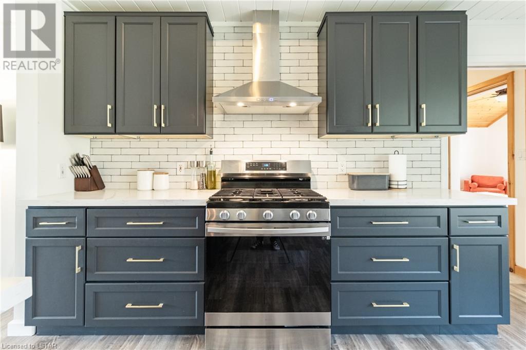 GRAND BEND AREA 6 BEDROOM DAZZLER | YOUNGER HOME COMPLETELY RENOVATED FROM TOP TO BOTTOM | NEARLY 3500 SQ FT OF EPIC LIVING SPACE ON A SECLUDED 1/2 ACRE LOT STEPS TO PINERY TRAILS & SANDY BEACHES: The amazing spaces & large principal rooms in this well-built ranch style bungalow will blow your mind! Let's start with the BRAND NEW custom kitchen & the included updated appliances intelligently laid out for maximum cabinet space in a vast open-concept room. This airy kitchen/dining/living area frames in panoramic views of mature woods on both ends w/ the dual-sided wall to wall windows. This show-stopping space also features a vaulted tray ceiling finished w/ shiplap & a gas fireplace, which is 1 of 3 fireplaces in this sprawling ranch. The 3 large main level bedrooms & 2 updated bathrooms, including a master with ensuite bath, are flooded w/ natural glistening off the hardwood flooring on the daily. The gorgeous knotty pine chalet style sunroom, w/ it's vaulted ceilings over hardwood floors & 2nd main level gas fireplace, walks out to a fantastic sun deck w/ black spindled railings leading to your extremely private backyard. The large laundry/mud room over tile flooring w/ inside entry from the double-deep 2 car insulated garage completes a very impressive main level package. The lower level provides another 3 roomy bedrooms, a 3rd full bath w/ a stellar tile shower, a massive family room w/ a wood fireplace (firewood included) + loads of storage. The 3436 sq ft of impeccably finished living space is peppered w/ new light & plumbing fixtures, loads of updated flooring & a fresh paint job w/ a total of 3715 sq ft of floor space counting the oversized cold room (ideal wine cellar/tasting room). All of this amazing space is in phenomenal condition below a 2021 roof & serviced by a full-house gas generator. The massive concrete driveway provides loads of parking for all the toys. Steps to sandy beaches in the Pinery & just south of everything you need in Grand Bend! (id:22211)