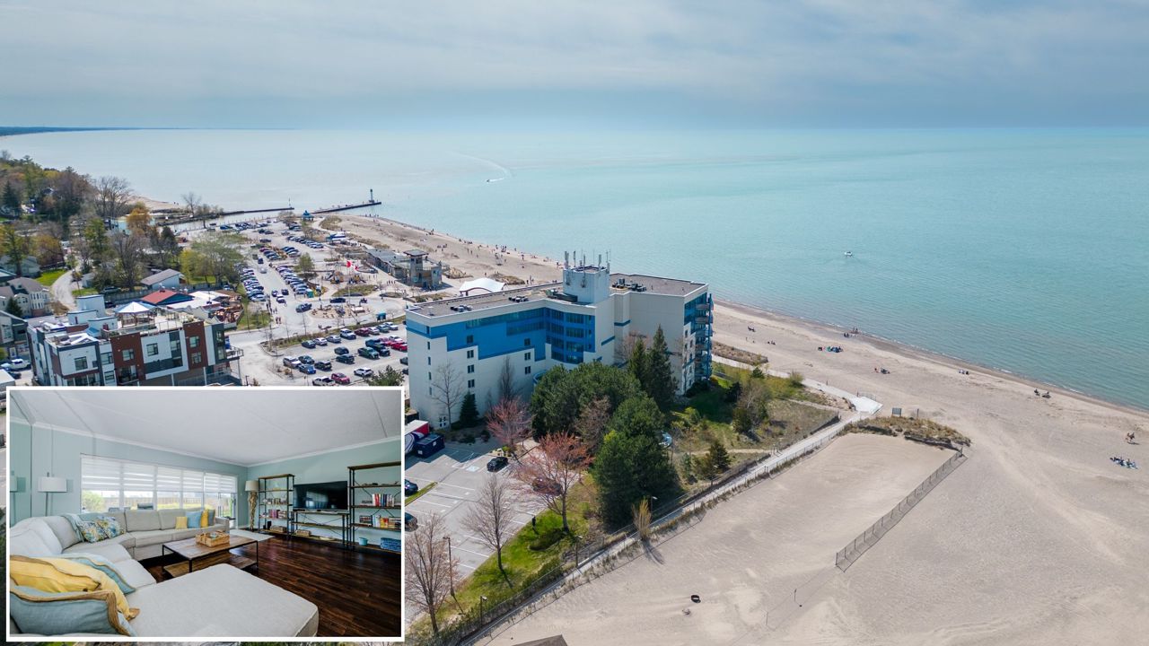 BEACHFRONT GRAND BEND GETAWAY! This beautiful bright and airy condo is the home away from home you've been waiting for. Sitting on one of Ontario's most popular beaches, this sought-after getaway location is less than 2 hours outside of the Waterloo Region and GTA. Picture yourself leaving work Friday afternoon just in time to watch the sunset on your spacious terrace w/ direct access to the beach. Welcome to Beachplace Condominiums community, a waterfront condo-perfect for empty nesters, investors, or someone ready to buy a maintenance-free getaway home. Offering over 1250sqft including 2 great sized bedrooms, 2 full bathrooms, & a kitchen open to the living room with sliders to your outdoor space. This updated unit is carpet free w/ hand scraped hardwood floors, an updated kitchen with quartz countertops, a soaker tub, a glass-enclosed shower, wall-to-wall windows, a primary walk-in closet, & in-suite laundry. This unit comes complete with a storage locker #171, 1 parking space #15.A Gated Entrance, 2 Visitor Parking Tags, & Controlled Entry. Close Your Laptop Until Monday & Enjoy All This Area Has To Offer - Close To Restaurants, The Pavilion For Concerts, & Thriving Main Street. Email Office For Status Certificate.