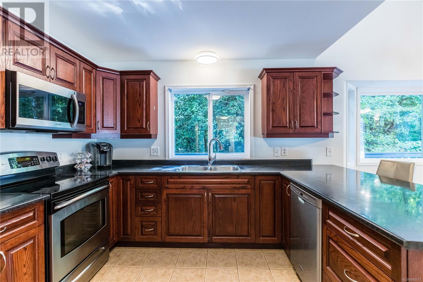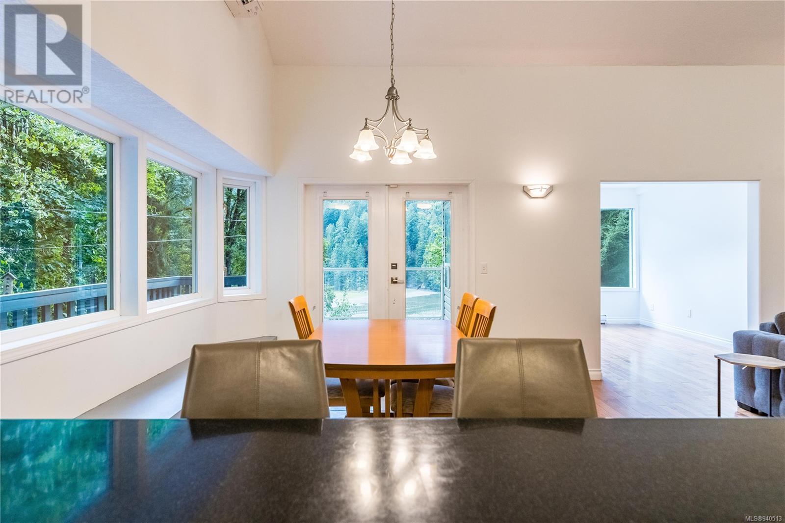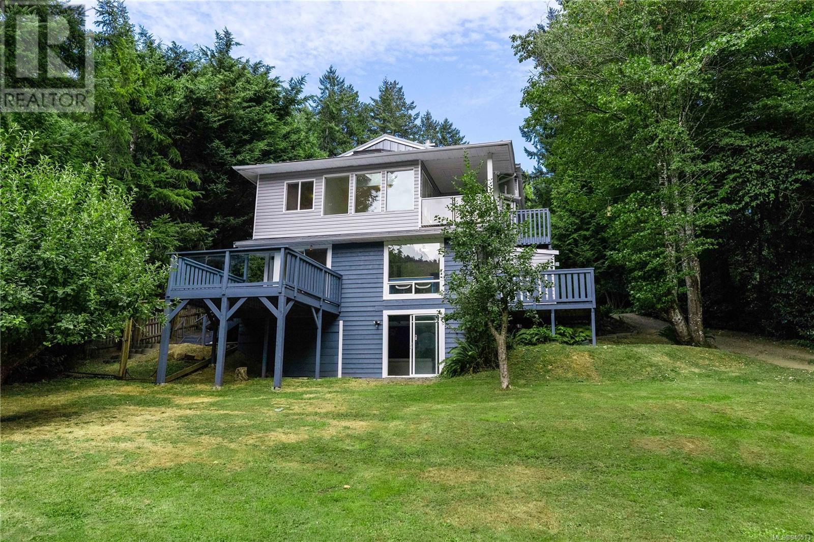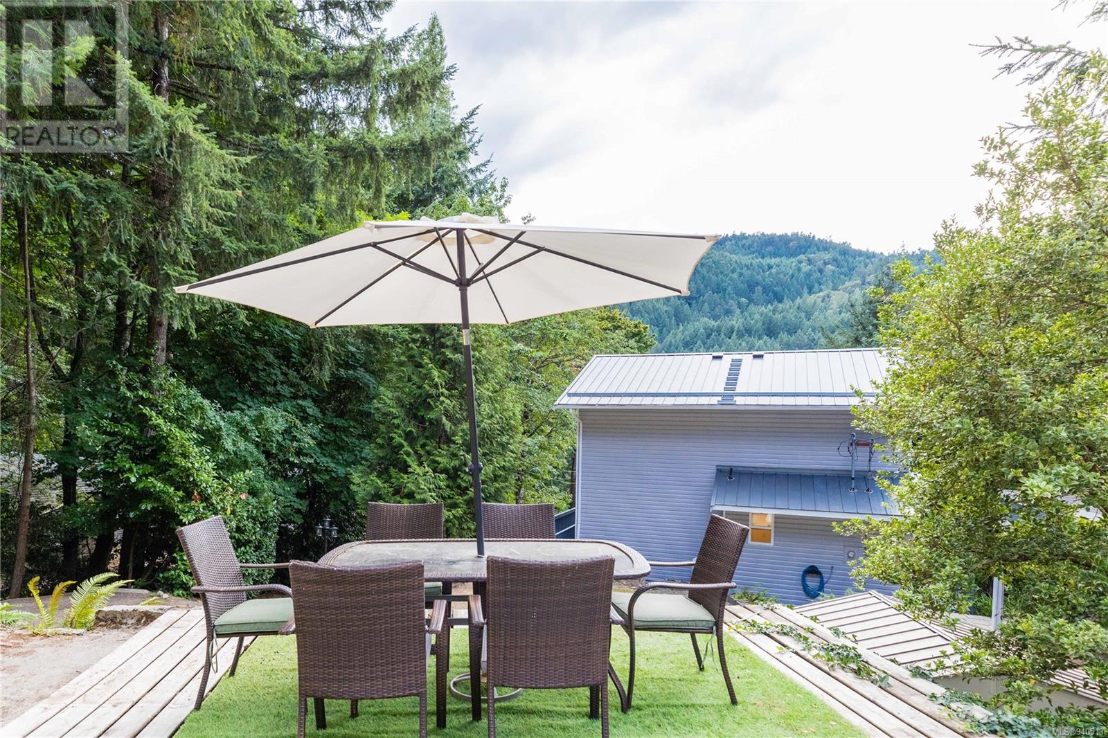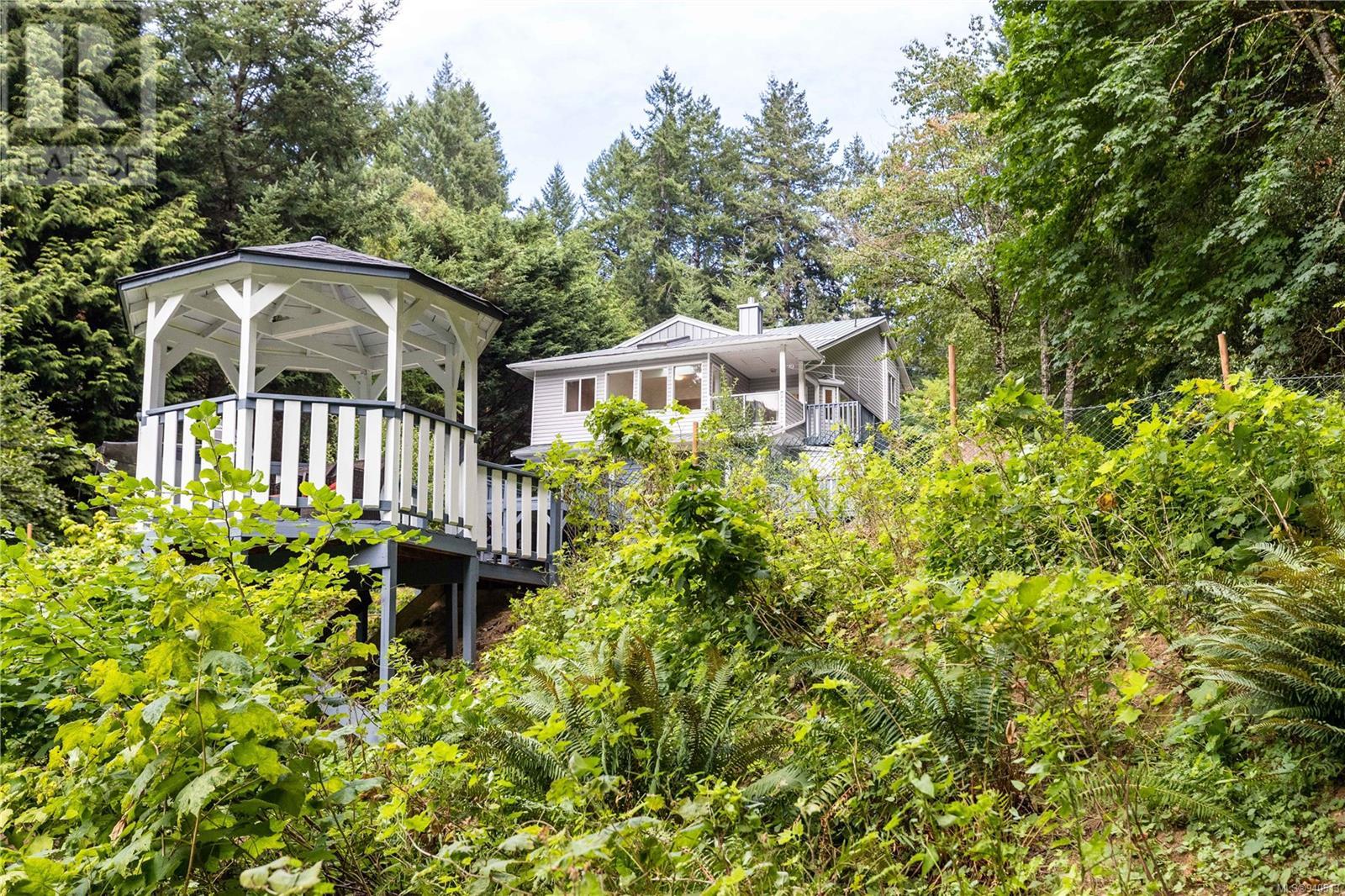 This six-bed, four-bath revitalized coastal home, nestled in Goldstream Provincial Park, includes a three-bed, two-bath main living space and a three-bed, two-bath lower-level rental suite with private entrance. The 1.2-acre park-like property, large enough to accomodate an additional garden/carriage suite, offers water and mountain views, a revamped kitchen, spacious living areas, a cozy fireplace, sunroom, office, laundry, and a primary bedroom with ensuite. A forest trail with upgraded path leads to the waterfront, ideal for watersports and wildlife observation. The descending terrain provides excellent views and several potential future building sites, while an existing carport and garage with workshop space offers ample parking and storage. Recent enhancements include new interior and exterior paint, restored decking, a new walkway, and a waterside deck with kayak storage. Just eight minutes from Langford's shopping and activities, this property offers a perfect blend of natural beauty, practicality, and convenience. (id:22211)