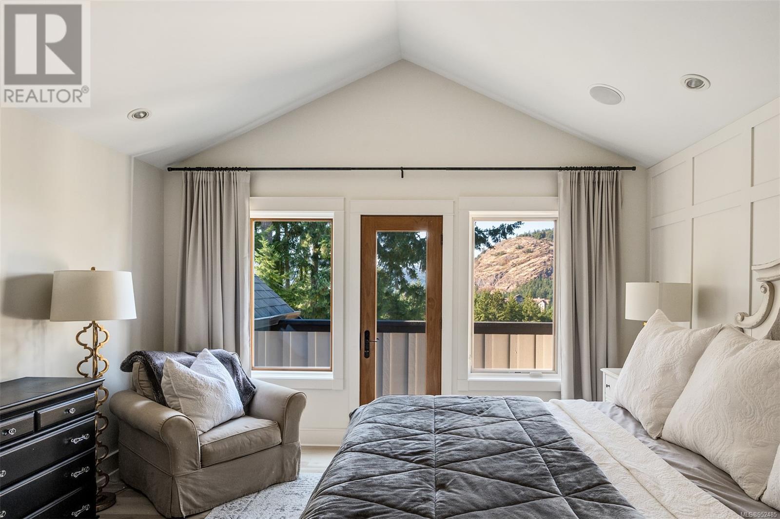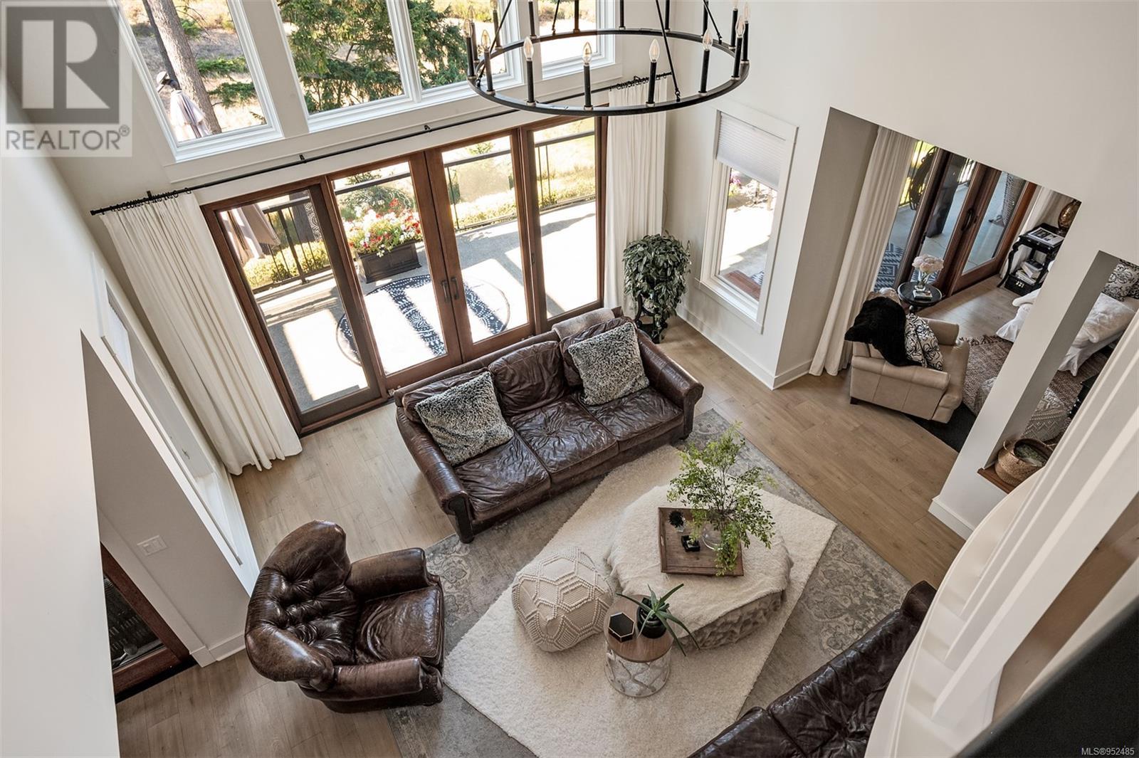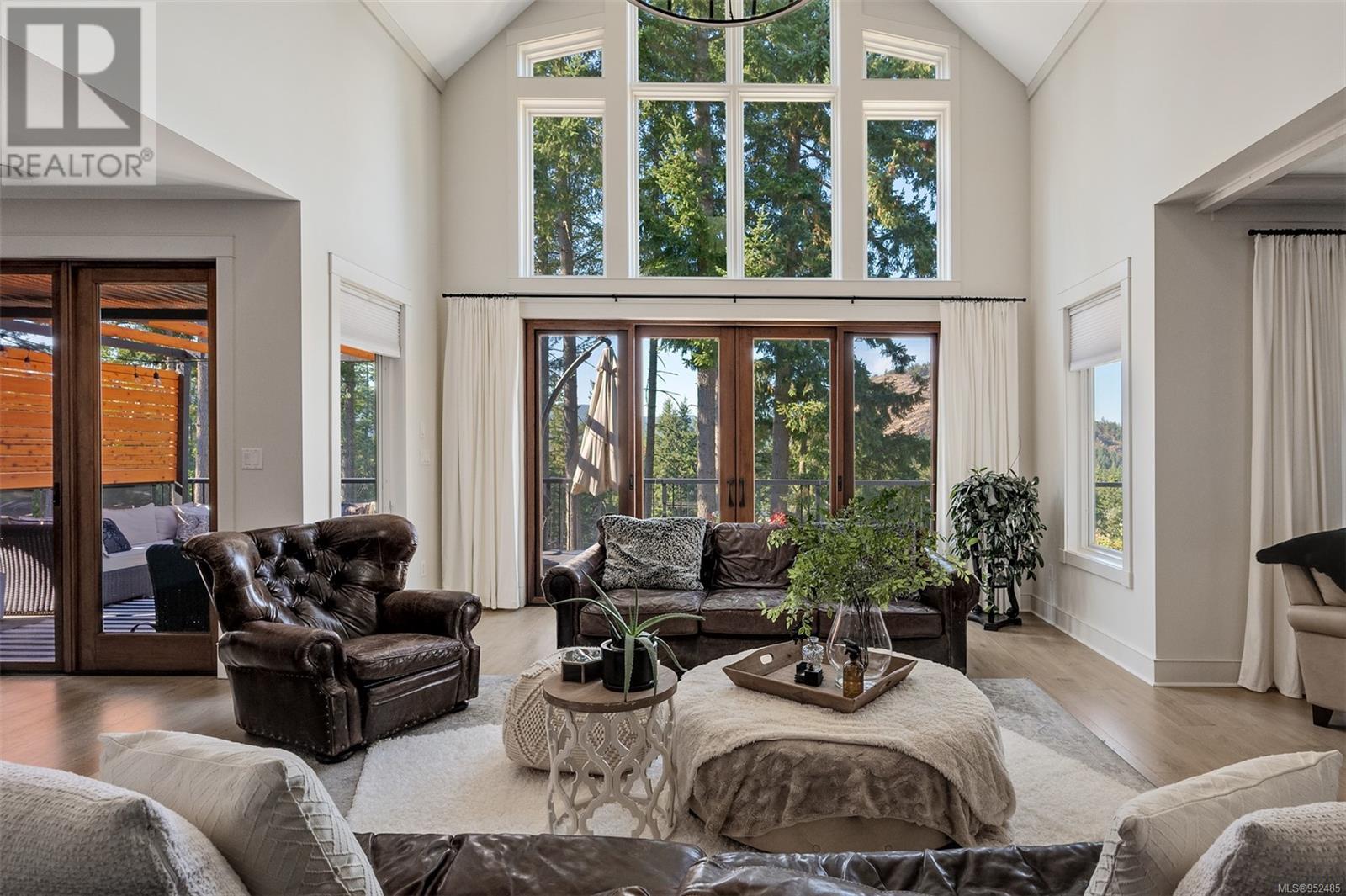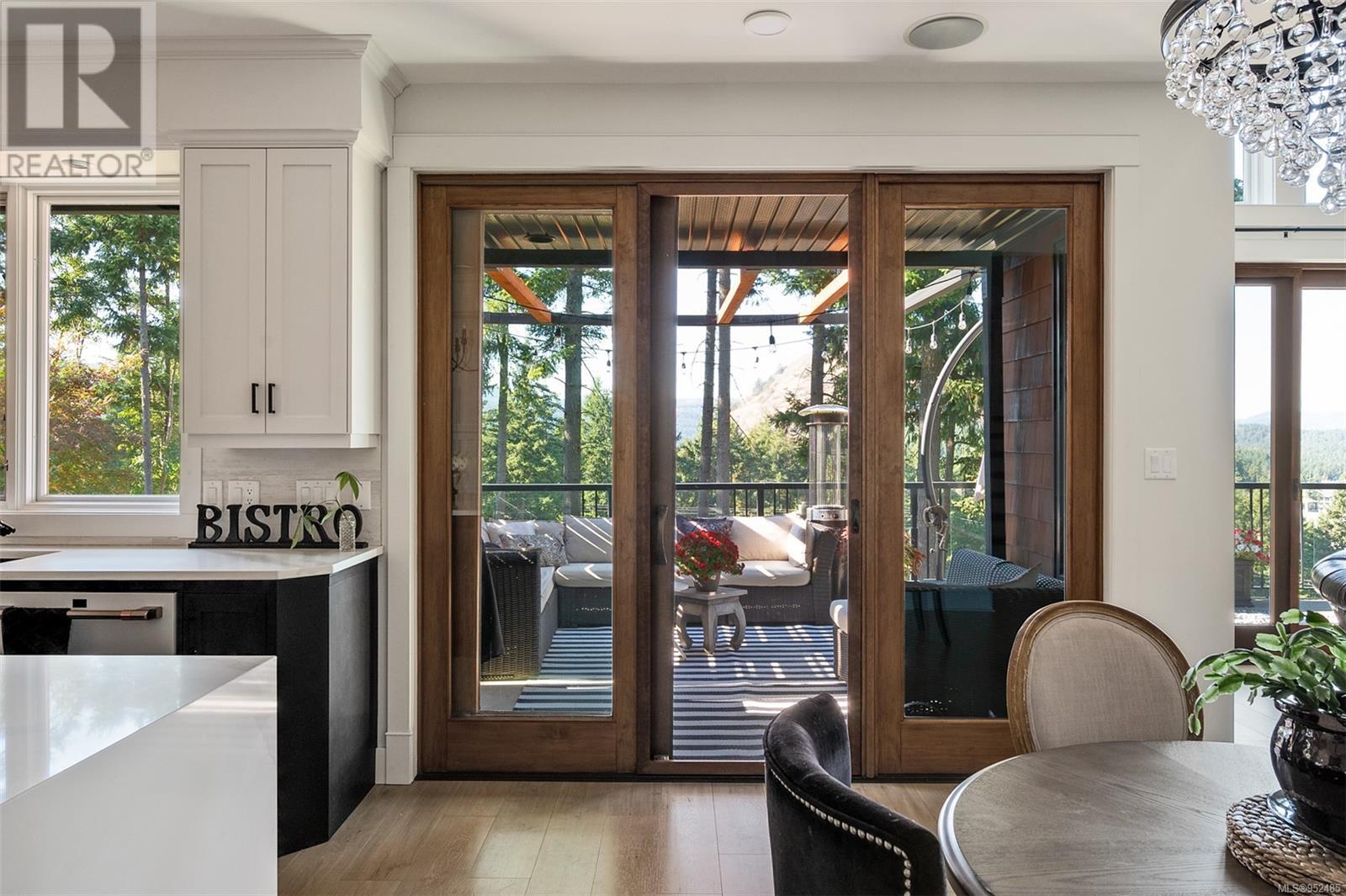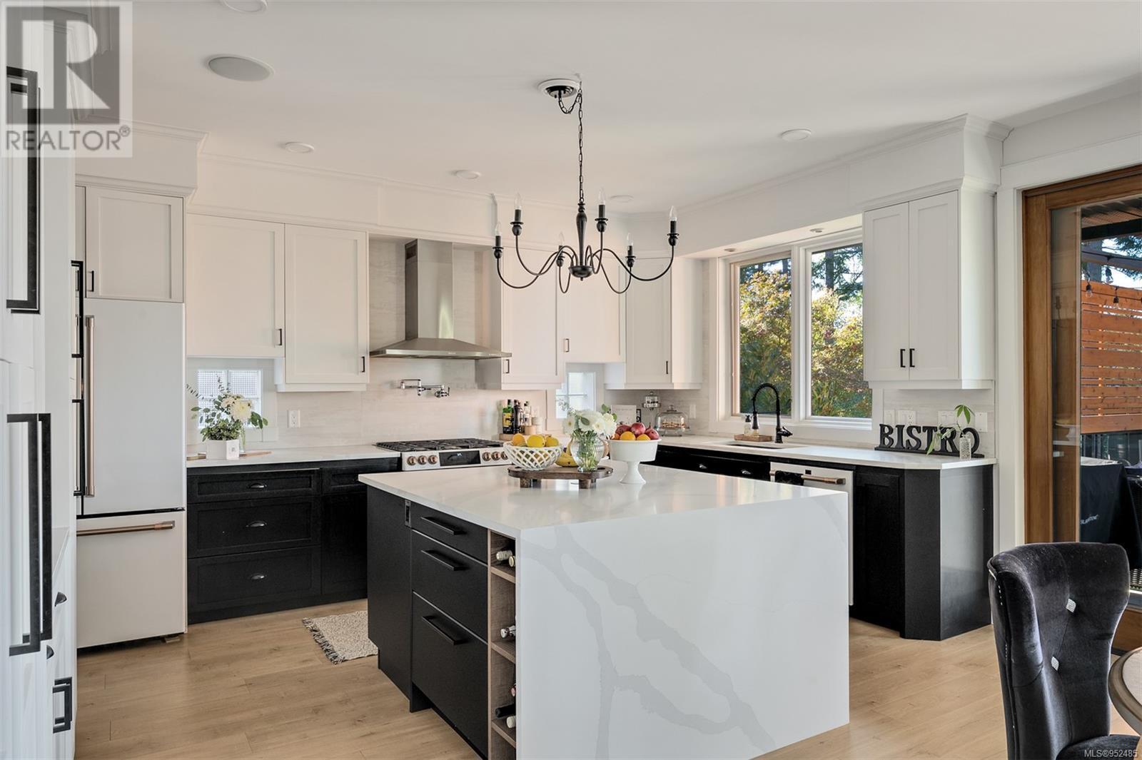 Perched over the 17th Fairway of the Bear Mountain Championship golf course,this custom fully updated home offers designer details, superior craftsmanship and welcoming spaces over 4600+sqft. Featuring 5 beds /5 baths home over 3 floors this home presents a dramatic vaulted living room, Pella windows, a gourmet kitchen with quartz waterfall island,Cafe appliances and beautifully tiled walk through pantry.The expansive covered patios create both dining and gathering spaces to enjoy the unparalleled west views of Bear Mountain village and Mt Finlayson.The upper floor presents a walkway bridge leading to the grand primary bedroom with a 5 piece ensuite,walk-in closet and 2 additional beds and a 4 piece bath. The lower level features an inlaw SUITE,media room, walk out patio and backyard. Steps to the Westin, choice of two 18 hole Nicklaus designed golf courses, red clay tennis court facility, athletic centre with outdoor pool and various hiking/biking trails. (id:22211)