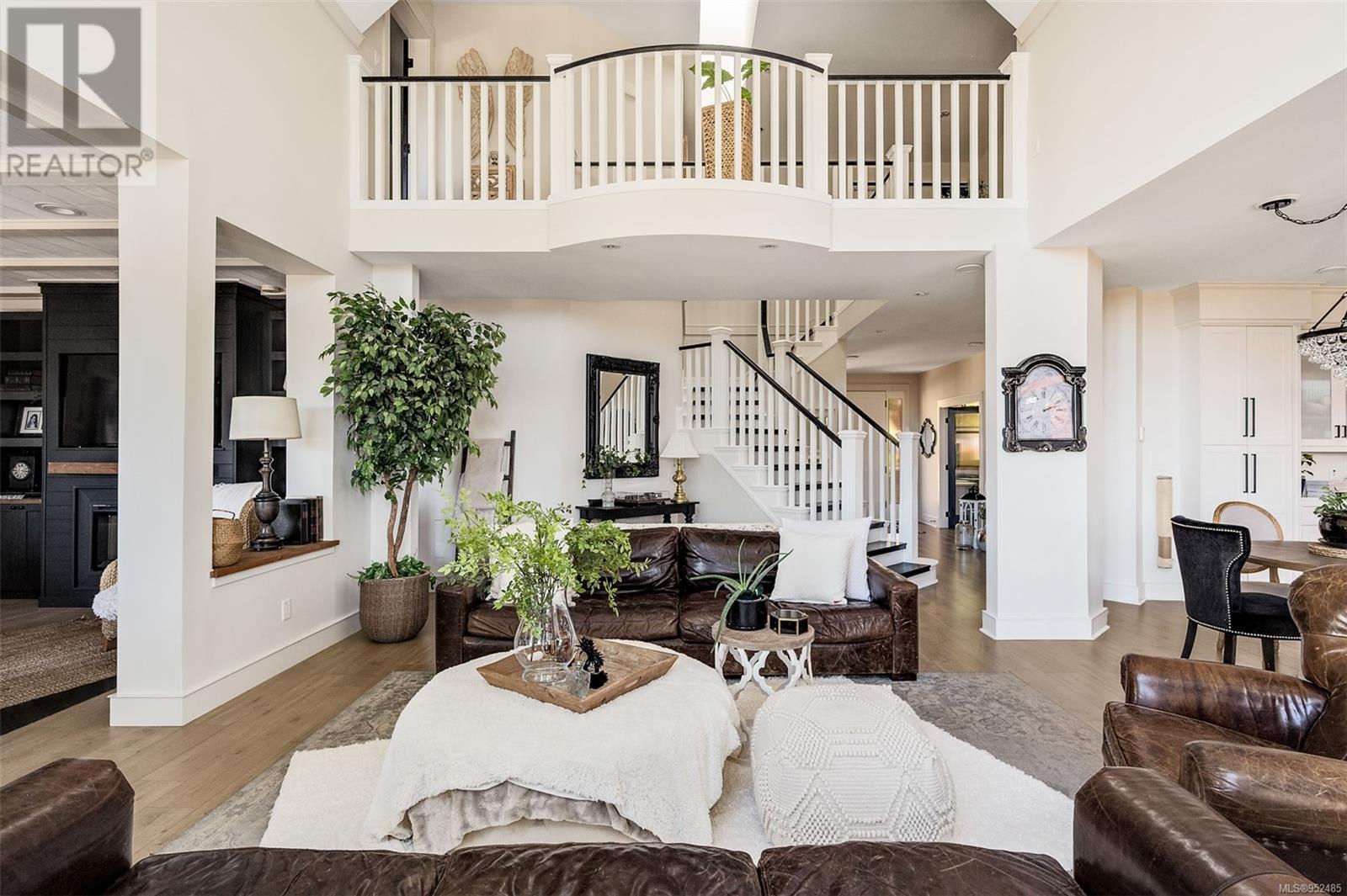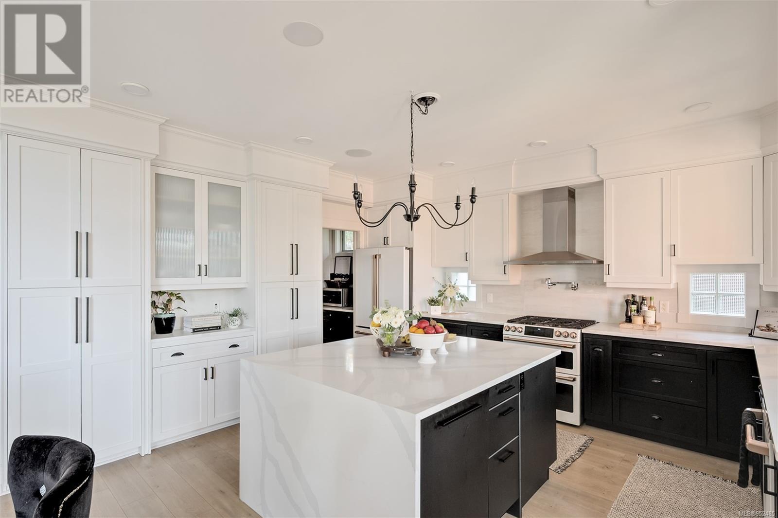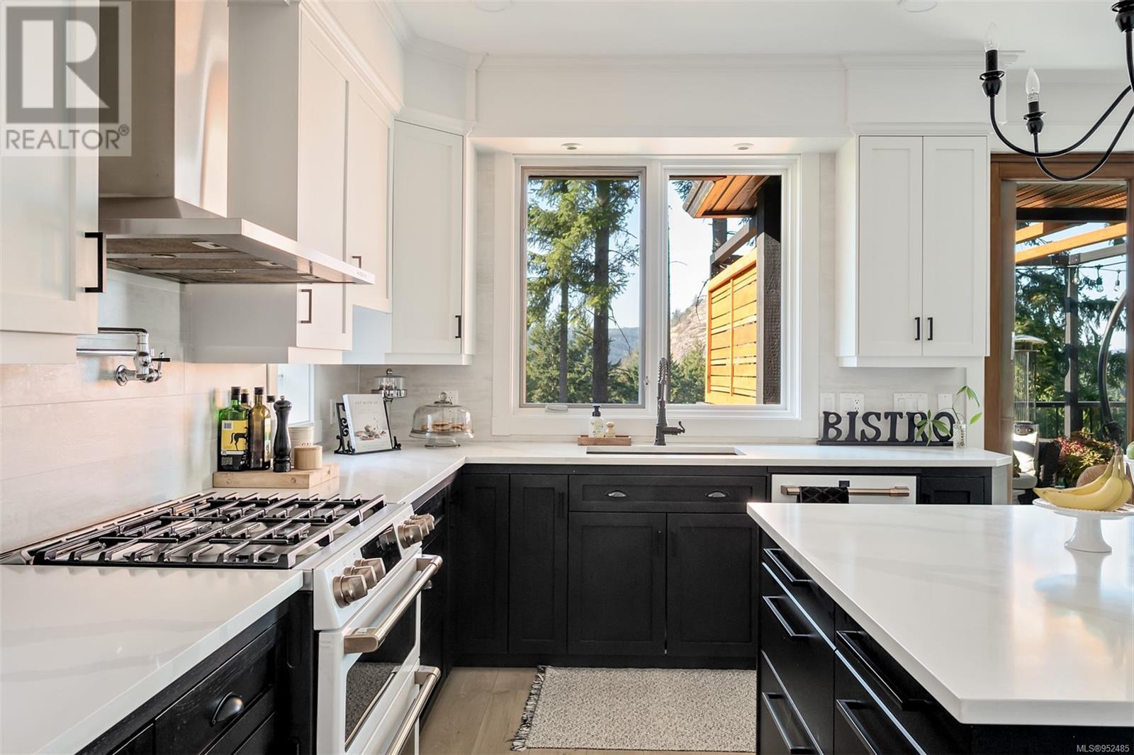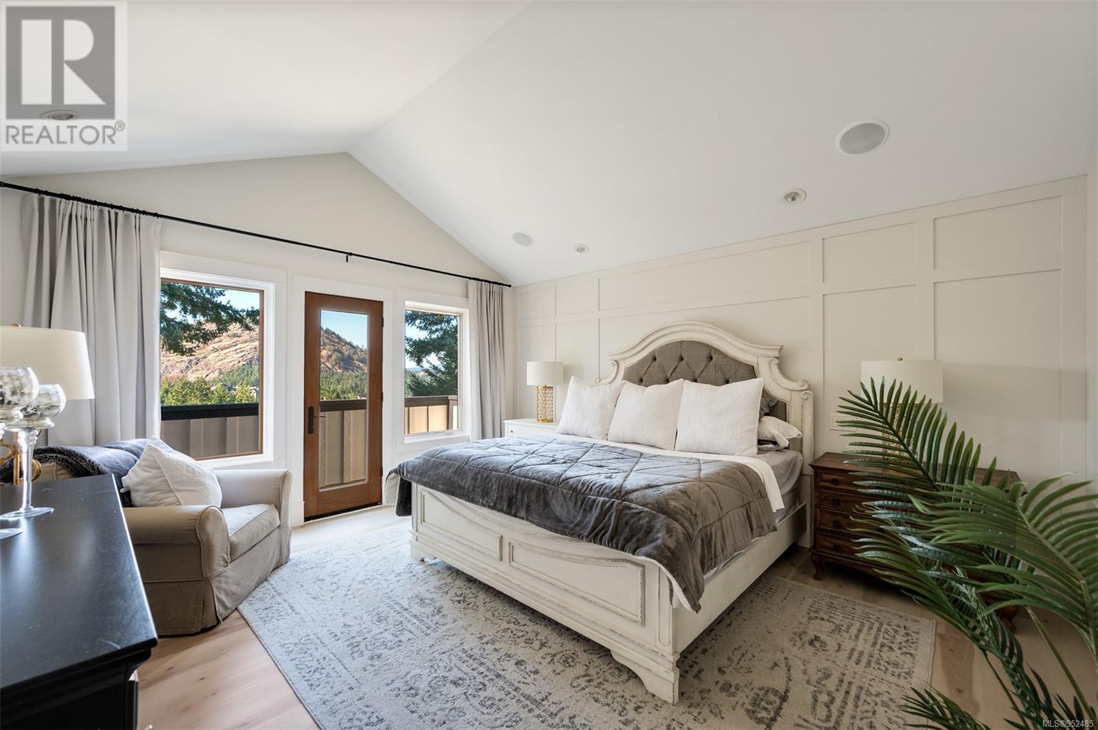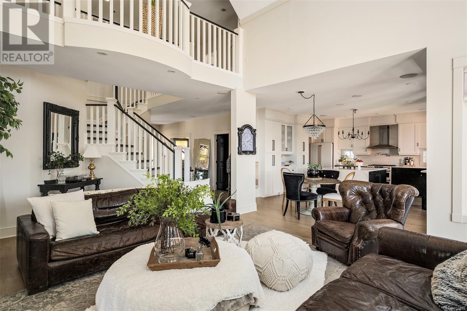 Perched over the 17th Fairway of the Bear Mountain Championship golf course,this custom fully updated home offers designer details, superior craftsmanship and welcoming spaces over 4600+sqft. Featuring 5 beds /5 baths home over 3 floors this home presents a dramatic vaulted living room, Pella windows, a gourmet kitchen with quartz waterfall island,Cafe appliances and beautifully tiled walk through pantry.The expansive covered patios create both dining and gathering spaces to enjoy the unparalleled west views of Bear Mountain village and Mt Finlayson.The upper floor presents a walkway bridge leading to the grand primary bedroom with a 5 piece ensuite,walk-in closet and 2 additional beds and a 4 piece bath. The lower level features an inlaw SUITE,media room, walk out patio and backyard. Steps to the Westin, choice of two 18 hole Nicklaus designed golf courses, red clay tennis court facility, athletic centre with outdoor pool and various hiking/biking trails. (id:22211)