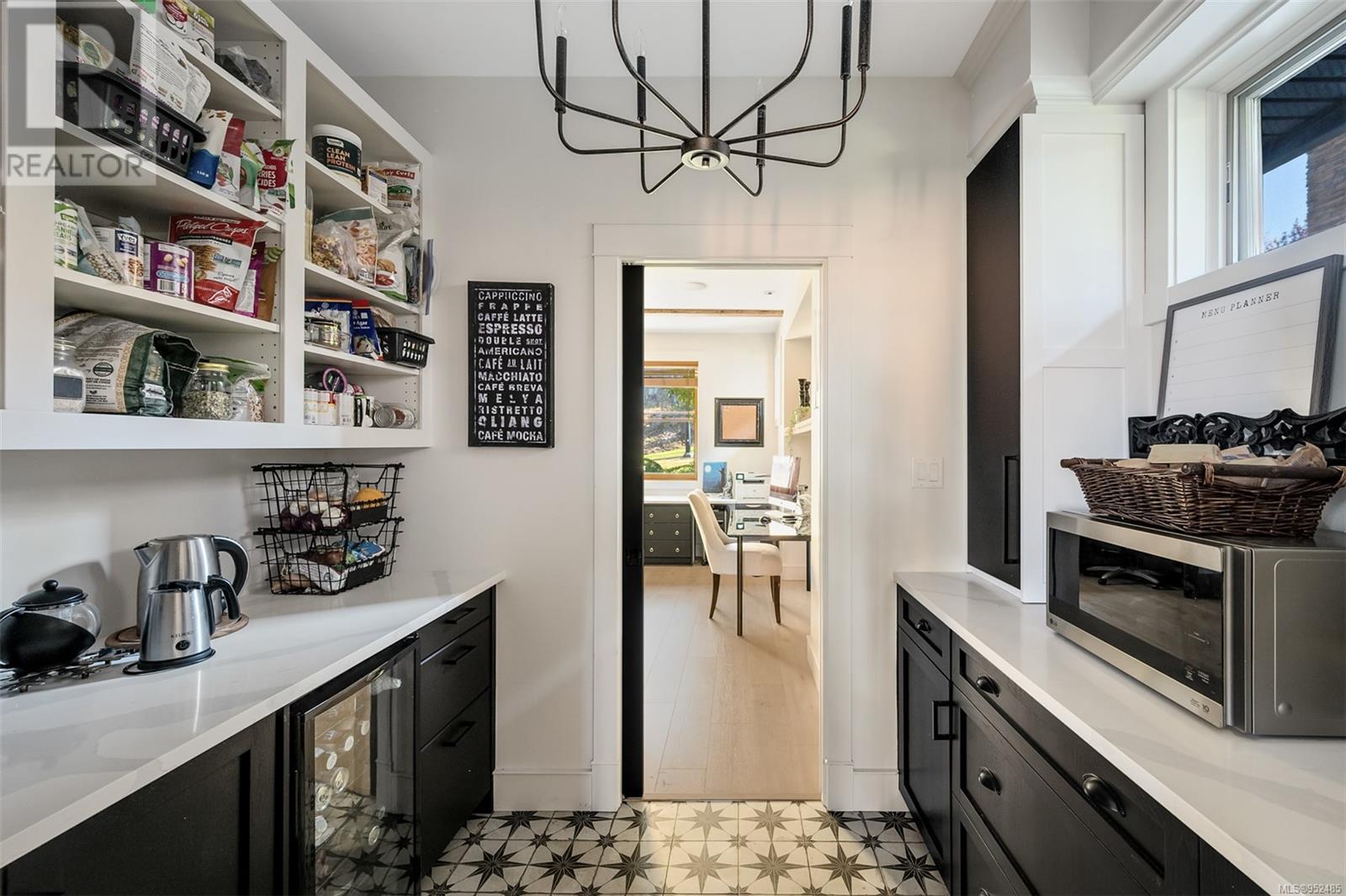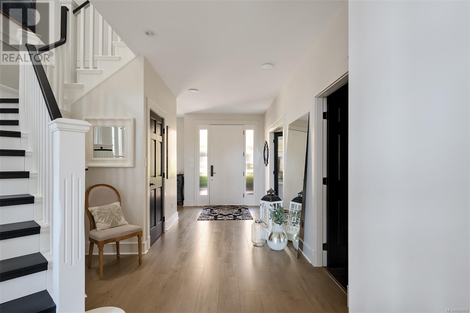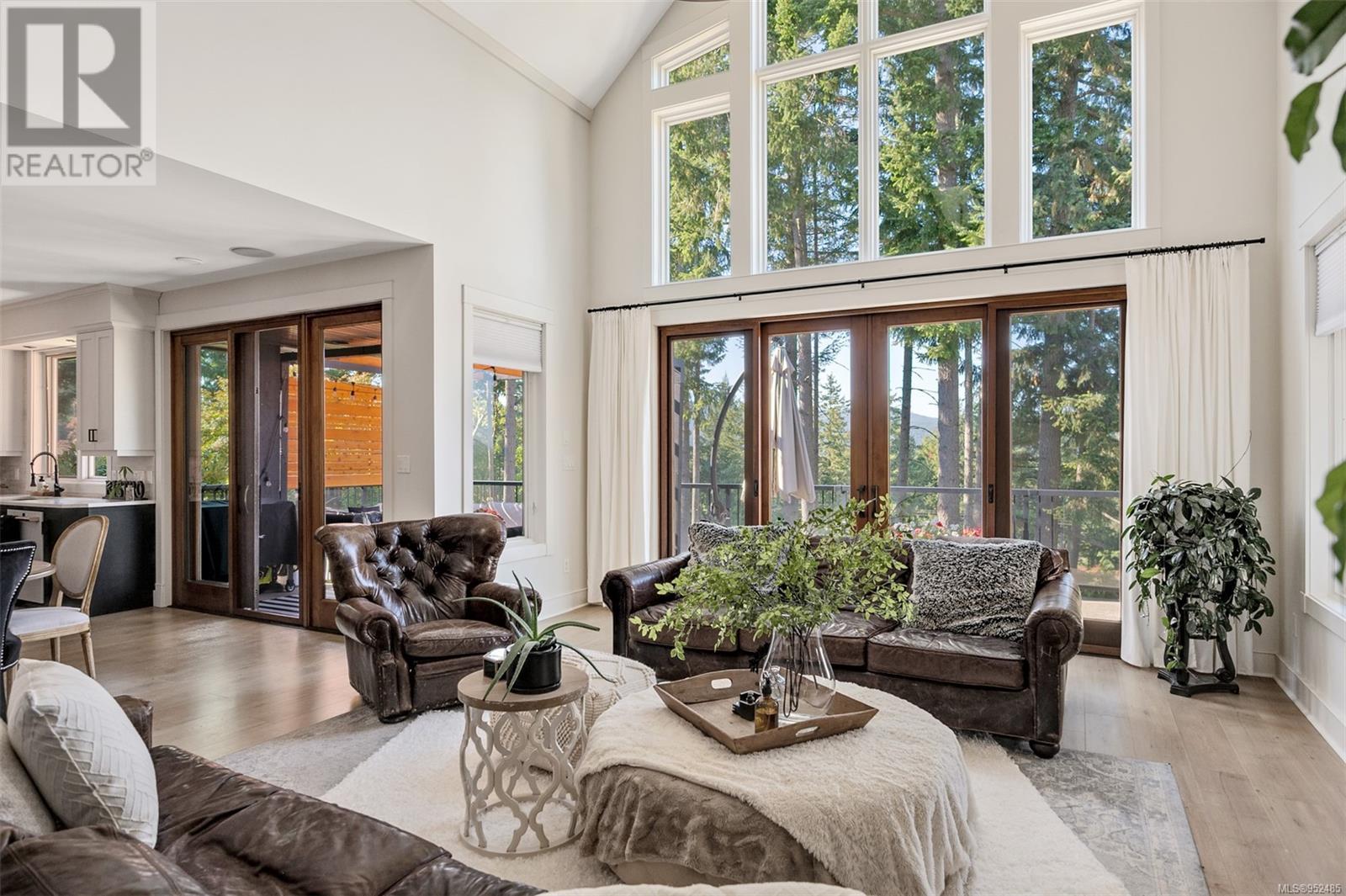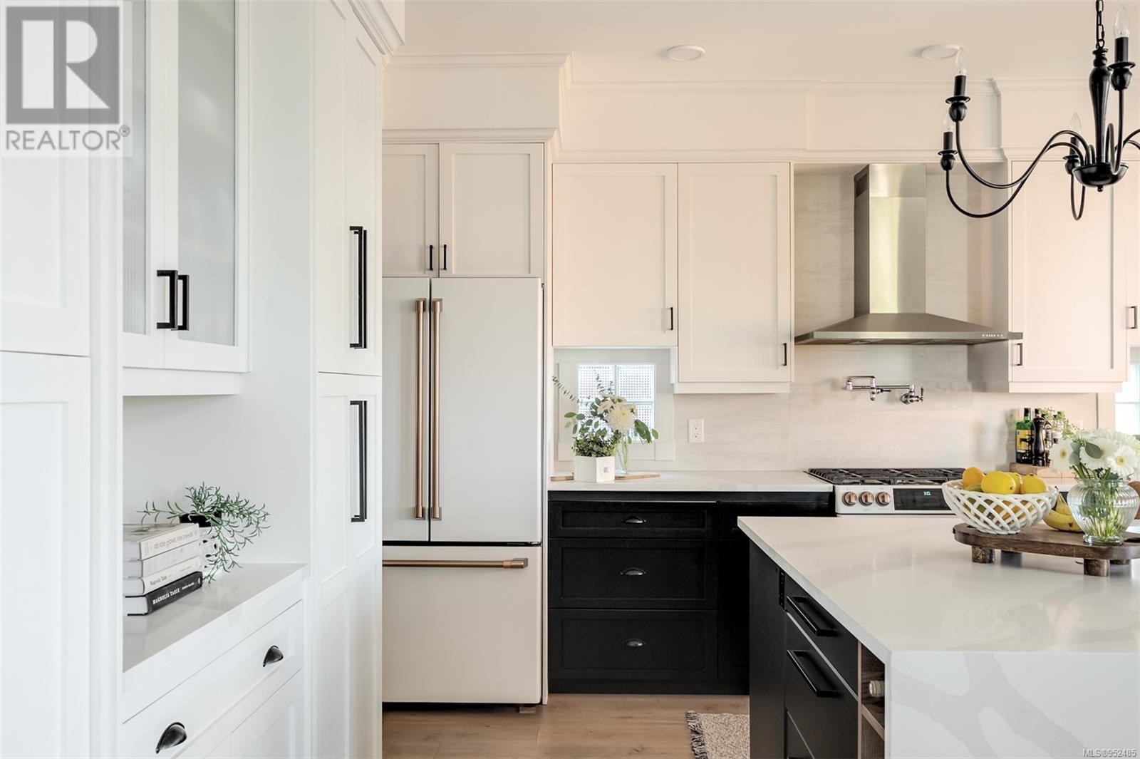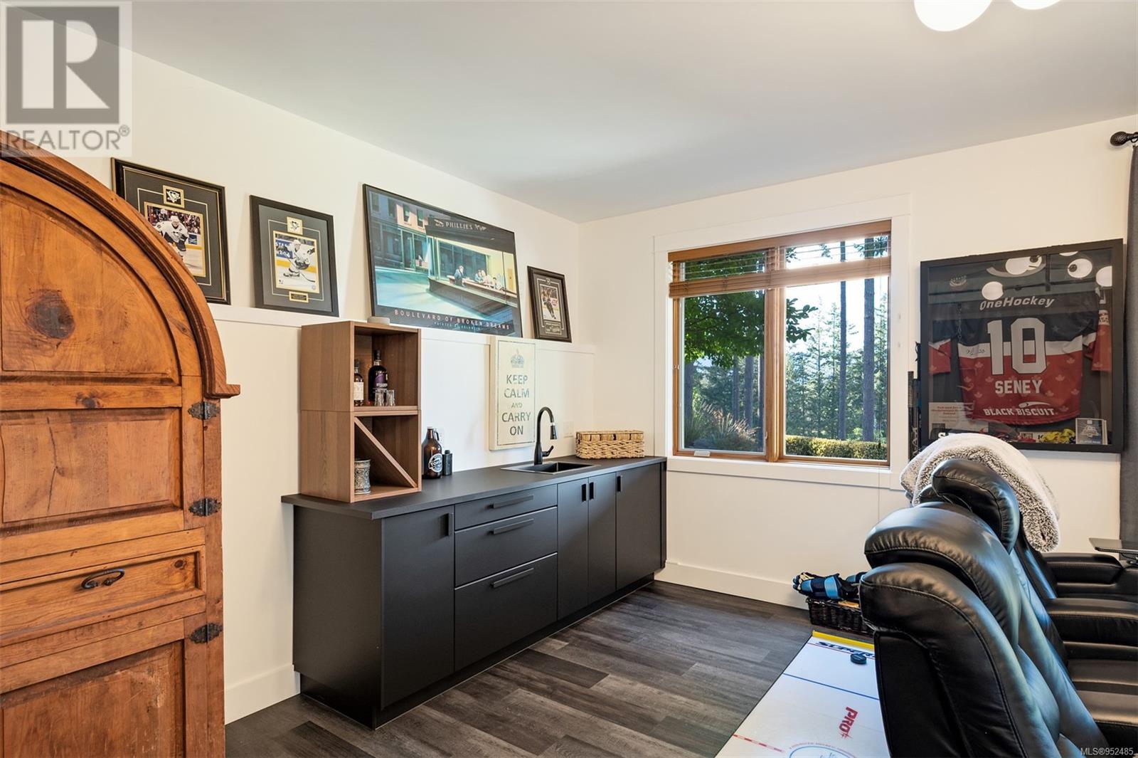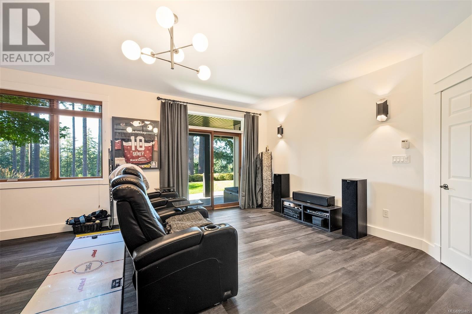 Perched over the 17th Fairway of the Bear Mountain Championship golf course,this custom fully updated home offers designer details, superior craftsmanship and welcoming spaces over 4600+sqft. Featuring 5 beds /5 baths home over 3 floors this home presents a dramatic vaulted living room, Pella windows, a gourmet kitchen with quartz waterfall island,Cafe appliances and beautifully tiled walk through pantry.The expansive covered patios create both dining and gathering spaces to enjoy the unparalleled west views of Bear Mountain village and Mt Finlayson.The upper floor presents a walkway bridge leading to the grand primary bedroom with a 5 piece ensuite,walk-in closet and 2 additional beds and a 4 piece bath. The lower level features an inlaw SUITE,media room, walk out patio and backyard. Steps to the Westin, choice of two 18 hole Nicklaus designed golf courses, red clay tennis court facility, athletic centre with outdoor pool and various hiking/biking trails. (id:22211)