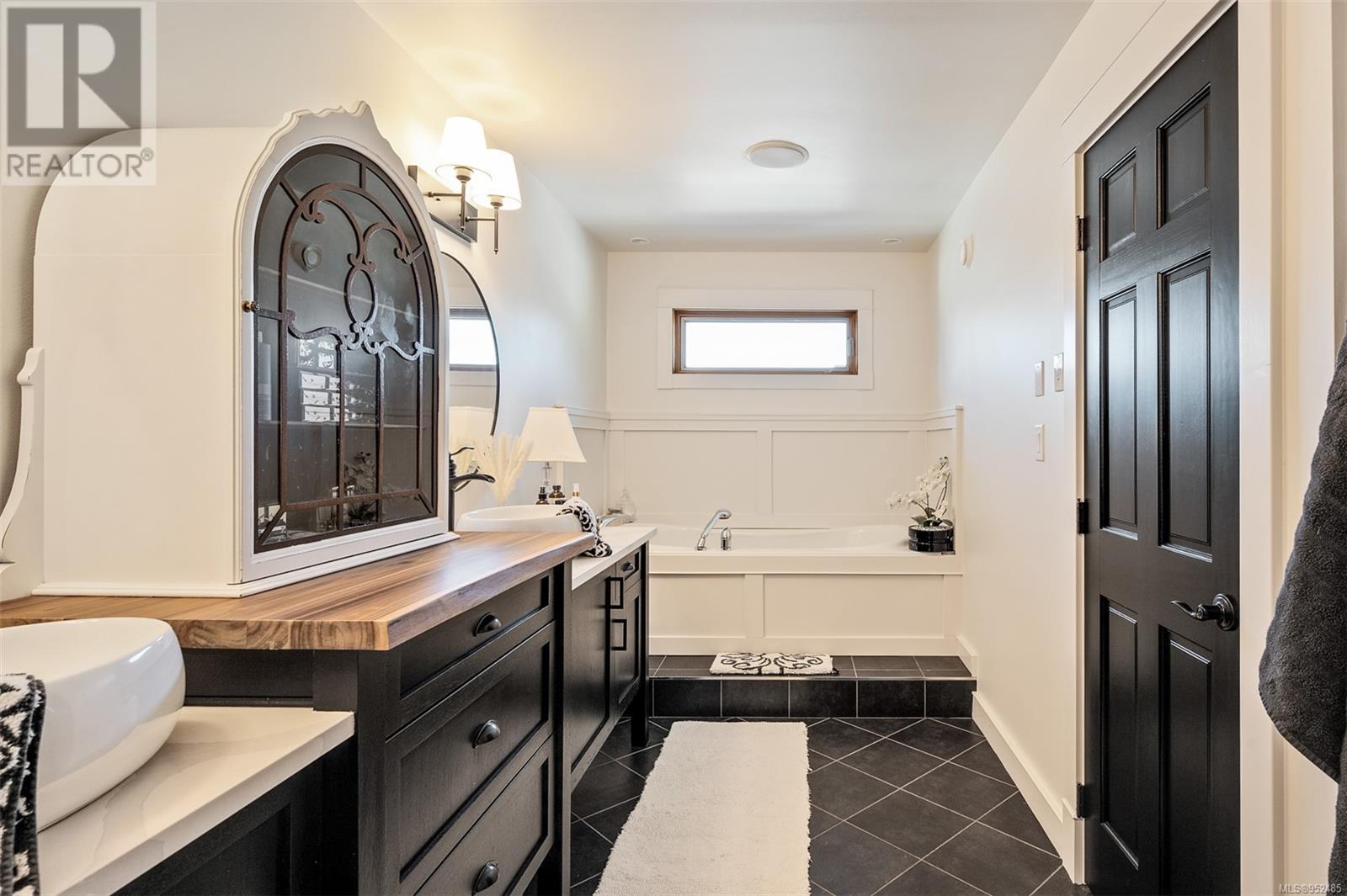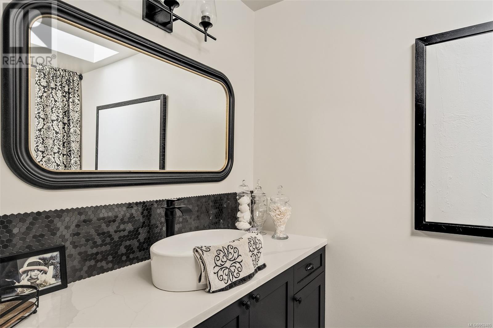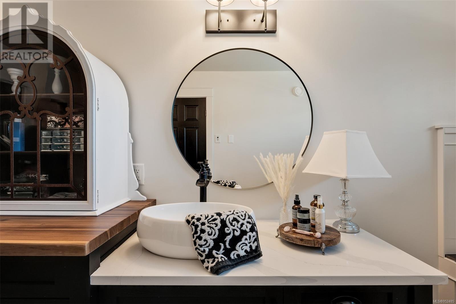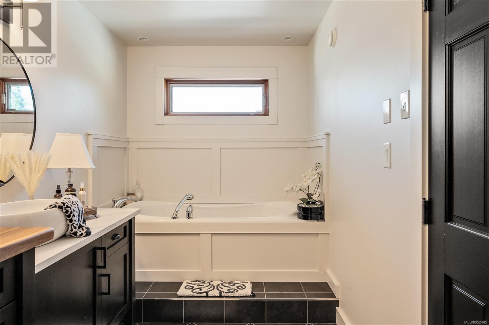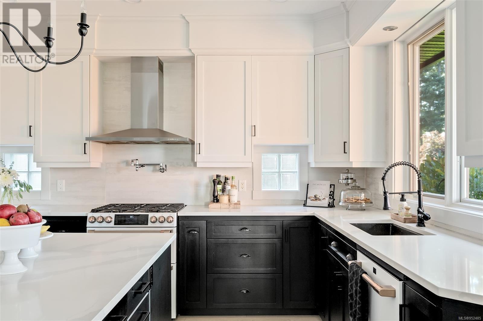 Perched over the 17th Fairway of the Bear Mountain Championship golf course,this custom fully updated home offers designer details, superior craftsmanship and welcoming spaces over 4600+sqft. Featuring 5 beds /5 baths home over 3 floors this home presents a dramatic vaulted living room, Pella windows, a gourmet kitchen with quartz waterfall island,Cafe appliances and beautifully tiled walk through pantry.The expansive covered patios create both dining and gathering spaces to enjoy the unparalleled west views of Bear Mountain village and Mt Finlayson.The upper floor presents a walkway bridge leading to the grand primary bedroom with a 5 piece ensuite,walk-in closet and 2 additional beds and a 4 piece bath. The lower level features an inlaw SUITE,media room, walk out patio and backyard. Steps to the Westin, choice of two 18 hole Nicklaus designed golf courses, red clay tennis court facility, athletic centre with outdoor pool and various hiking/biking trails. (id:22211)