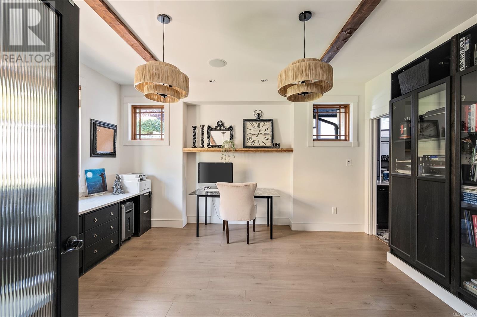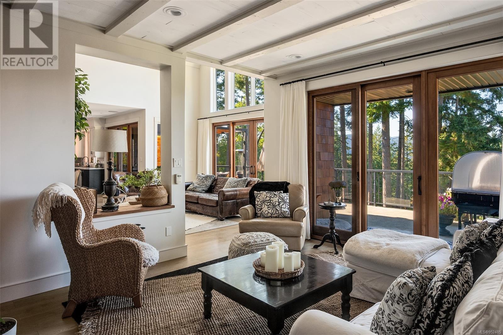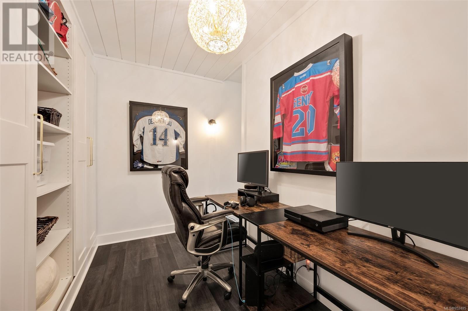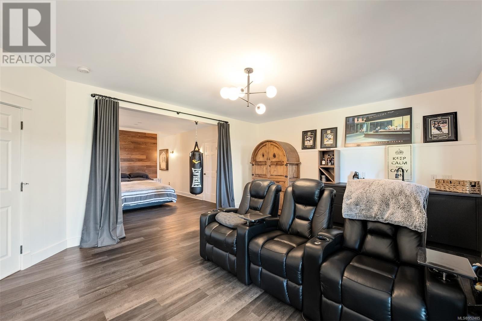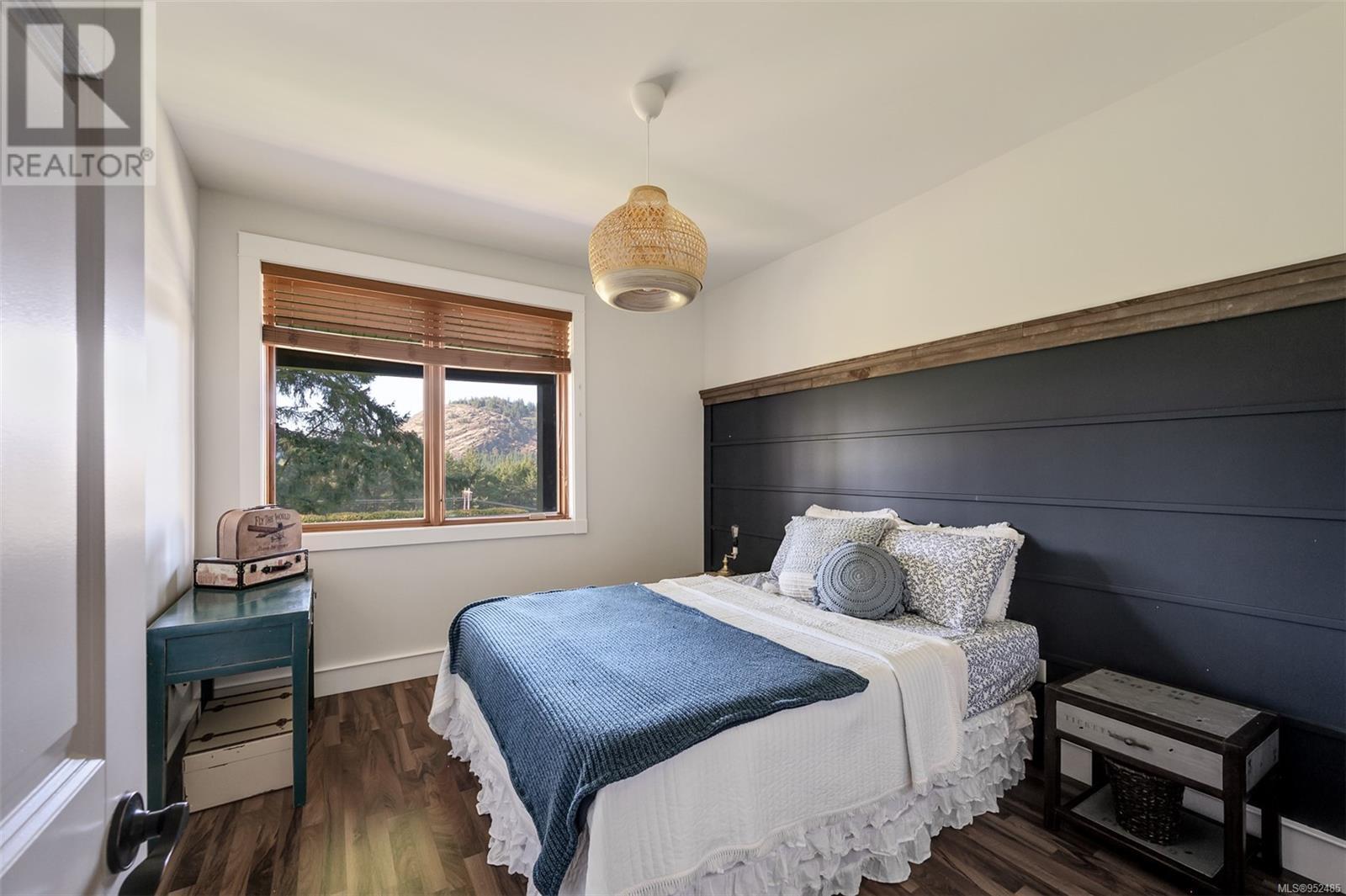 Perched over the 17th Fairway of the Bear Mountain Championship golf course,this custom fully updated home offers designer details, superior craftsmanship and welcoming spaces over 4600+sqft. Featuring 5 beds /5 baths home over 3 floors this home presents a dramatic vaulted living room, Pella windows, a gourmet kitchen with quartz waterfall island,Cafe appliances and beautifully tiled walk through pantry.The expansive covered patios create both dining and gathering spaces to enjoy the unparalleled west views of Bear Mountain village and Mt Finlayson.The upper floor presents a walkway bridge leading to the grand primary bedroom with a 5 piece ensuite,walk-in closet and 2 additional beds and a 4 piece bath. The lower level features an inlaw SUITE,media room, walk out patio and backyard. Steps to the Westin, choice of two 18 hole Nicklaus designed golf courses, red clay tennis court facility, athletic centre with outdoor pool and various hiking/biking trails. (id:22211)