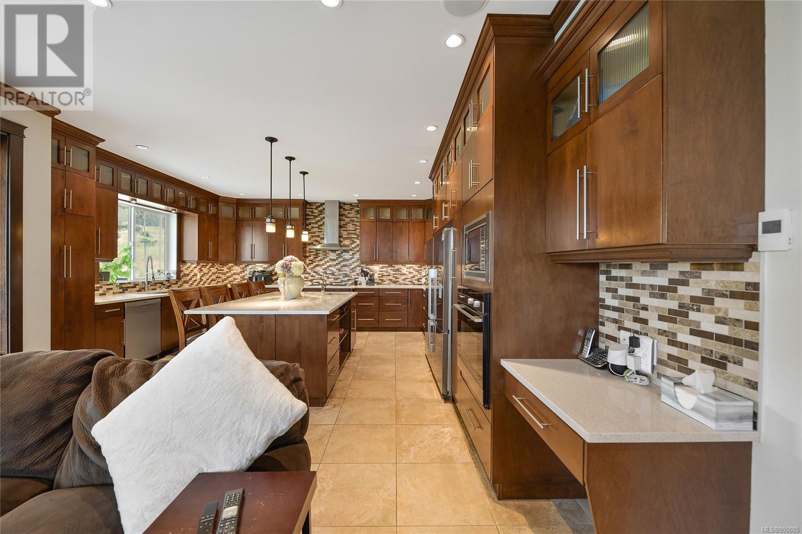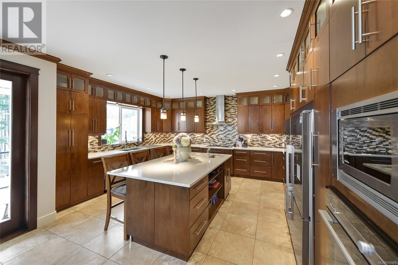 Experience the epitome of luxury living in this expansive 7bed/7bath Bear Mountain estate. Enjoy awe-inspiring nature views as your backdrop, offering an abundance of space for a large family across 5800sqft. From the gourmet kitchen with high-end appliances to the lavish master suite with a spa-like ensuite, no detail has been spared in creating an atmosphere blending comfort, style, and sophistication. Main level showcases a custom kitchen, family room w/coffered ceiling, gas fireplace, large dining area w/bar, laundry, dble garage, guest bed w/3pce en-suite. Upper level has 2 large kids rooms each w/3 pce en-suites, office, huge master w/view deck, 15x8 walk-in closet w/custom wood organizers, en-suite w/heated tile floors, steam shower & jetted tub. Lower level has endless options, currently having two in-law suites & large theater/rec room w/bar. The 1 and 2 bedrooms Suites can easily be modified to suit any buyers needs, whether you need additional income, or more living space. (id:22211)