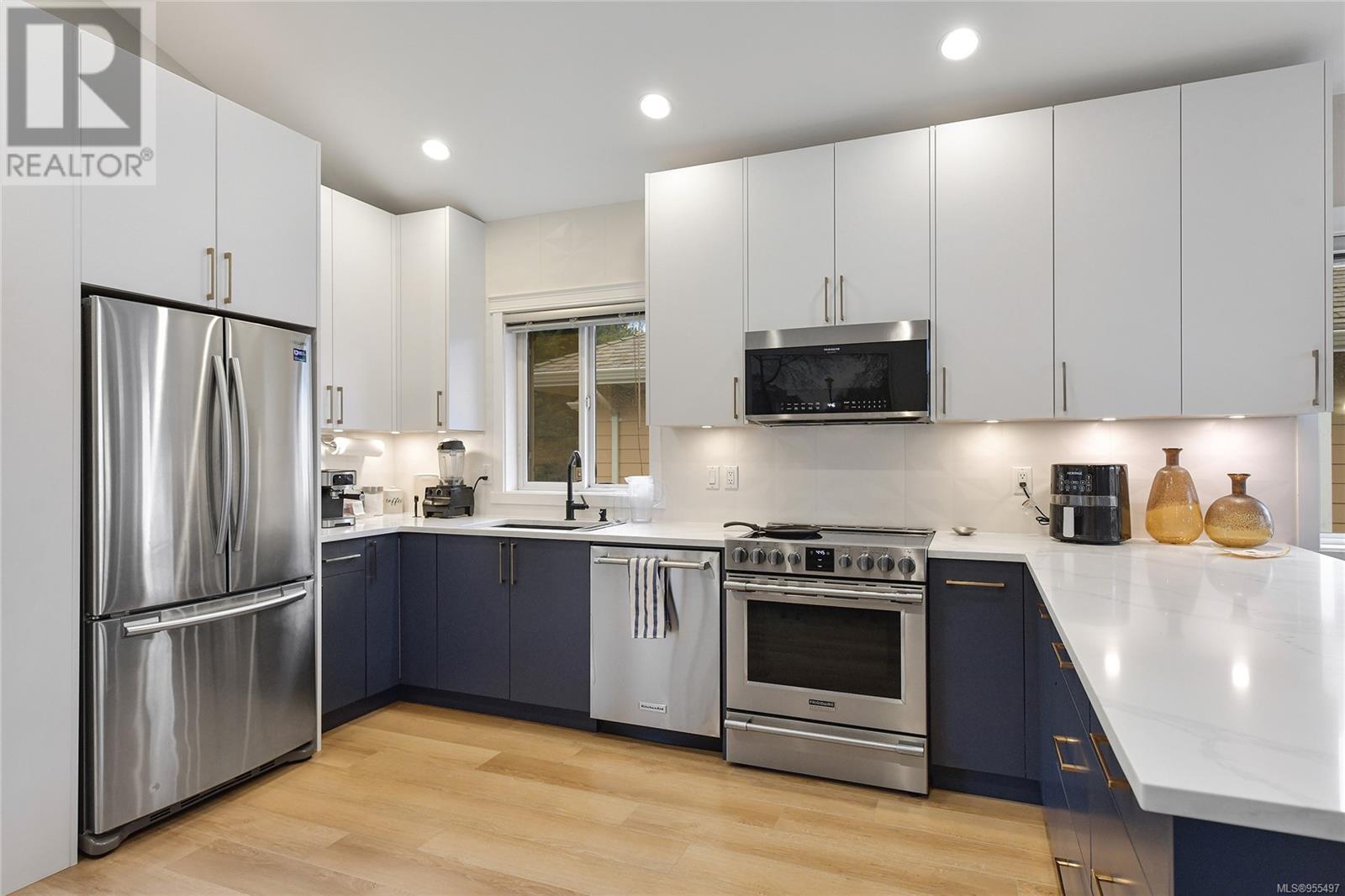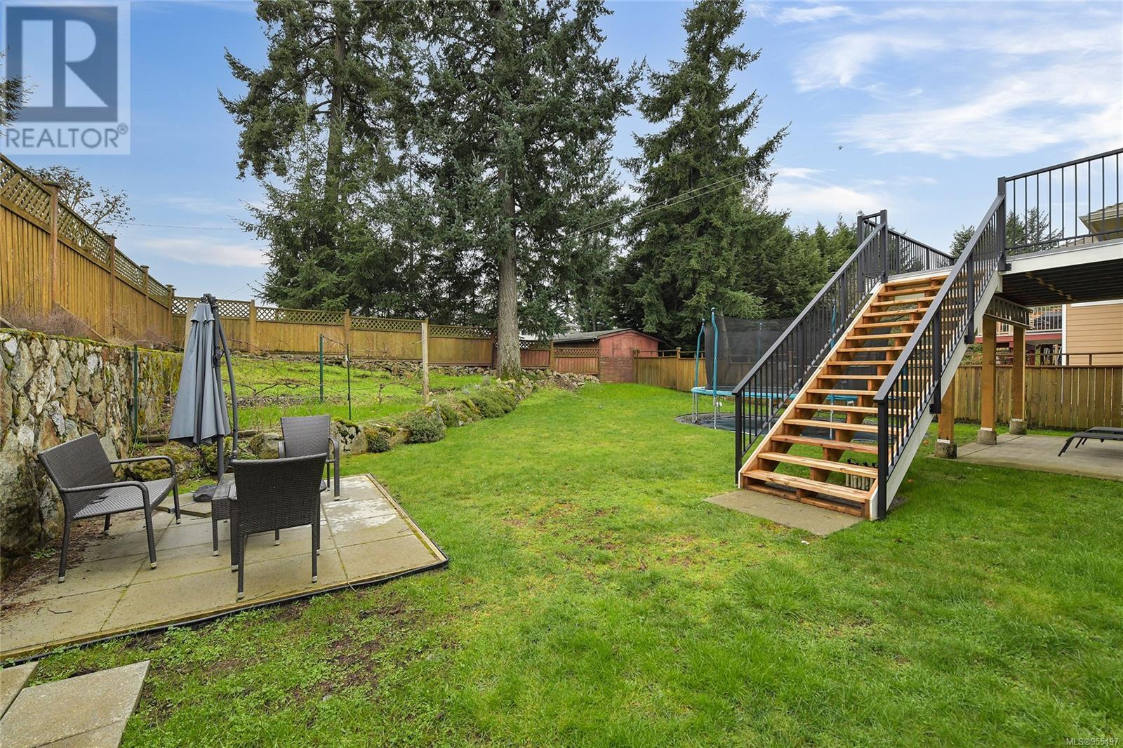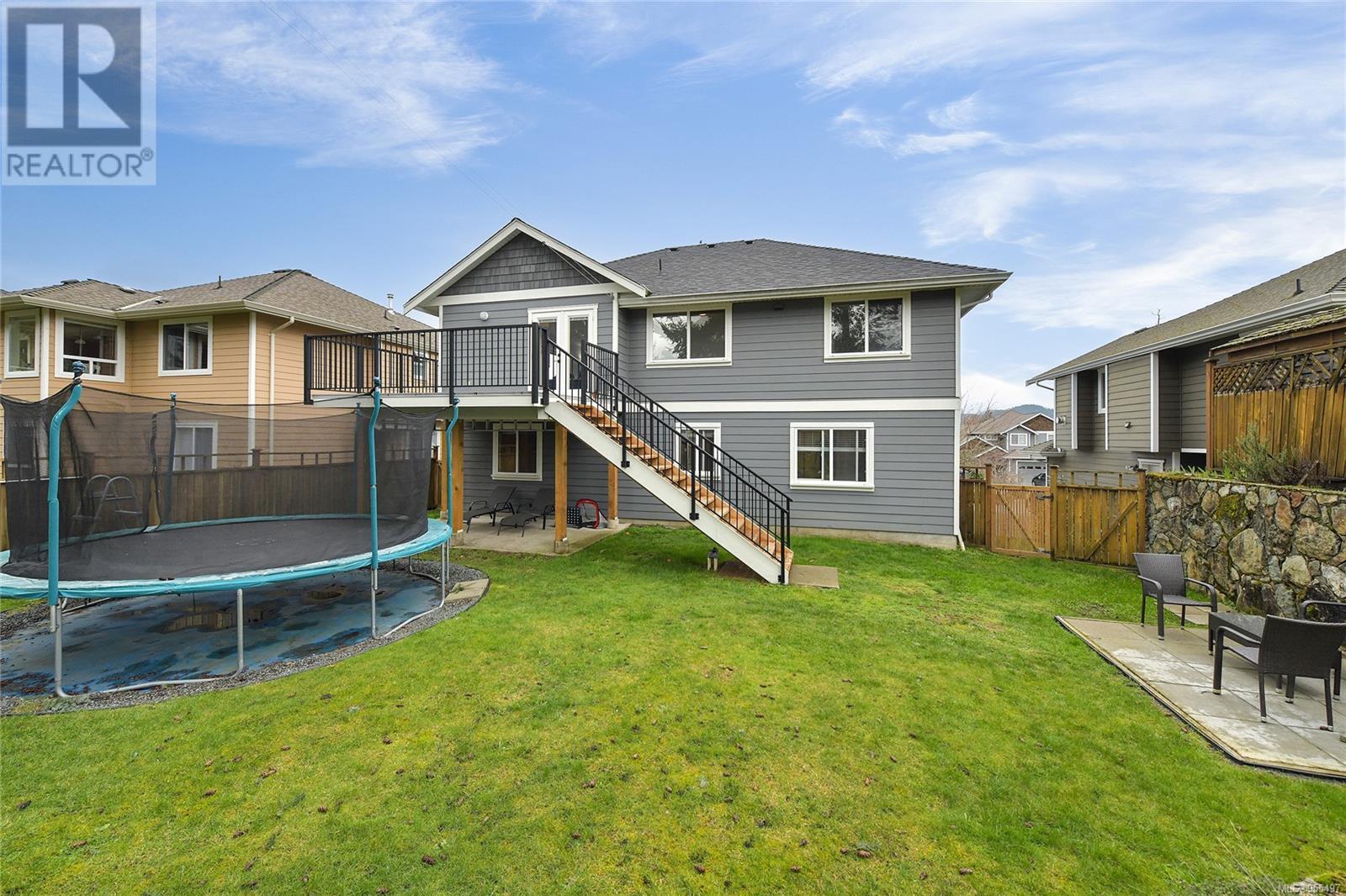 Terrific family home situated on a quiet cul-de-sac in the Eagle Ridge area nestled at the base of Bear Mountain. A very desirable floor plan with 3 bedrooms on the main and a full height basement featuring 4th bedroom (den/office – no closet) and a separate legal 1 bedroom suite. Step inside to discover a spacious living room with vaulted ceilings & cozy gas fireplace. You’ll be impressed by the bright open floor plan and well-designed beautiful new kitchen featuring an open concept design with lots of storage, countertop space with large eating bar, stainless steel appliances & French doors that lead to a new south-exposed deck. Located in a great neighbourhood near Lakewood Elementary, this home is ideal for families with children. You’ll enjoy incredible amenities nearby including shopping, restaurants, parks, cafes, grocery, golf, big box stores and all that Langford has to offer! The property also features a large double garage & fully fenced backyard, providing plenty of space for parking & outdoor activities. Recent upgrades include rebuilt deck, ducted heat pump, new roof, exterior paint & flooring. Currently tenanted but both tenants have given notice so vacant possession is available. This home is move-in ready & waiting for you to make it your own. Don't miss out on the opportunity to call this property your new home! (id:22211)