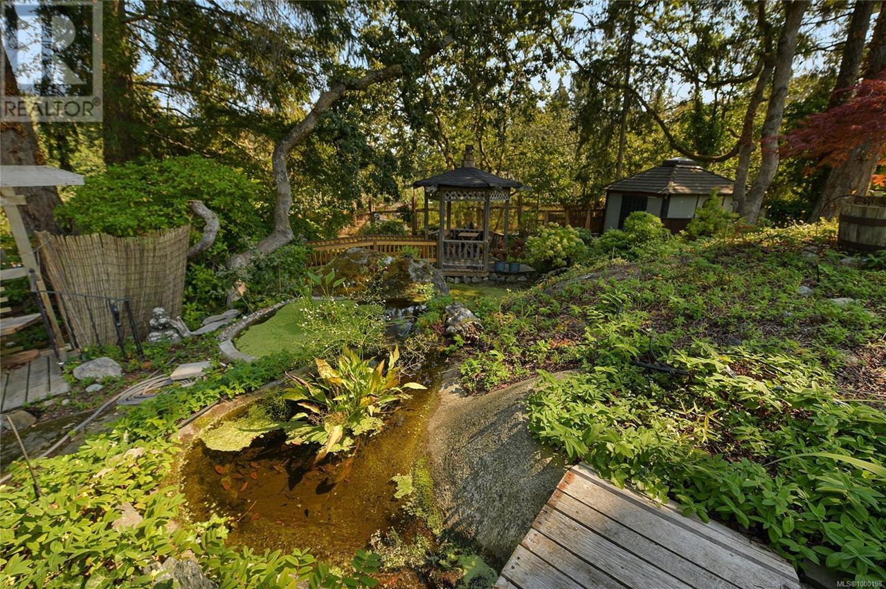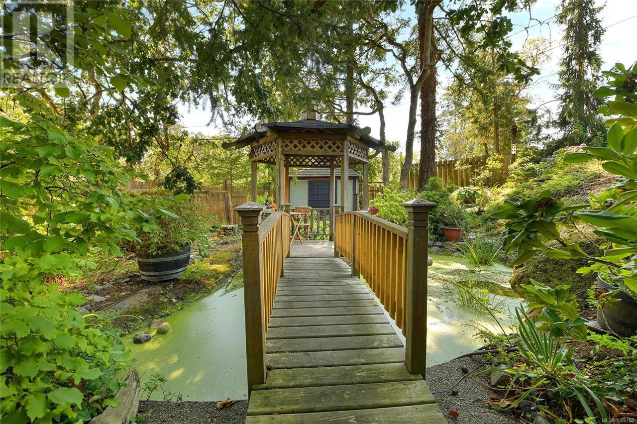 Proudly introducing a truly remarkable residence which has been fully updated including a NEW SEPTIC SYSTEM offering the perfect blend of charm, character and elegance throughout. Sprawling 3853 finished SqFt floor plan offers a collective total of 4 bed & 4 bath (including large 1 bed/1 bath suite with independent entry & laundry). The interior is sure to impress with 2 heat pump systems, cozy vintage wood burning fireplace, archway bookshelf w/sliding ladder, updated 4-piece washroom, designer wall paper, built in bookshelves, murphy bed & so much more! The exterior features beautifully landscaped gardens including a tea house/meditation hut, pond, multiple decks w/hot tub, barrel sauna sitting on a .44 acre lot with mature fruit trees, multiple sitting area, storage areas, plenty of parking.. Located in the heart of the City of Langford close to everything the Westshore lifestyle has to offer including shops, dining, the Galloping Goose Trail, transit, hikes and activities! (id:61201)