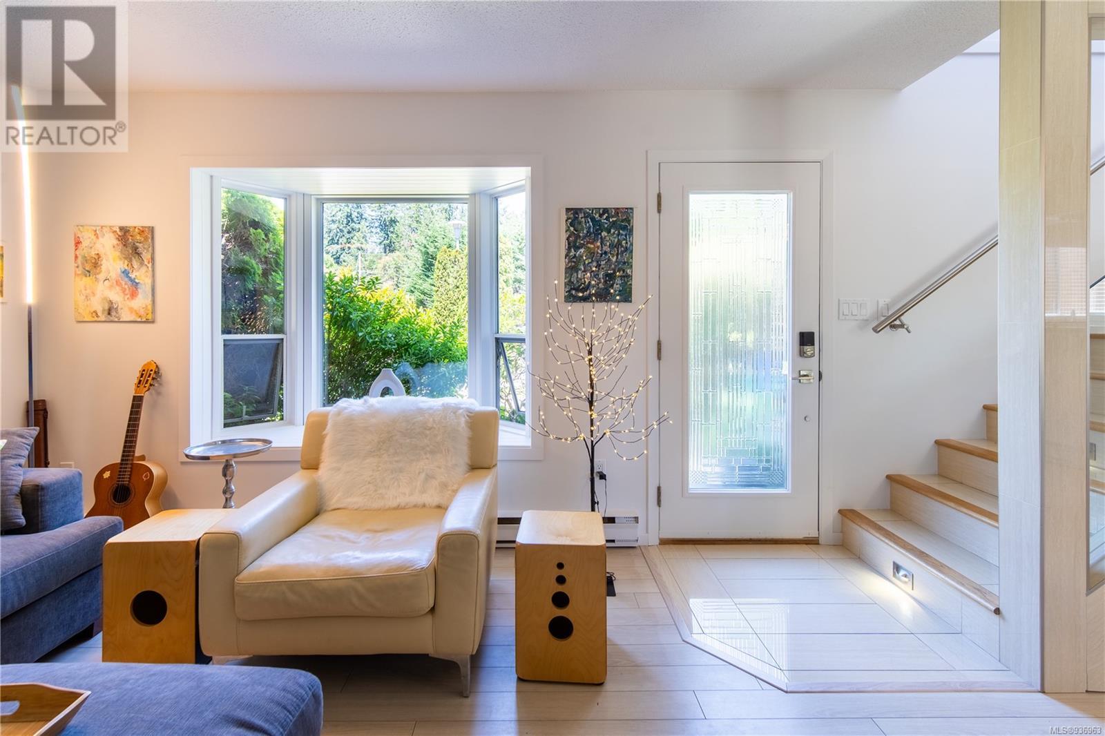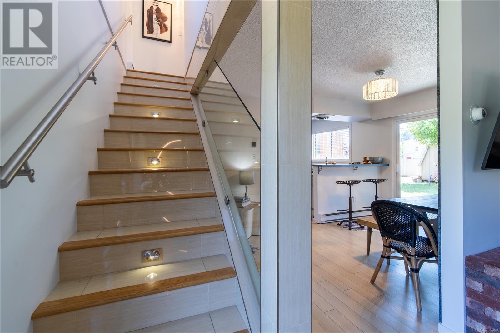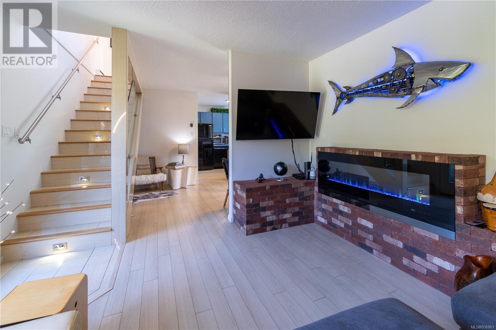 Don't miss this beautifully designed 2-bedroom & 2-bathroom townhouse in a prime location near Goldstream Park. Features include an updated entry with custom glass railing & in-stairs LED lighting, & in-floor heated tile floors in the bathrooms, laundry & kitchen, adding a touch of warmth & comfort. The LED bathroom mirror ensures a clear and fog-free reflection, while the custom frameless glass shower with a rain shower adds a spa-like feel to your morning routine. Stay cozy during the colder months with the electric fireplace, perfect for creating a warm and inviting ambiance. The bright south-facing fenced backyard is perfect for gardening & provides a private outdoor space where you can relax and entertain. Additionally, there are two barn-style wooden sheds offering ample storage for outdoor equipment and tools. Located just steps from Goldstream Park and Willway Elementry. Nature enthusiasts will appreciate the quick access to Mount Wells, Mount Finlayson, & Langford Lake. (id:22211)