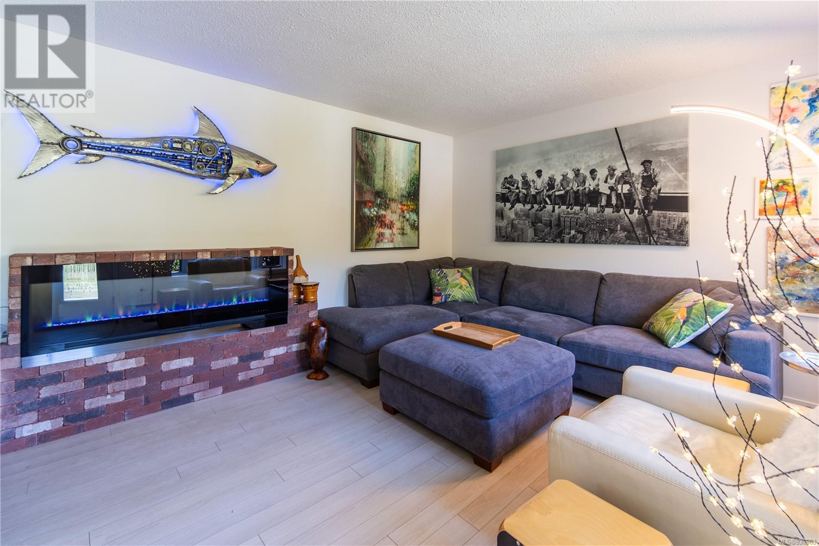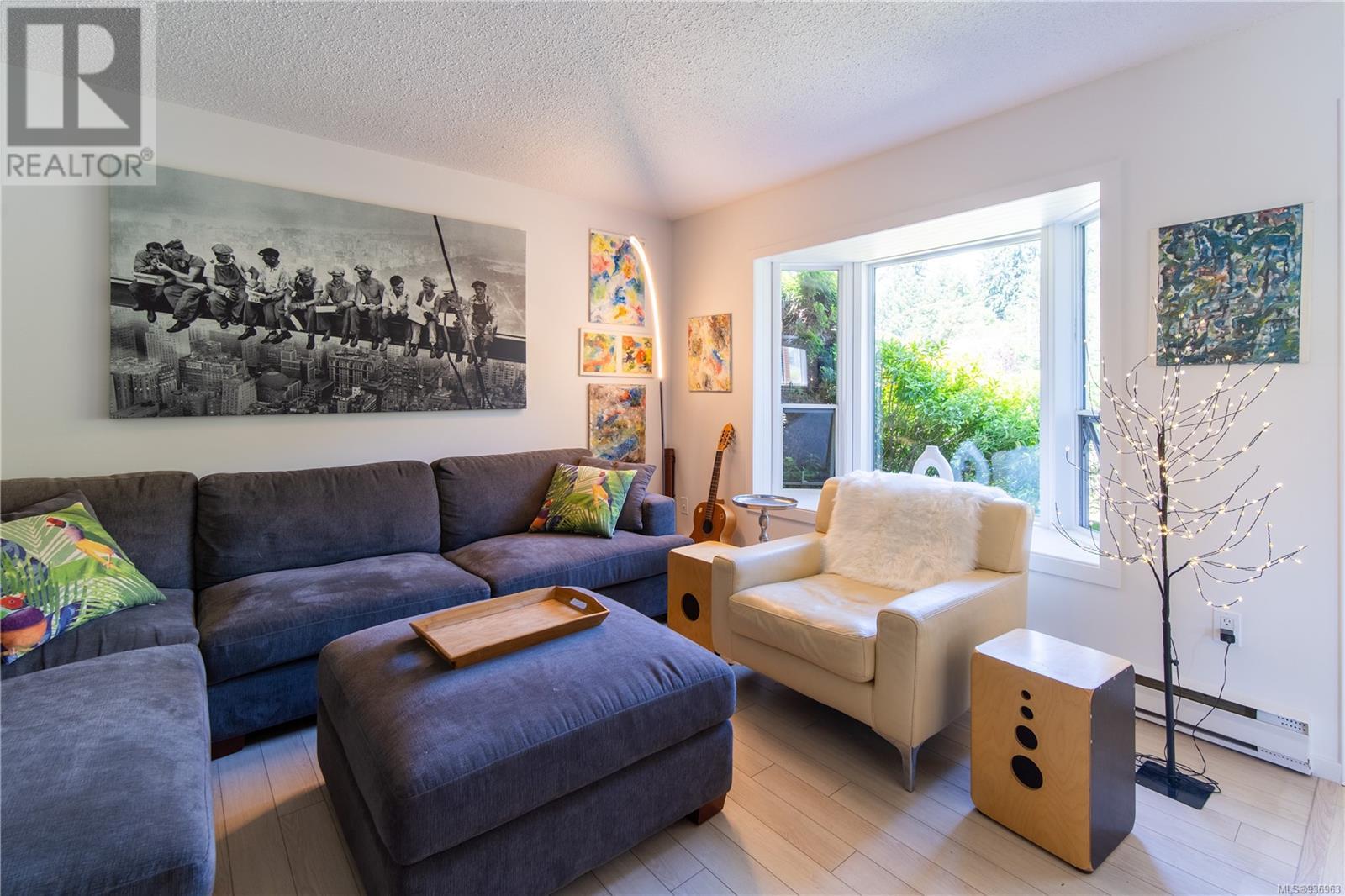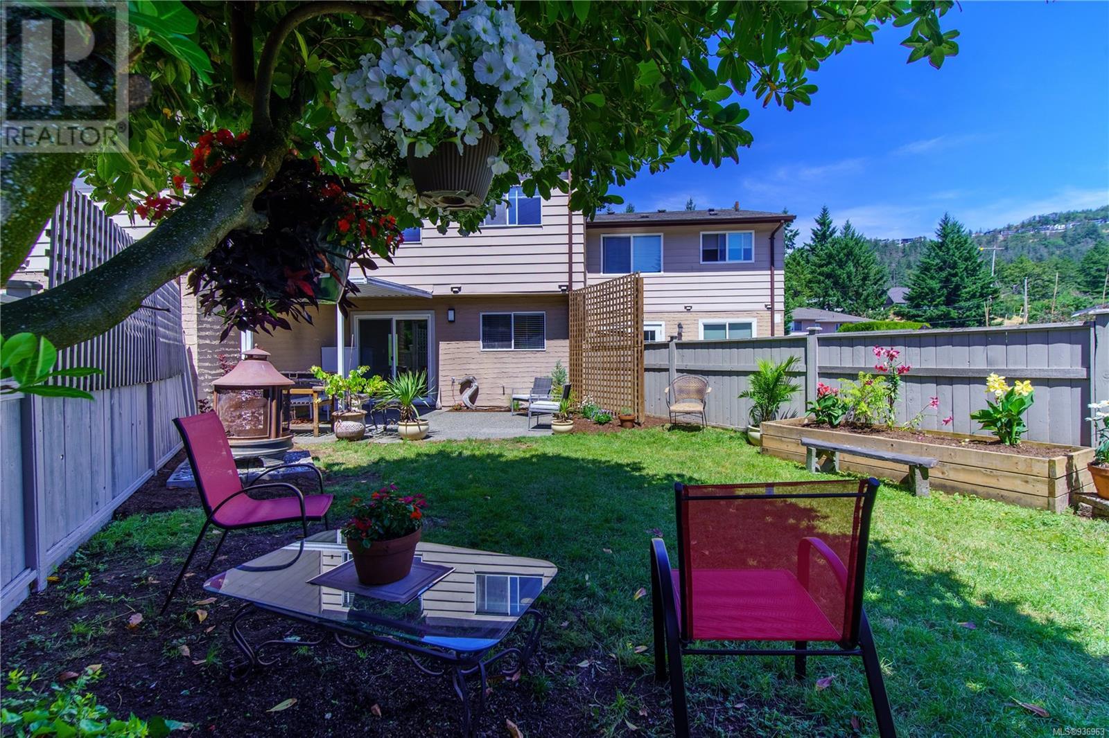 Don't miss this beautifully designed 2-bedroom & 2-bathroom townhouse in a prime location near Goldstream Park. Features include an updated entry with custom glass railing & in-stairs LED lighting, & in-floor heated tile floors in the bathrooms, laundry & kitchen, adding a touch of warmth & comfort. The LED bathroom mirror ensures a clear and fog-free reflection, while the custom frameless glass shower with a rain shower adds a spa-like feel to your morning routine. Stay cozy during the colder months with the electric fireplace, perfect for creating a warm and inviting ambiance. The bright south-facing fenced backyard is perfect for gardening & provides a private outdoor space where you can relax and entertain. Additionally, there are two barn-style wooden sheds offering ample storage for outdoor equipment and tools. Located just steps from Goldstream Park and Willway Elementry. Nature enthusiasts will appreciate the quick access to Mount Wells, Mount Finlayson, & Langford Lake. (id:22211)